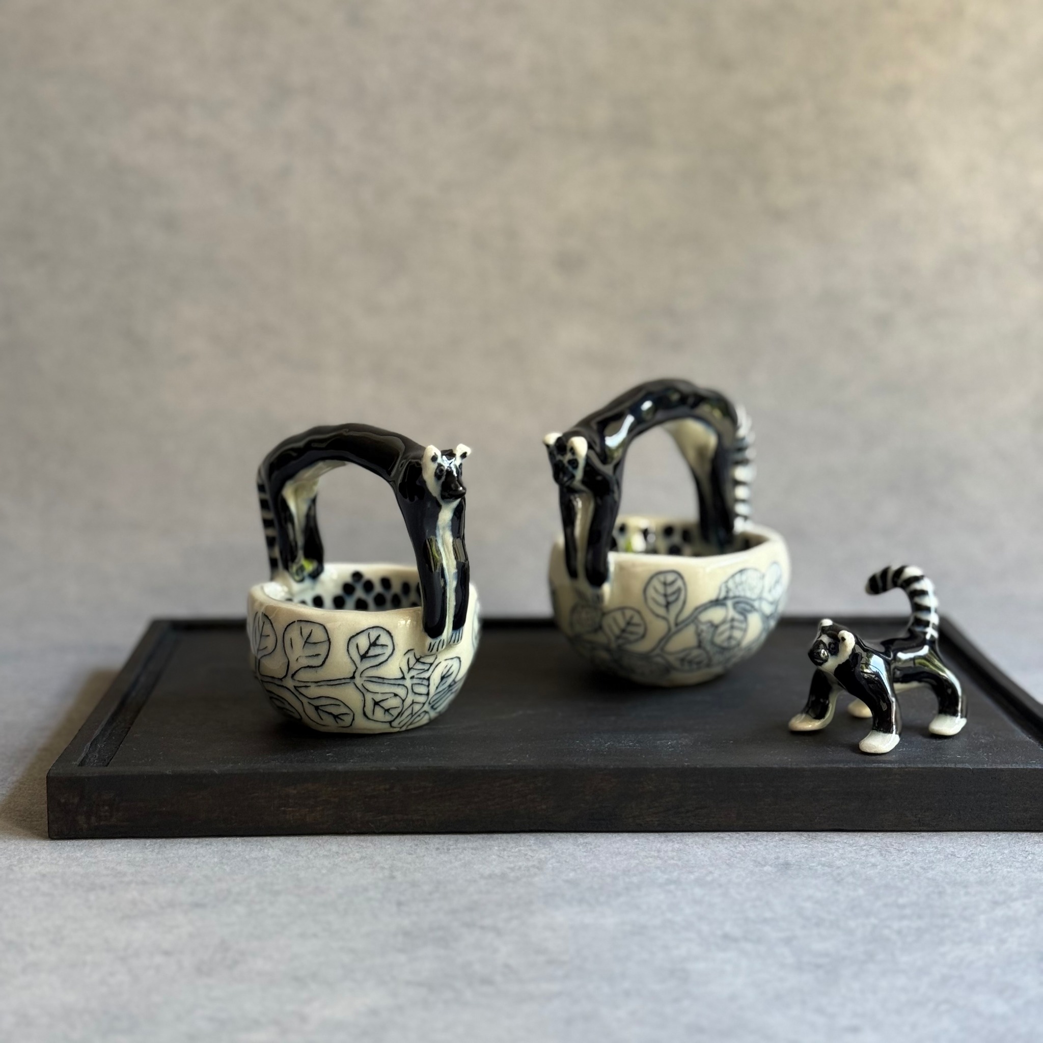 ワンカップをイメージした冷酒カップなど暮らしが楽しくなるようなサトさんの作品たち。