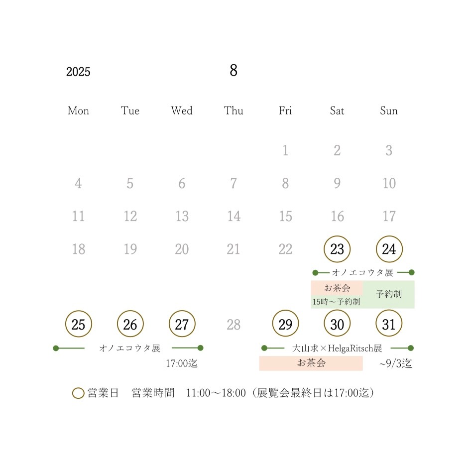 *8/23(土)15:00迄はお茶会のため貸切となります。