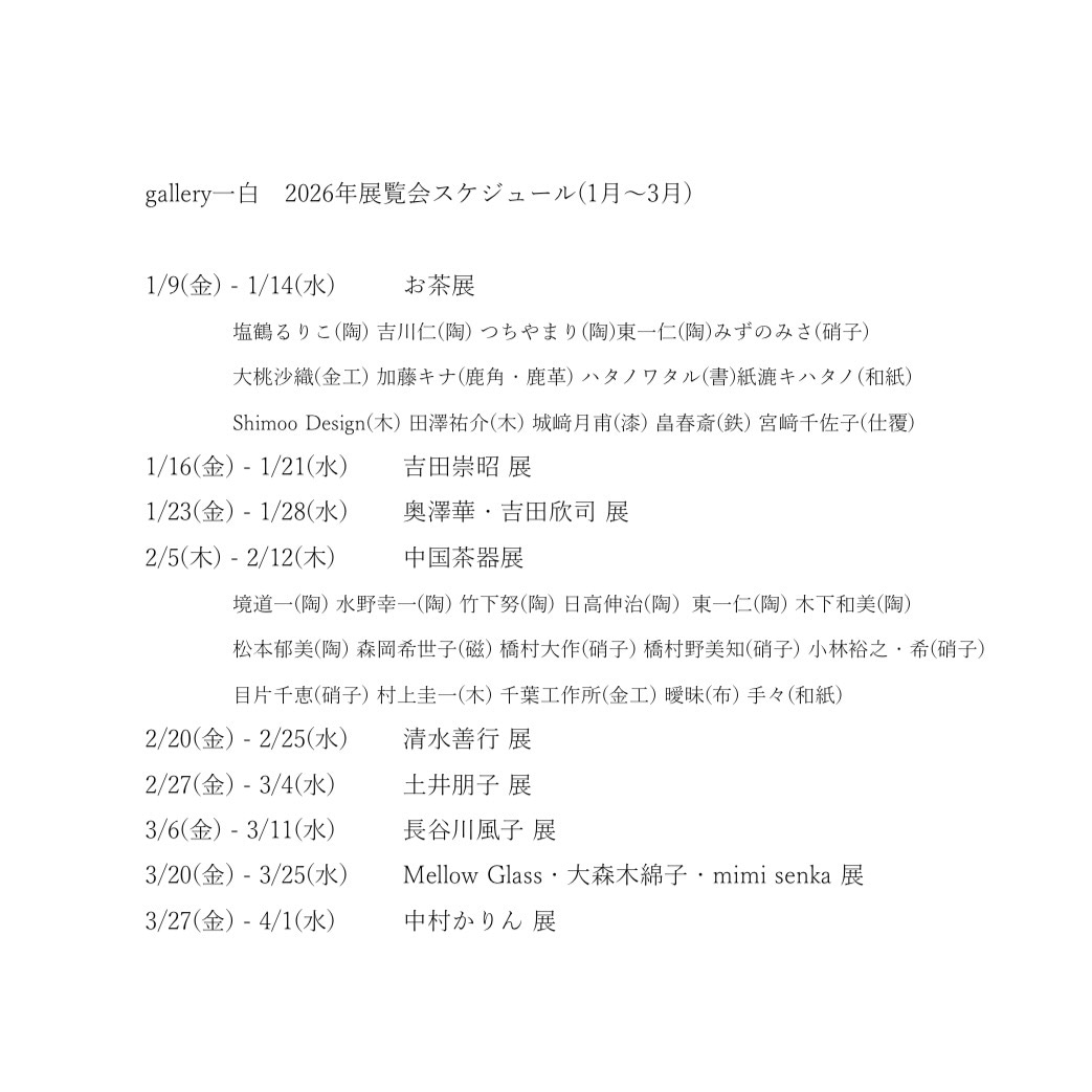 展覧会スケジュール2025年10月〜12月に加え、2026年1月〜3月の予定をご案内させていただきます。