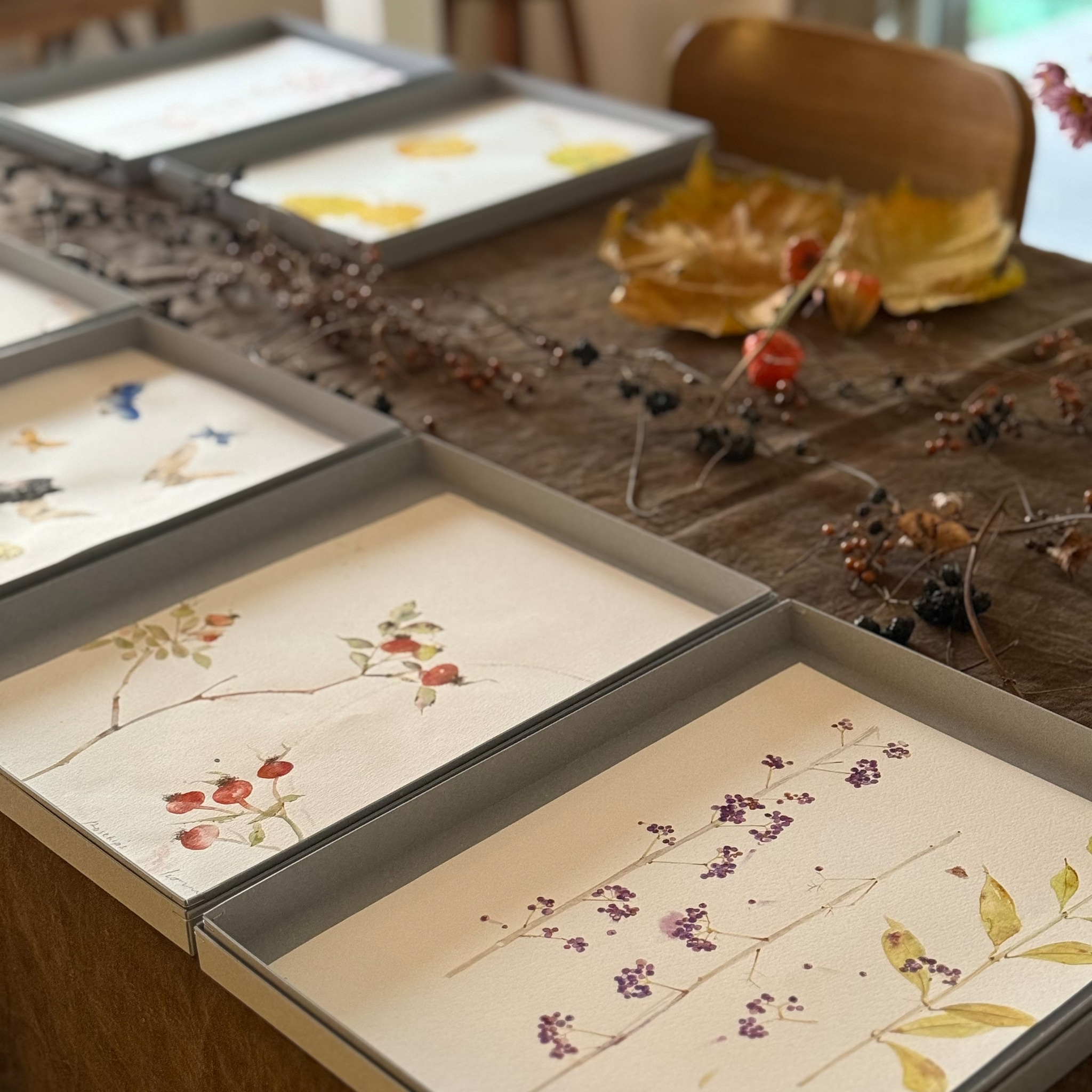 日々描きためた水彩スケッチをお好きなように楽しんでいただけたら、、、とご用意いただきました。