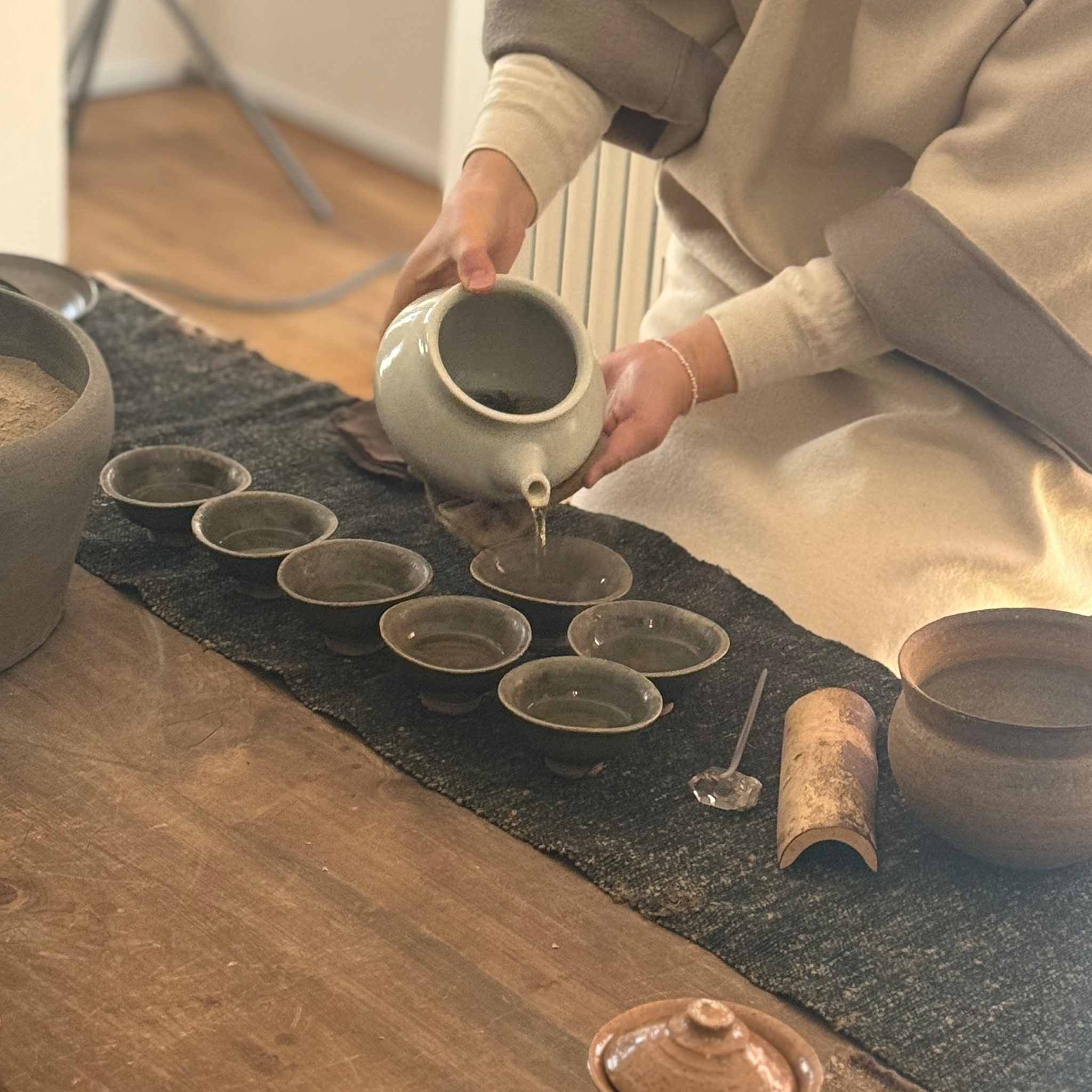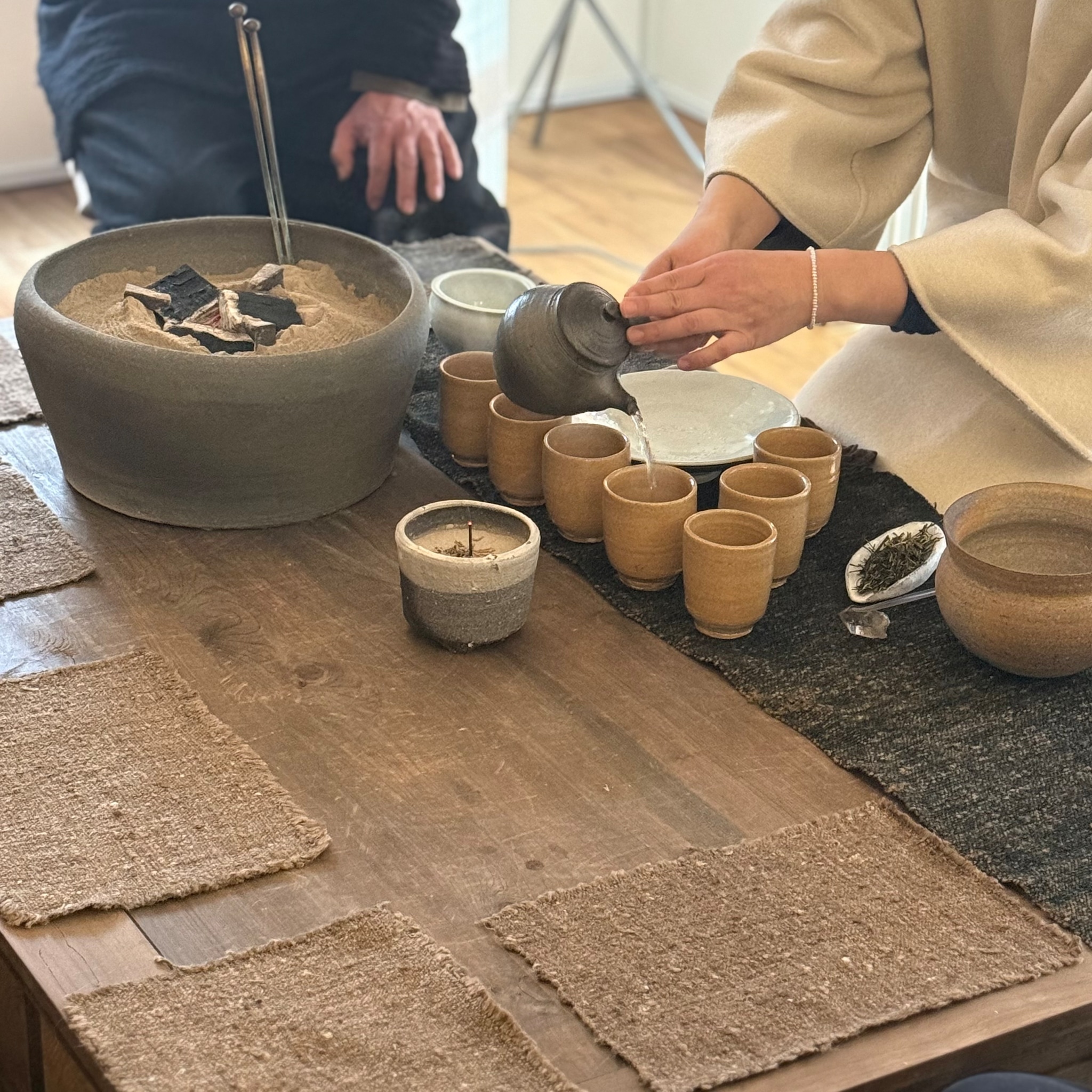 清水さんの火鉢で湯を沸かし、器ひとつひとつの表情にも思いを馳せながら味わうお茶はまた格別なものに。