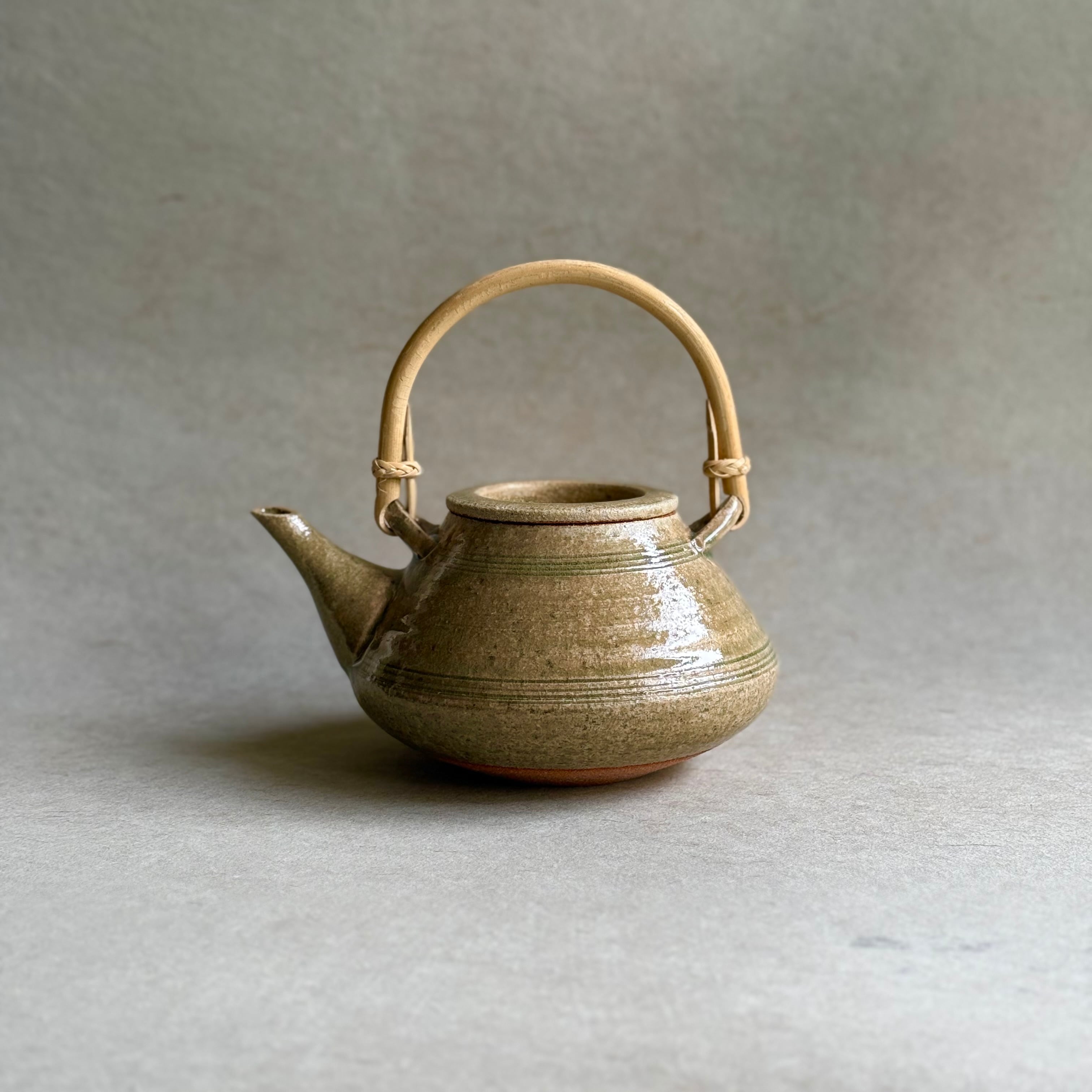 昔ながらの「そろばん型」と言われる横にひしゃげたその形は熱効率がよく、火力をしっかりと受け止めてくれます。昭和の時代からあった定番の 「灰釉土瓶」です。