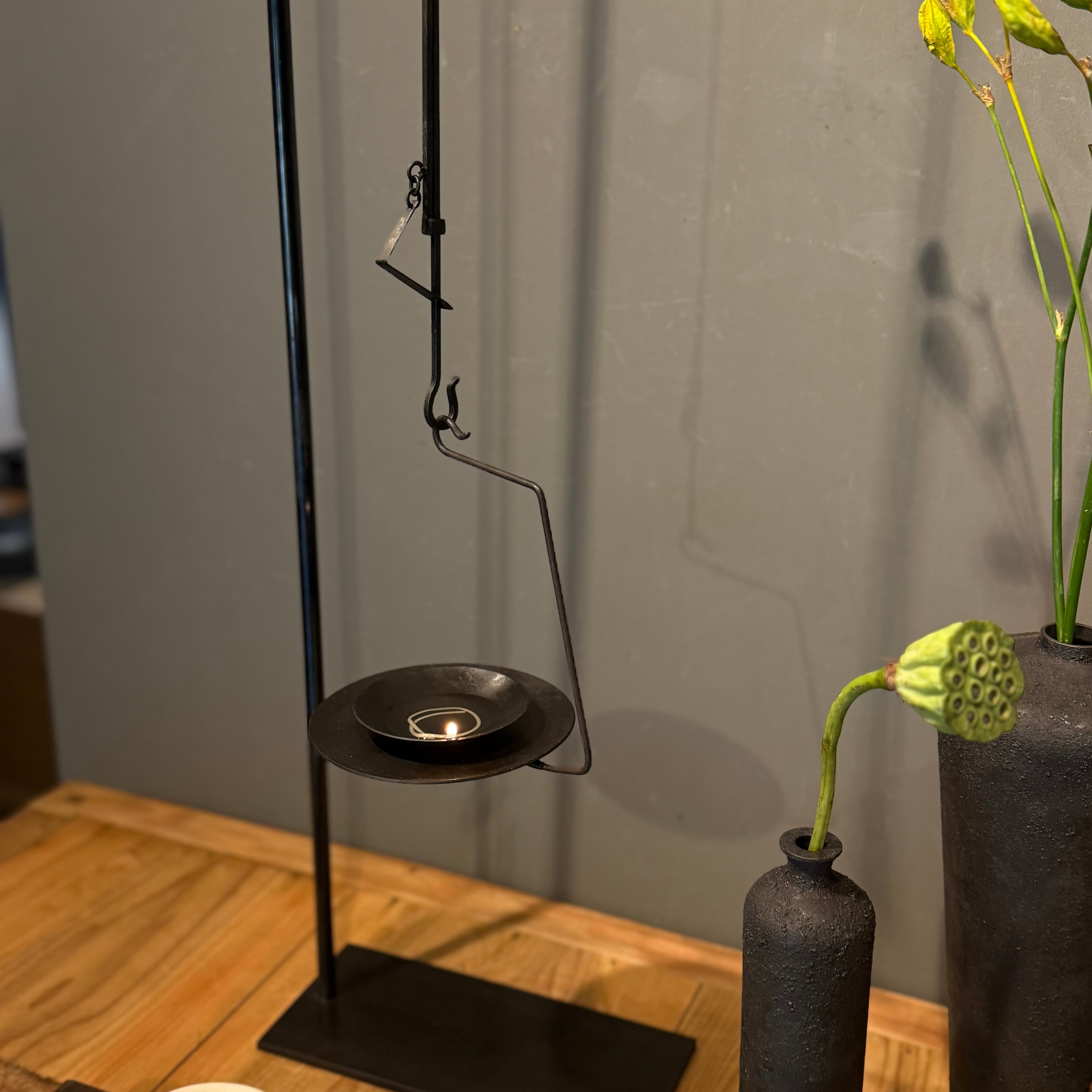 錆や蜜蝋を纏い静謐なる侘びの美を湛える大山求さんの鉄。無骨でありながらも時と共に変容するその表情は、沈黙のうちに語りかけるような金属の深い呼吸を感じさせます。