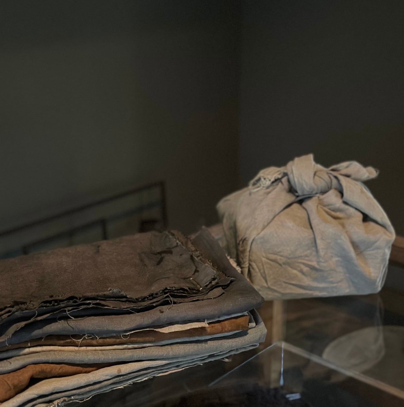 Ai Mai creates hand-dyed cloth using natural dyes such as persimmon tannins, indigo, and pine soot.