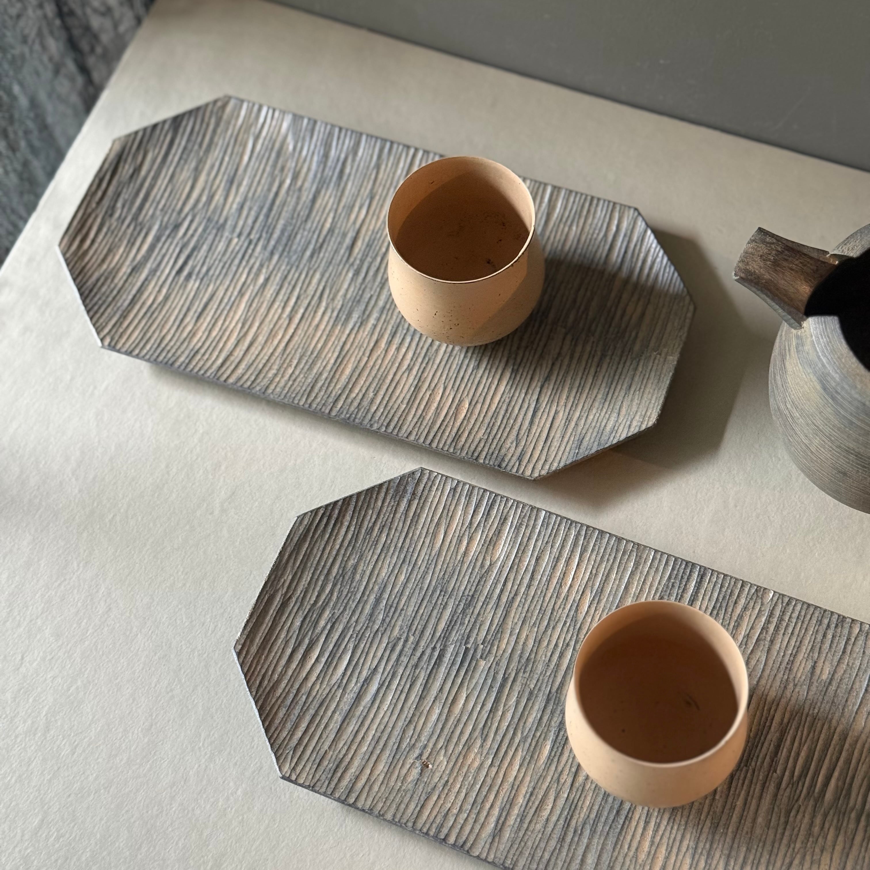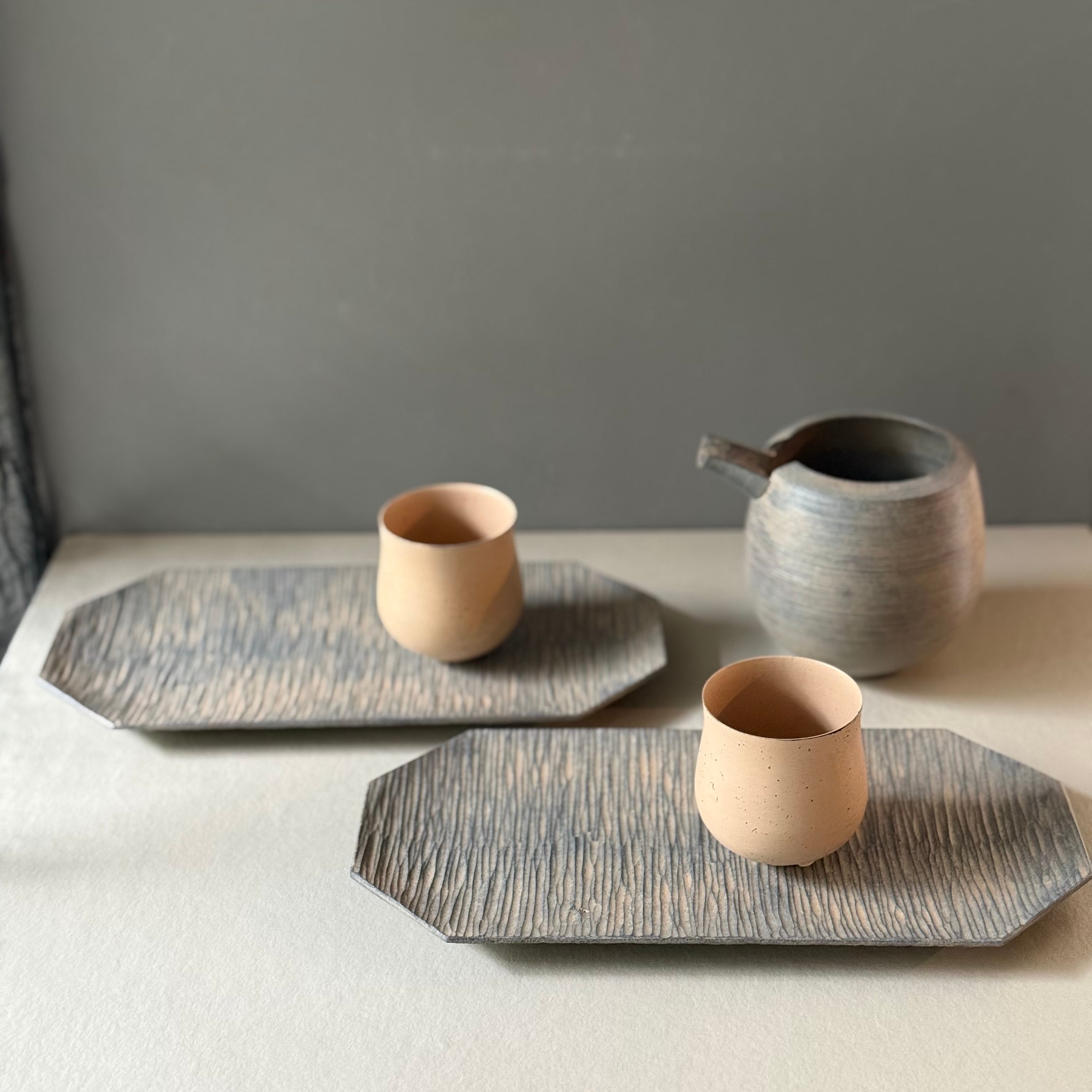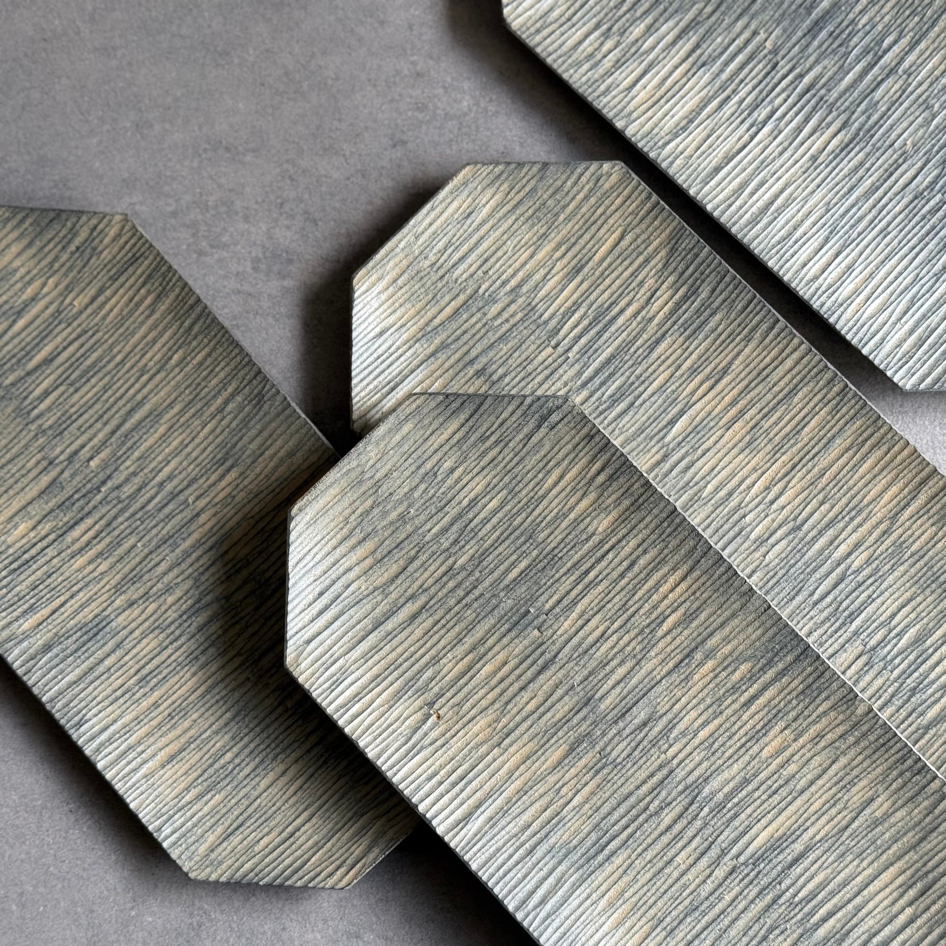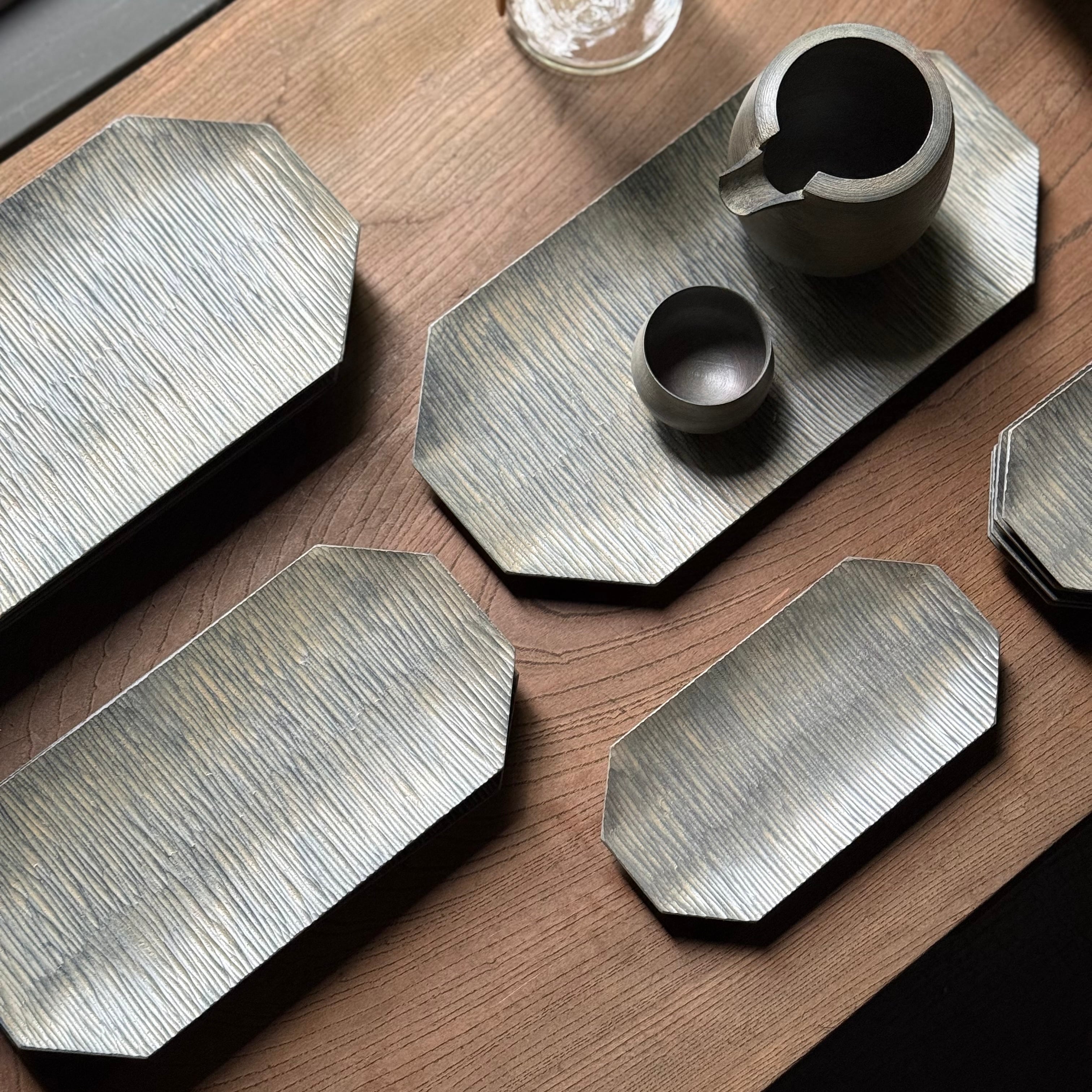田澤祐介 隅切一文字皿 細雨彫 拭漆 薄白