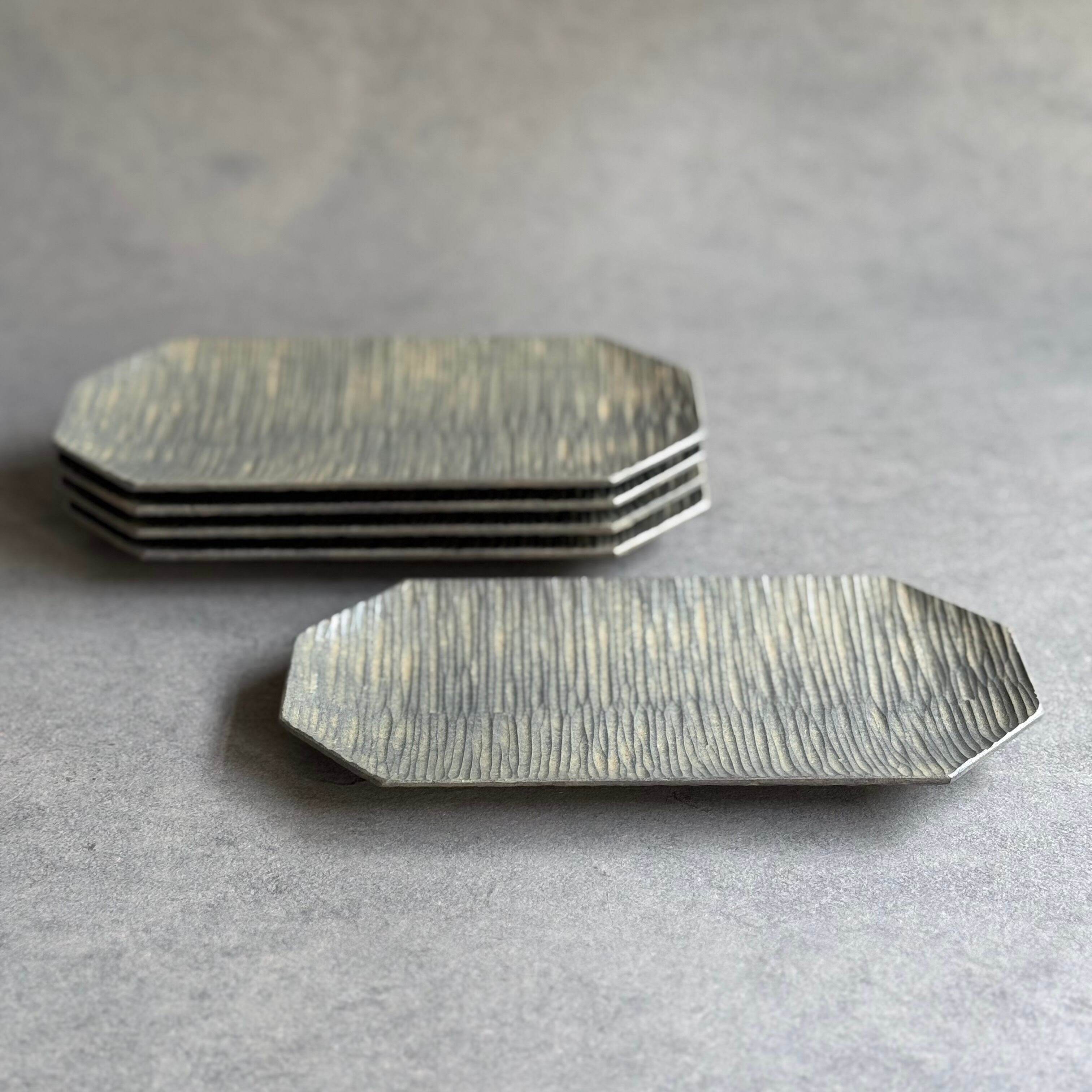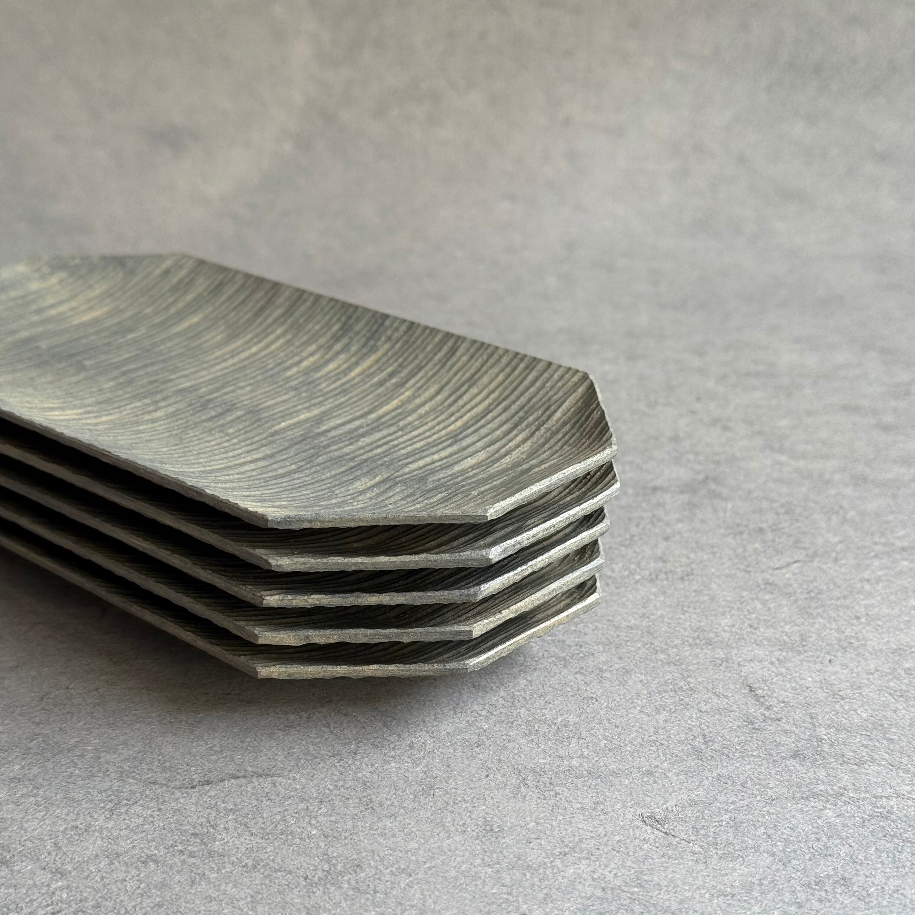 田澤祐介 隅切一文字皿 細雨彫 拭漆 薄白
