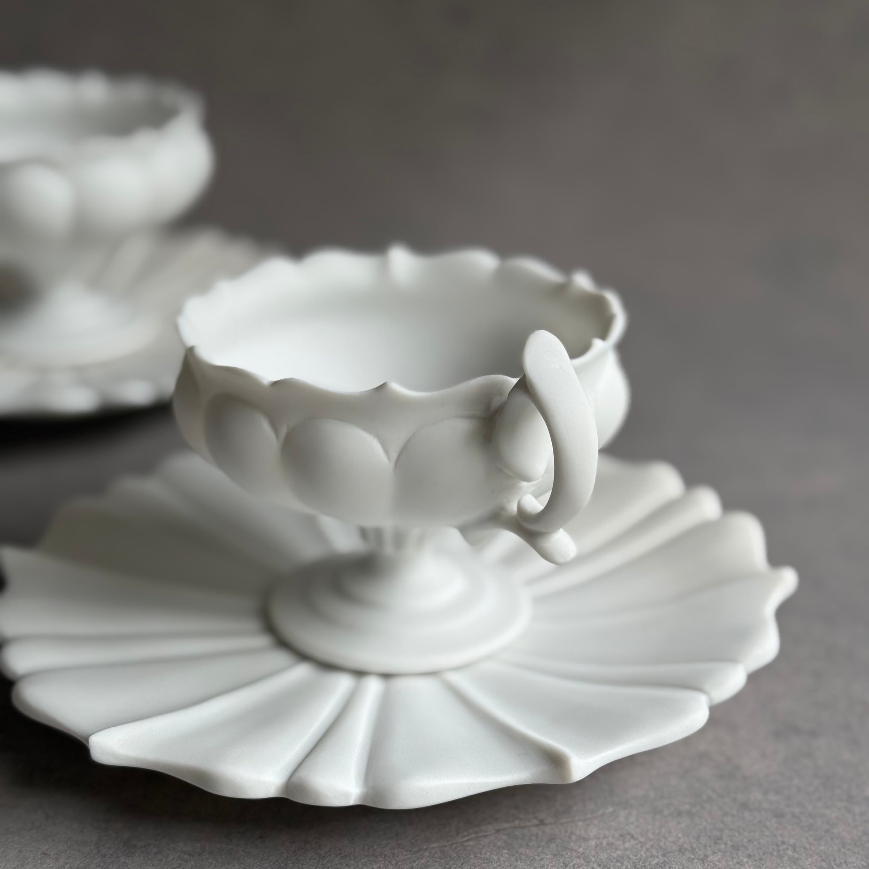 白と黒を基調としたマットな釉薬や華やかな銀彩が心躍るモダンな器は、設えに花を添え、おもてなしにも重宝します。彫刻のように深い陰陽が際立つ優雅なフォルム、可憐な植物を思わせる輪郭は美しさが際立ち、日常をよりエレガントに演出してくれる存在です。
