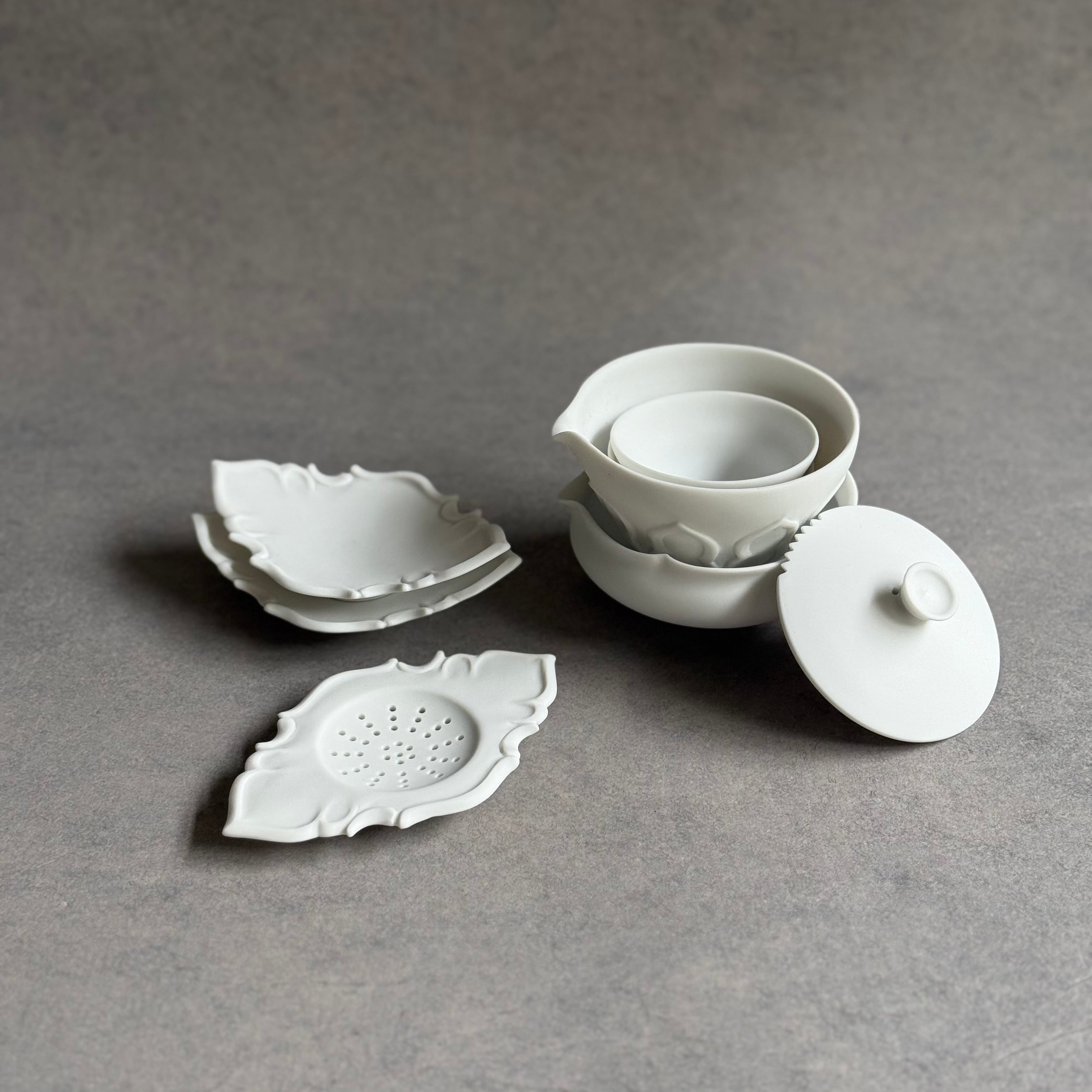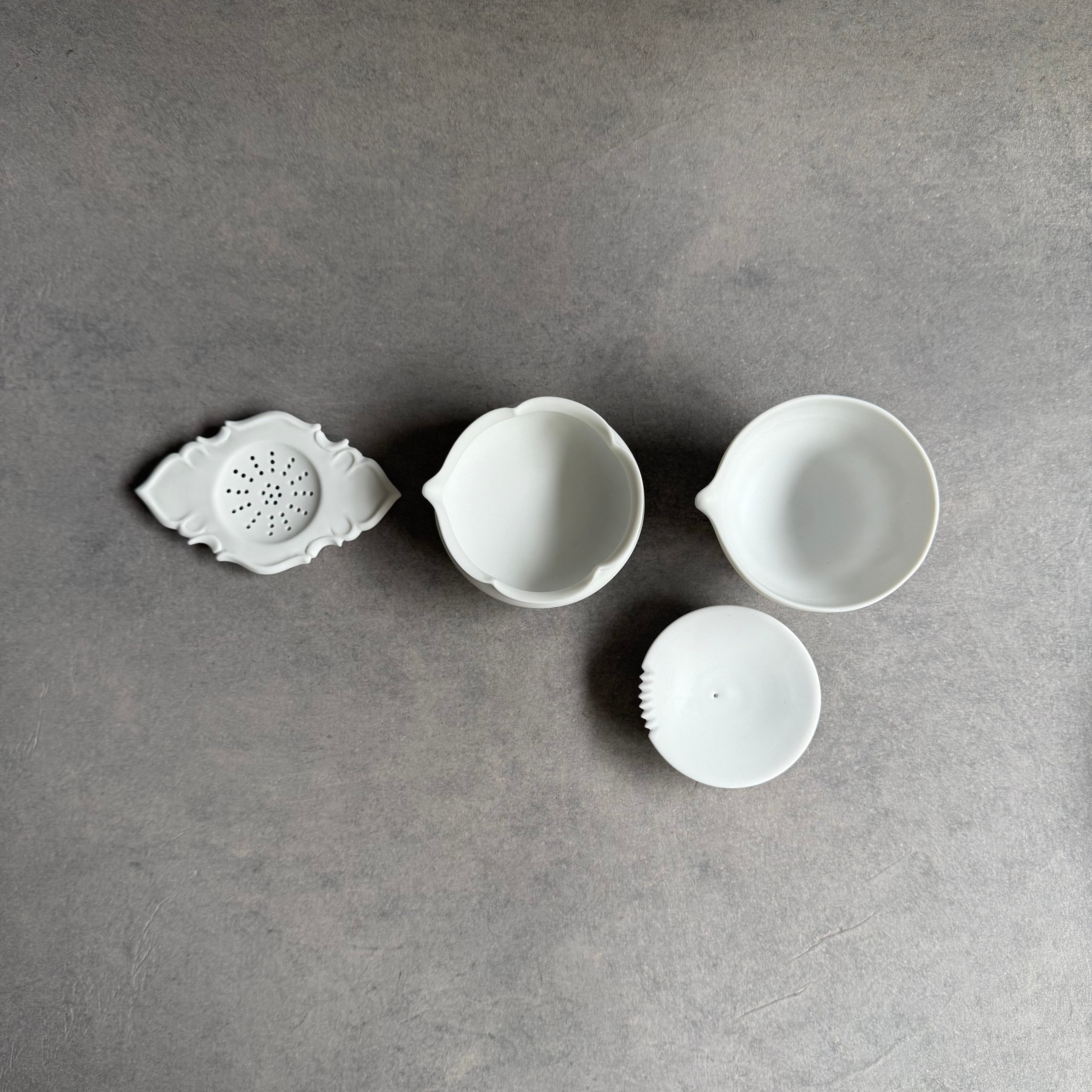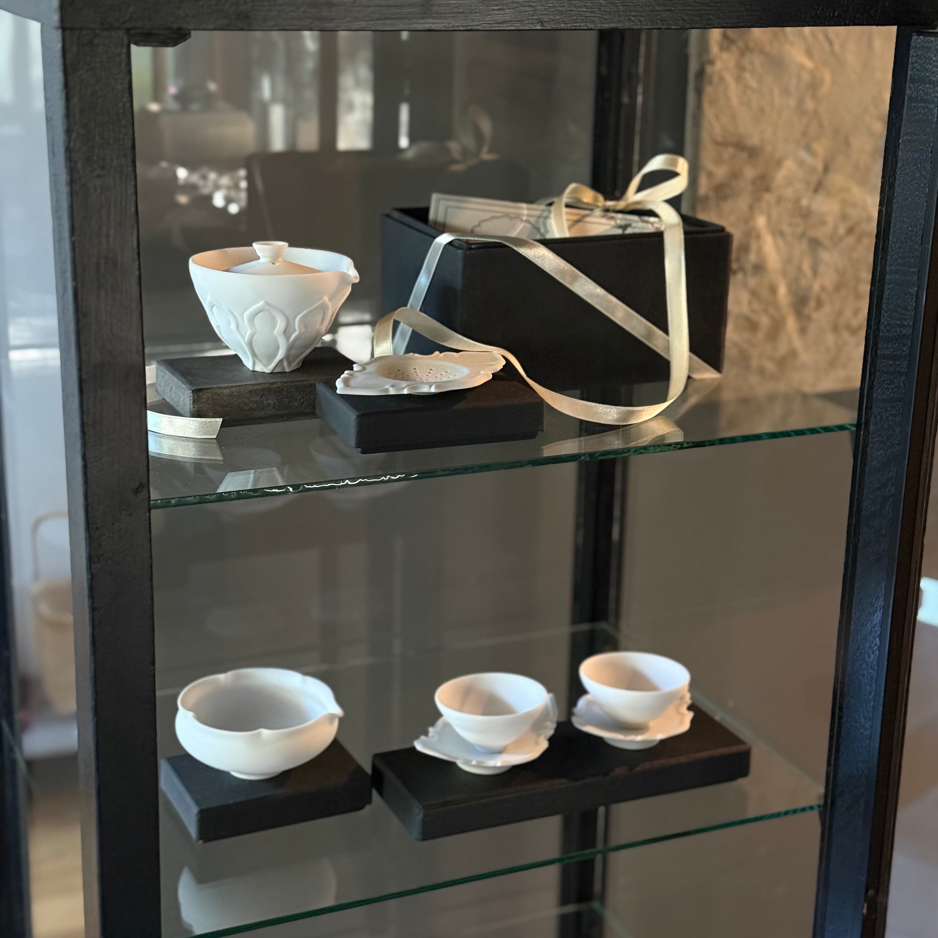 白と黒を基調としたマットな釉薬や華やかな銀彩が心躍るモダンな器は、設えに花を添え、おもてなしにも重宝します。彫刻のように深い陰陽が際立つ優雅なフォルム、可憐な植物を思わせる輪郭は美しさが際立ち、日常をよりエレガントに演出してくれる存在です。