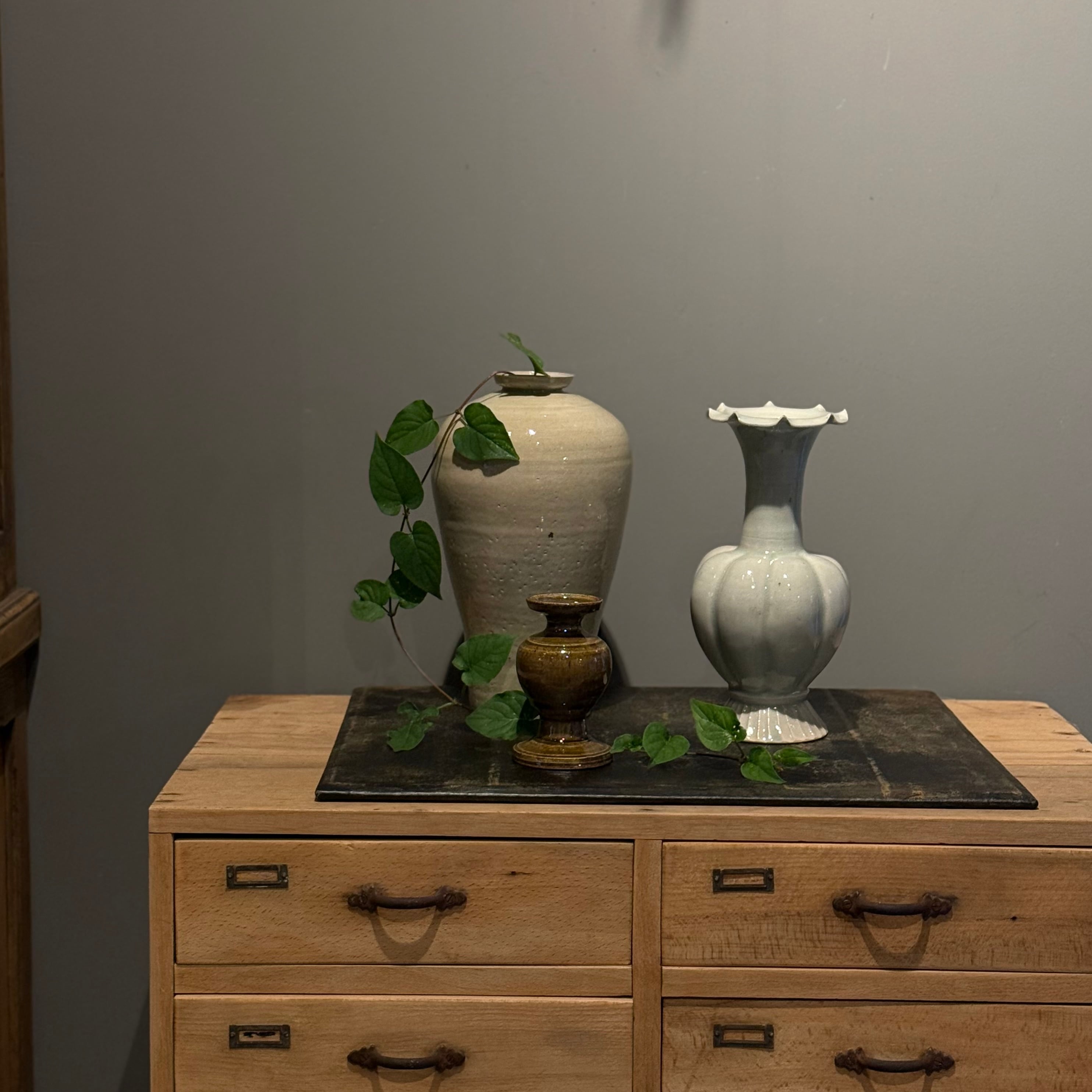 ベトナム李朝時代、高麗や宋の時代の古陶磁に影響を受け、青磁や白磁、灰釉や炭化、染付と