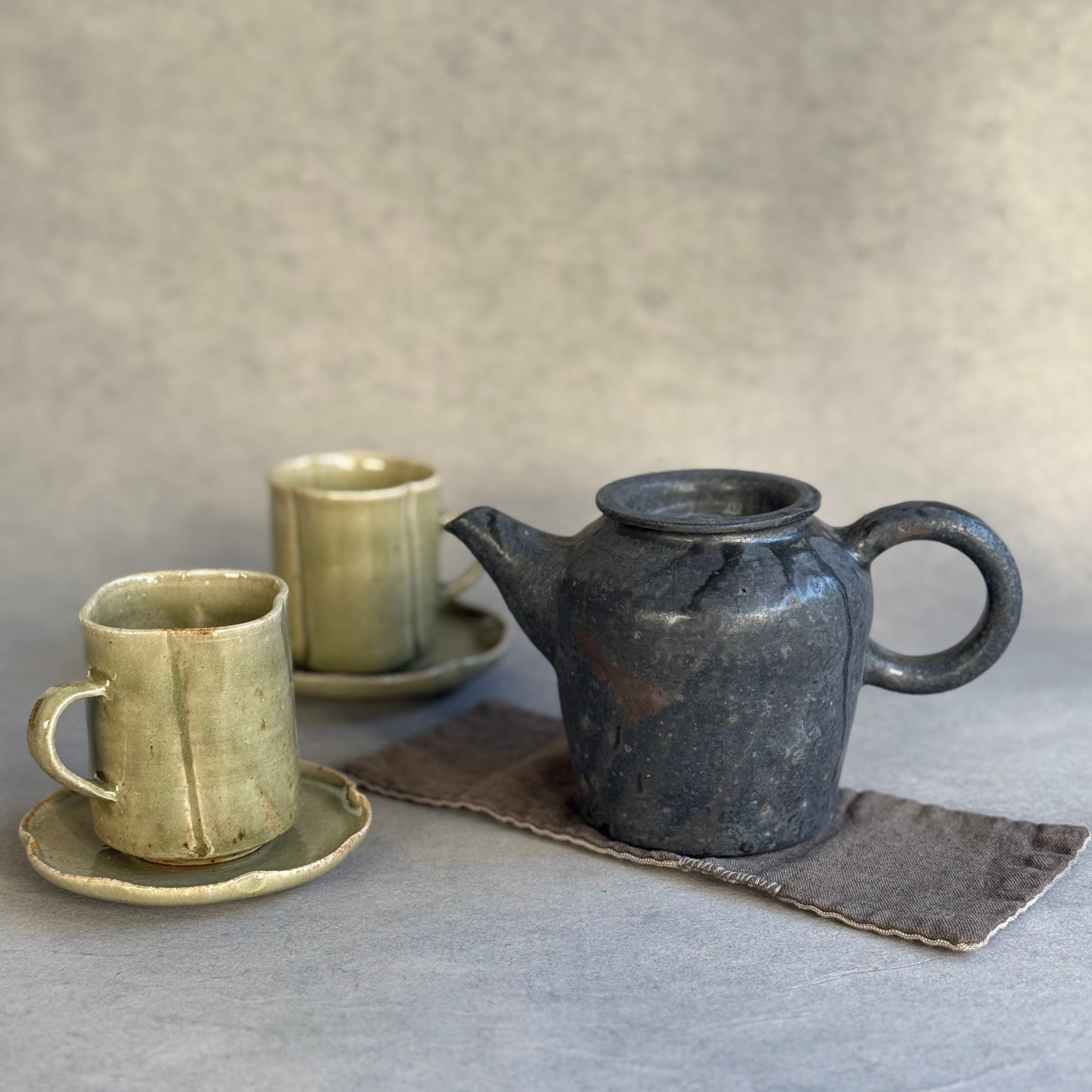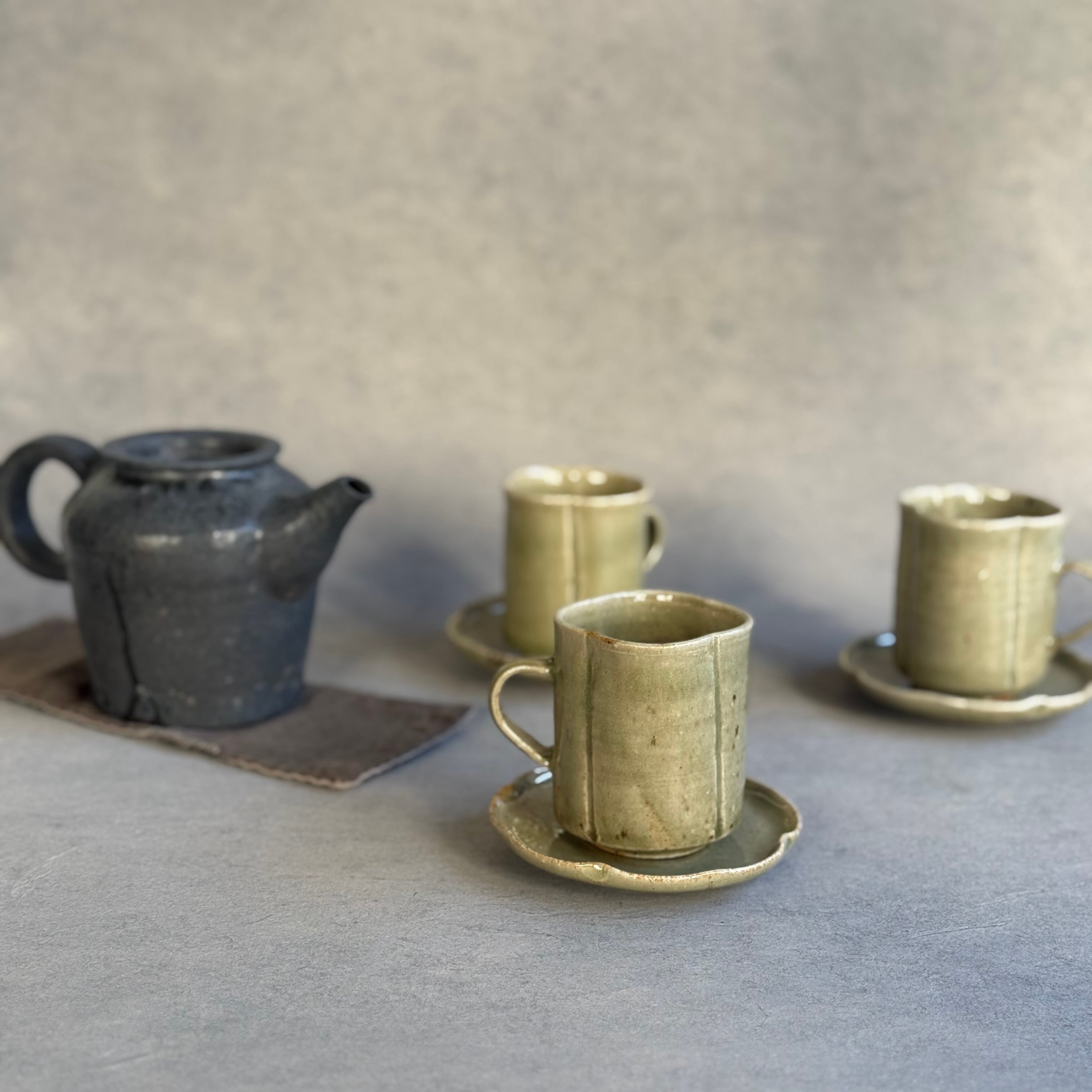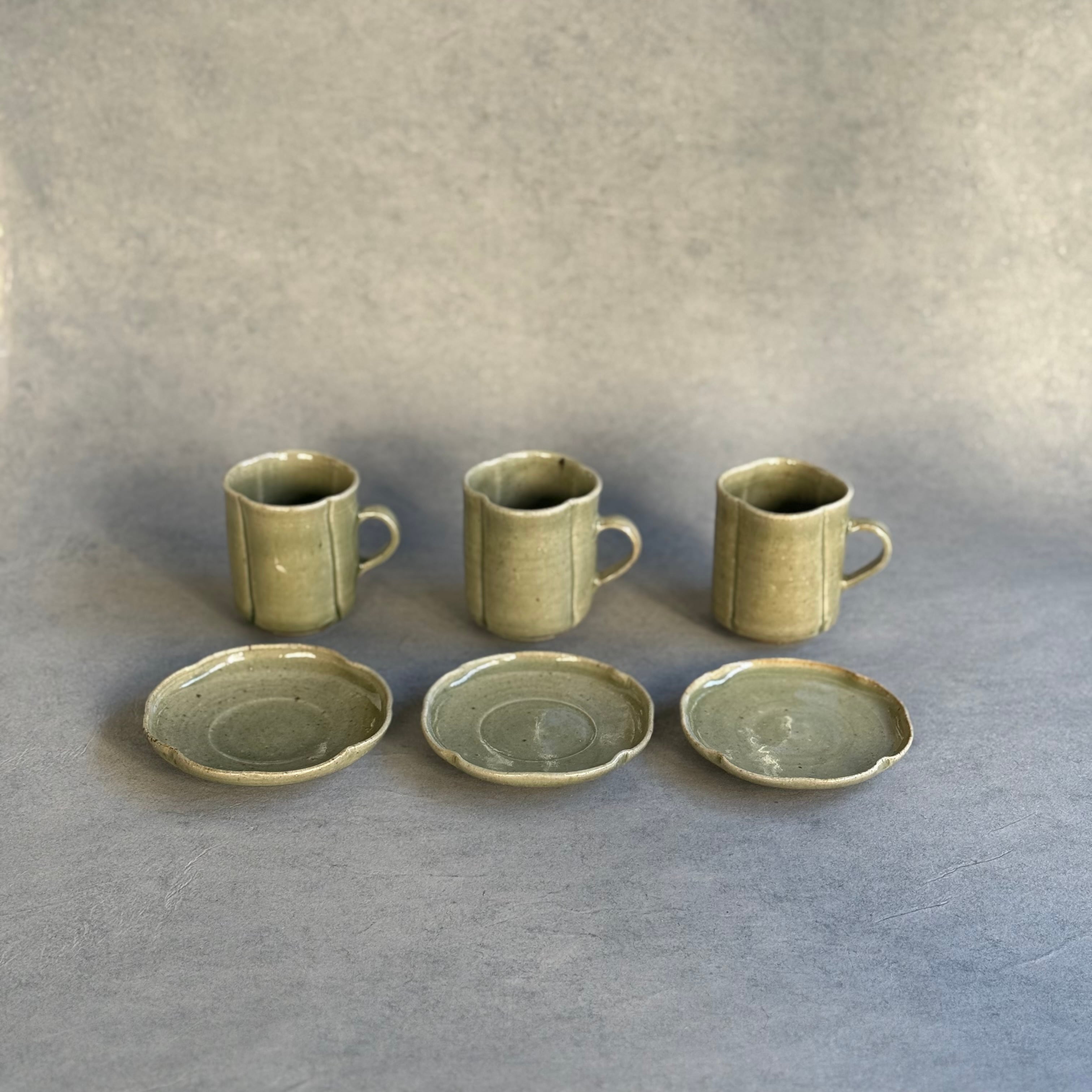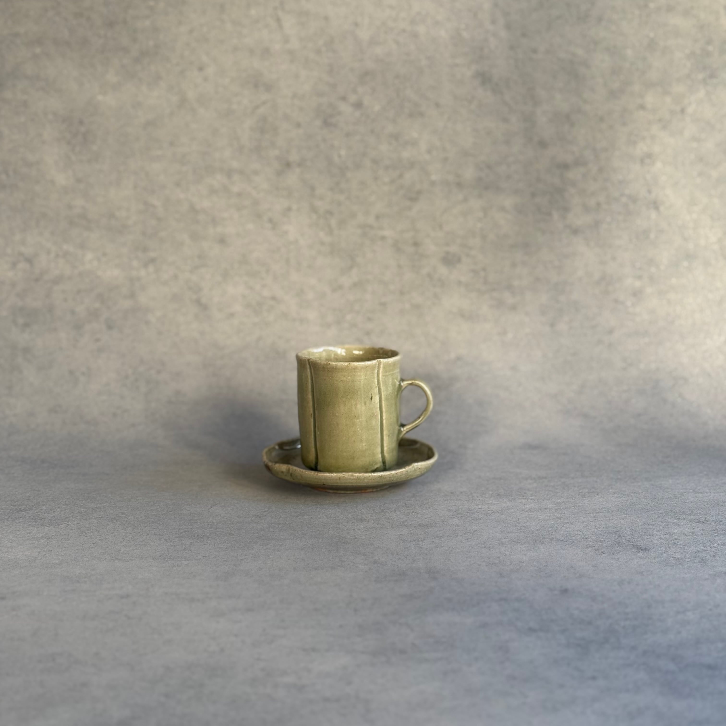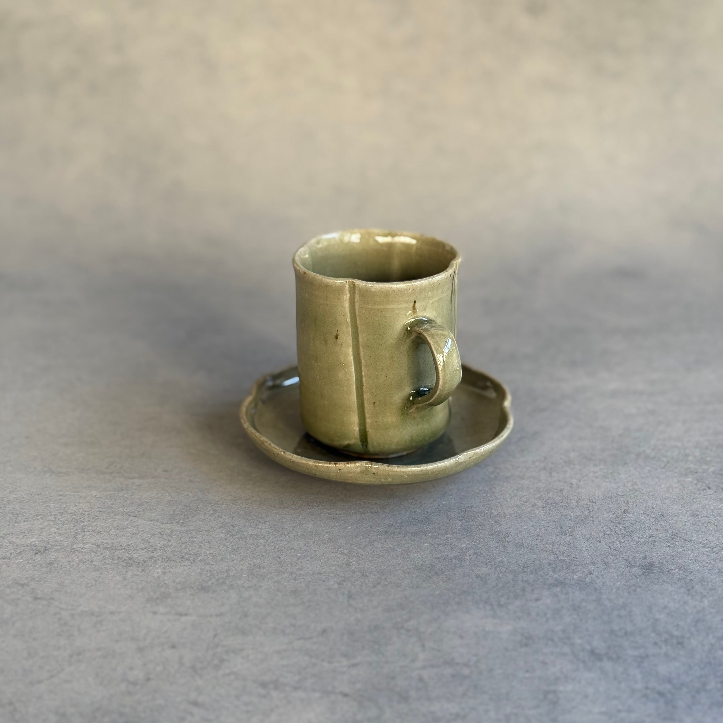 日高伸治 青磁 四葉文デミタス&ソーサー