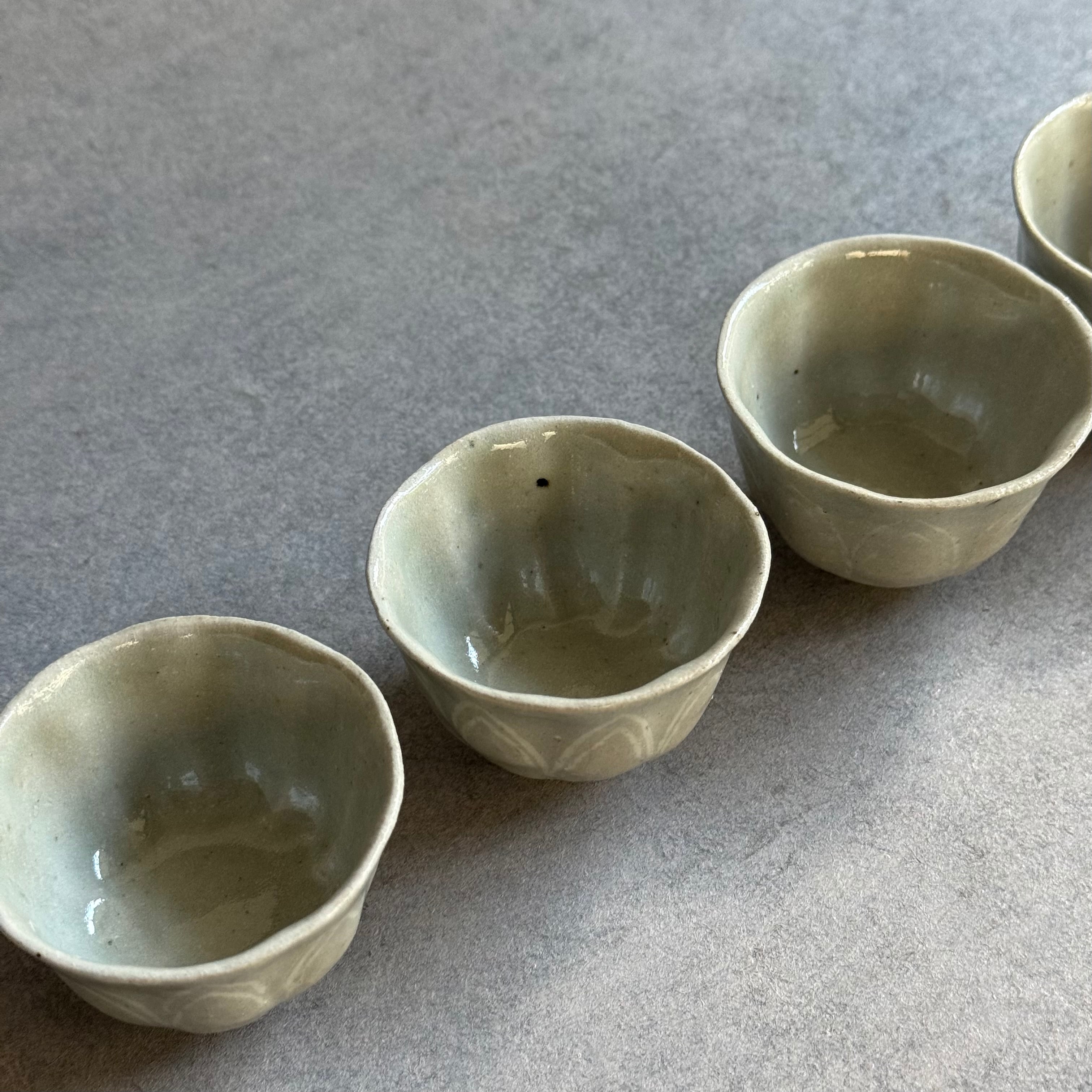 日高伸治 青白磁 茶杯 象嵌
