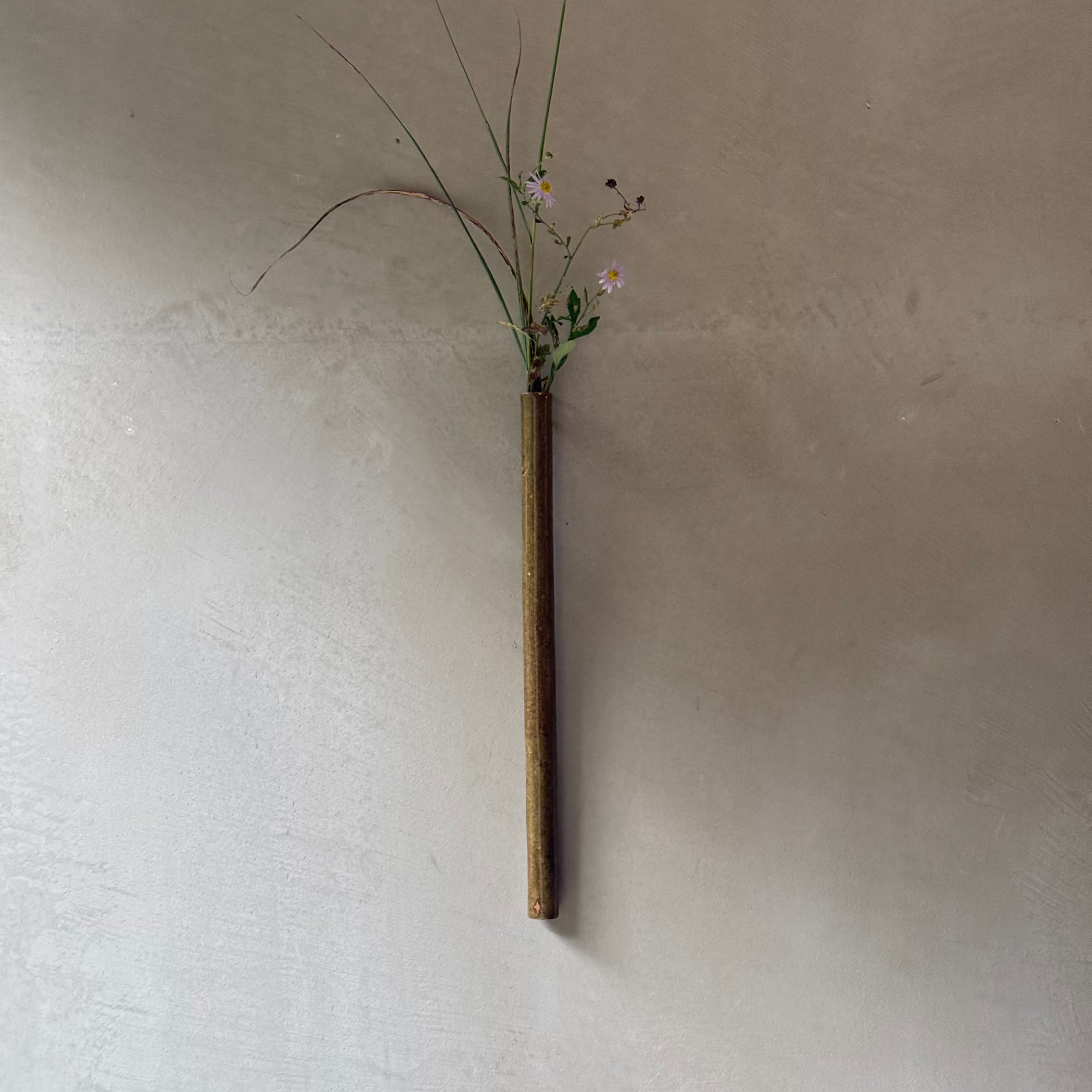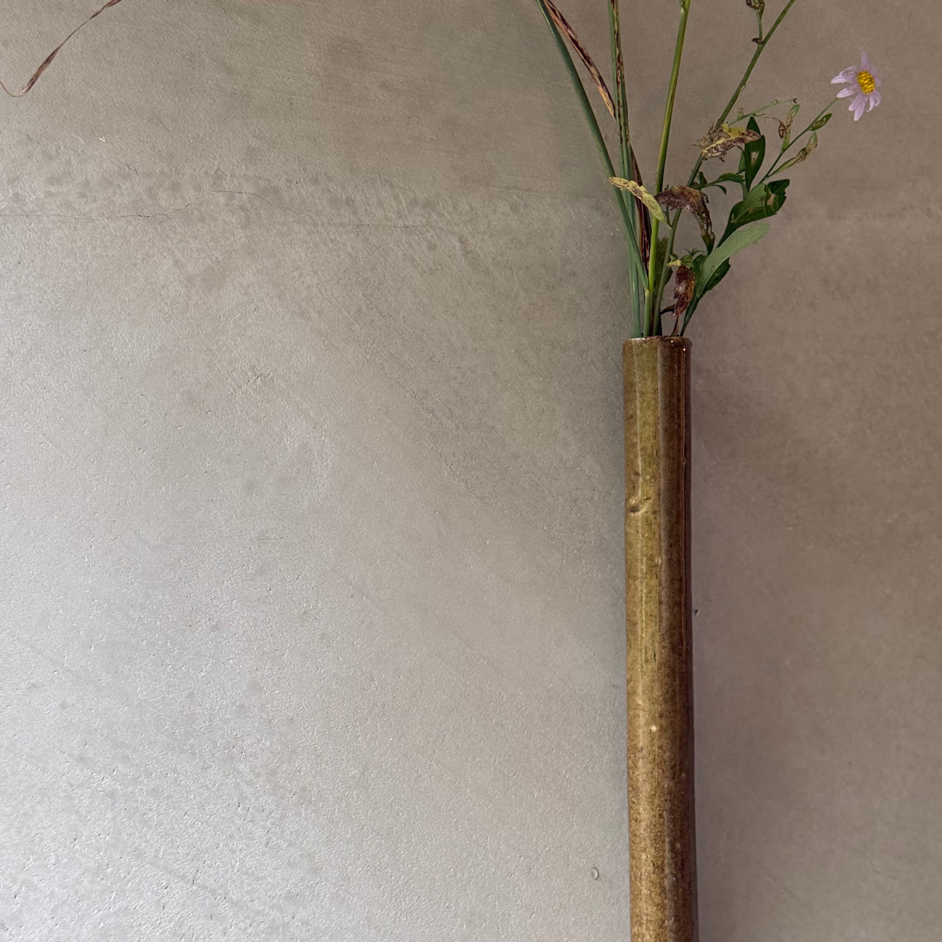 日高伸治 アメ緑釉 筒形掛花入