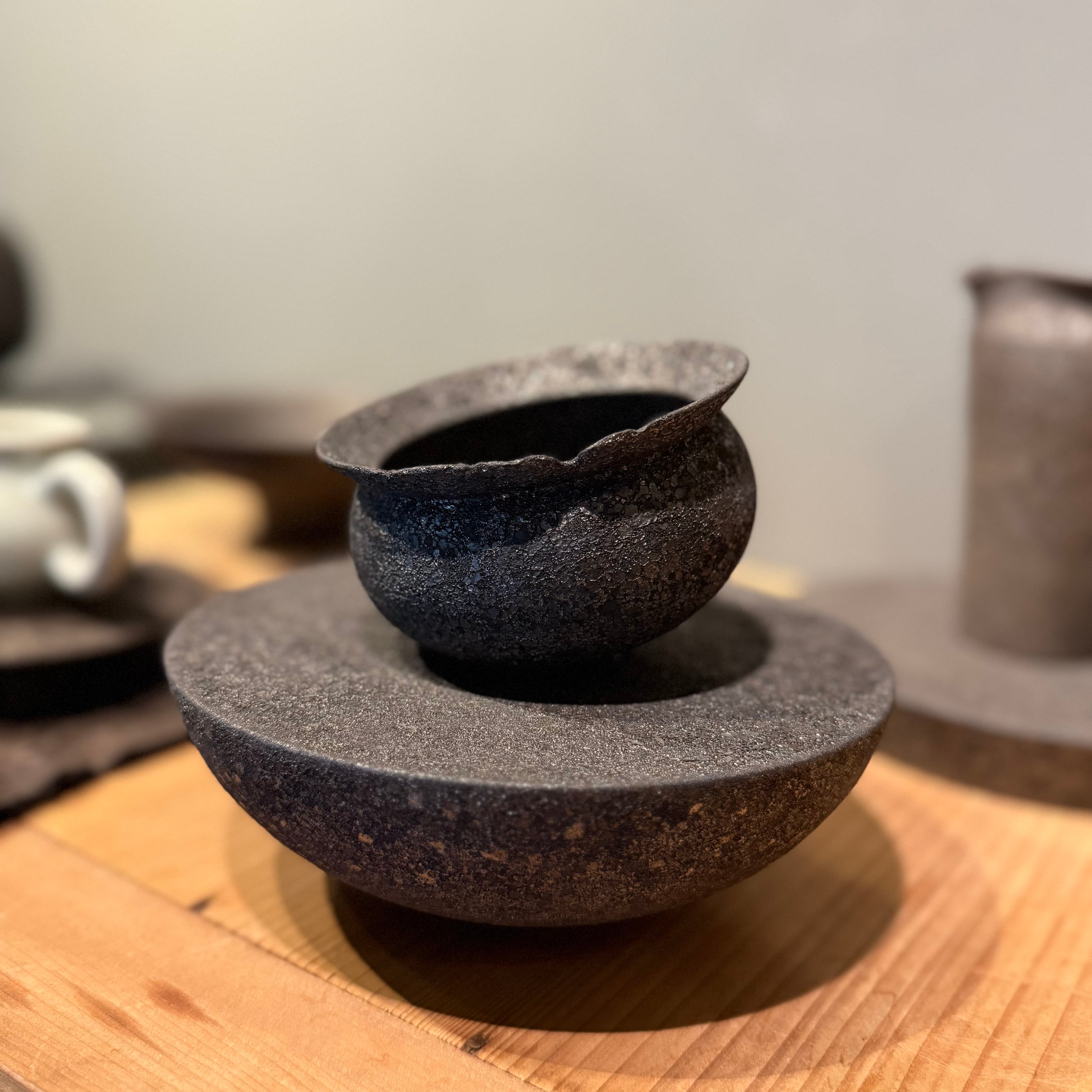 息を潜めるように佇む花器やオブジェ、用途を使い手に委ねた柔軟な茶器など、美しい造形に刻まれた煌めきをご堪能下さい。