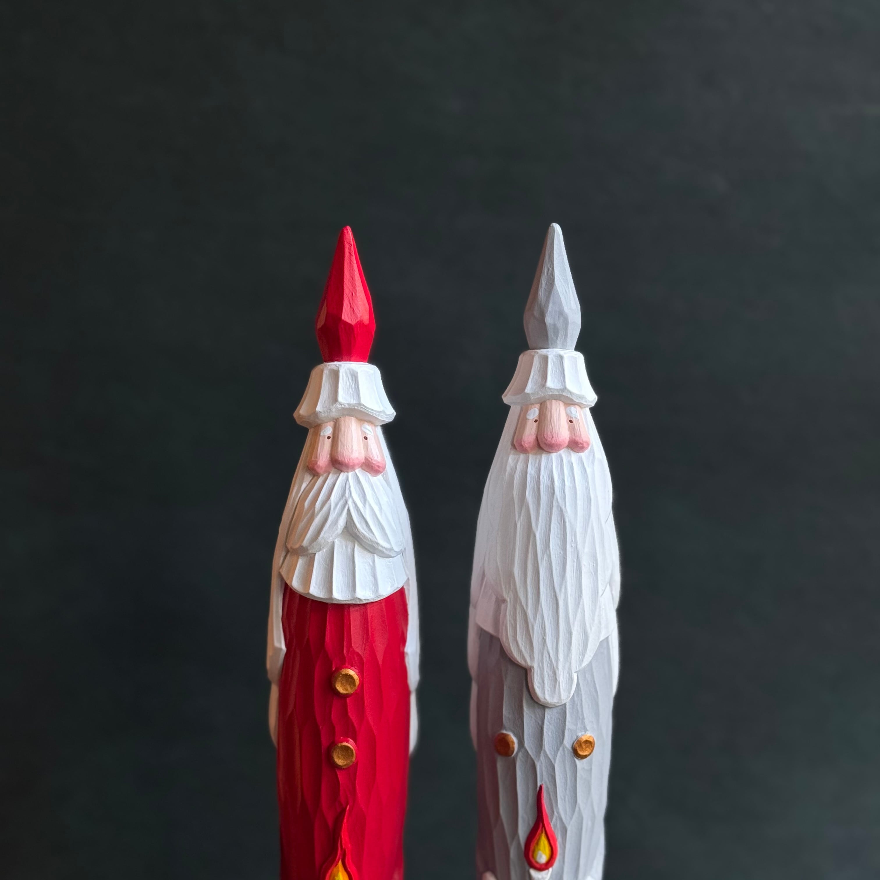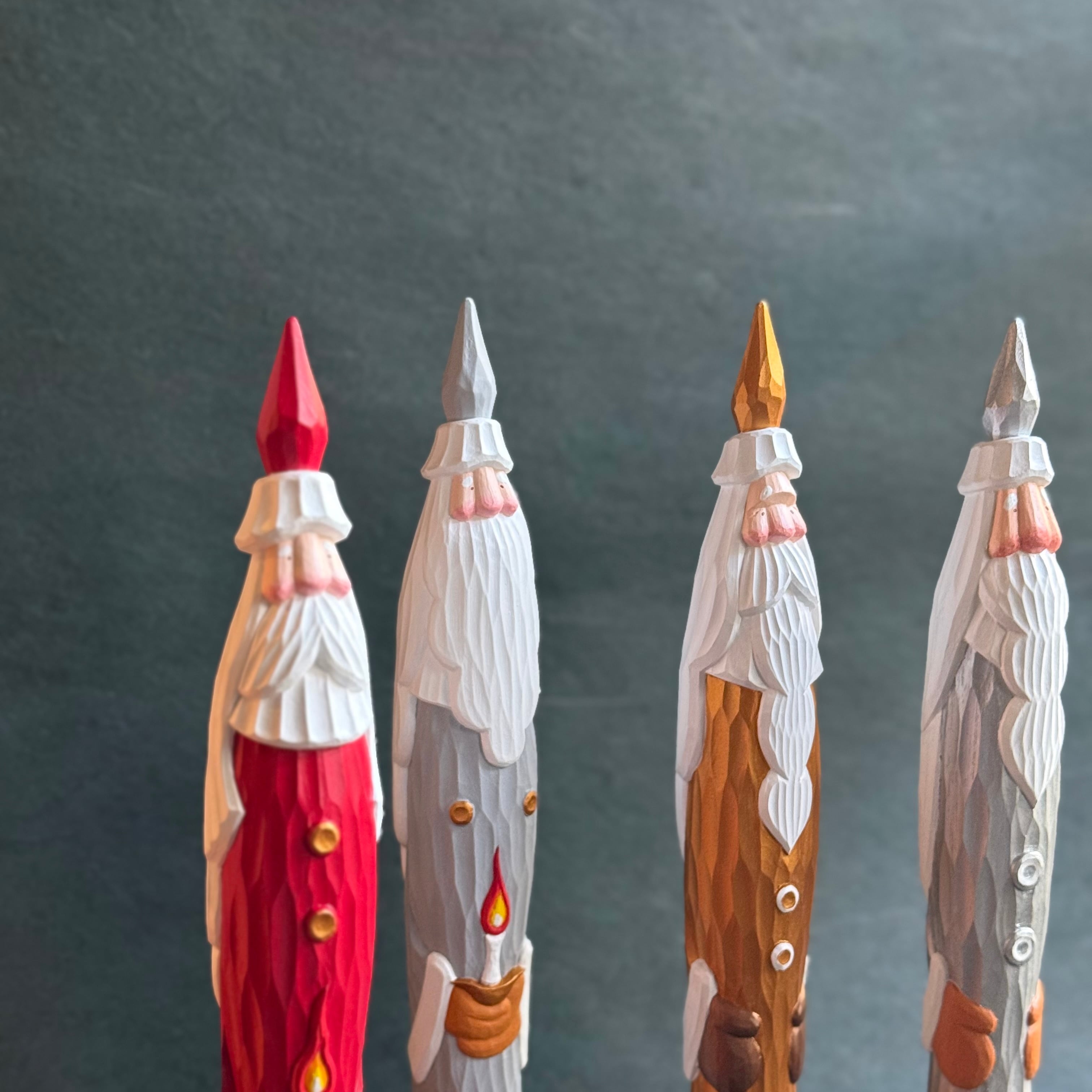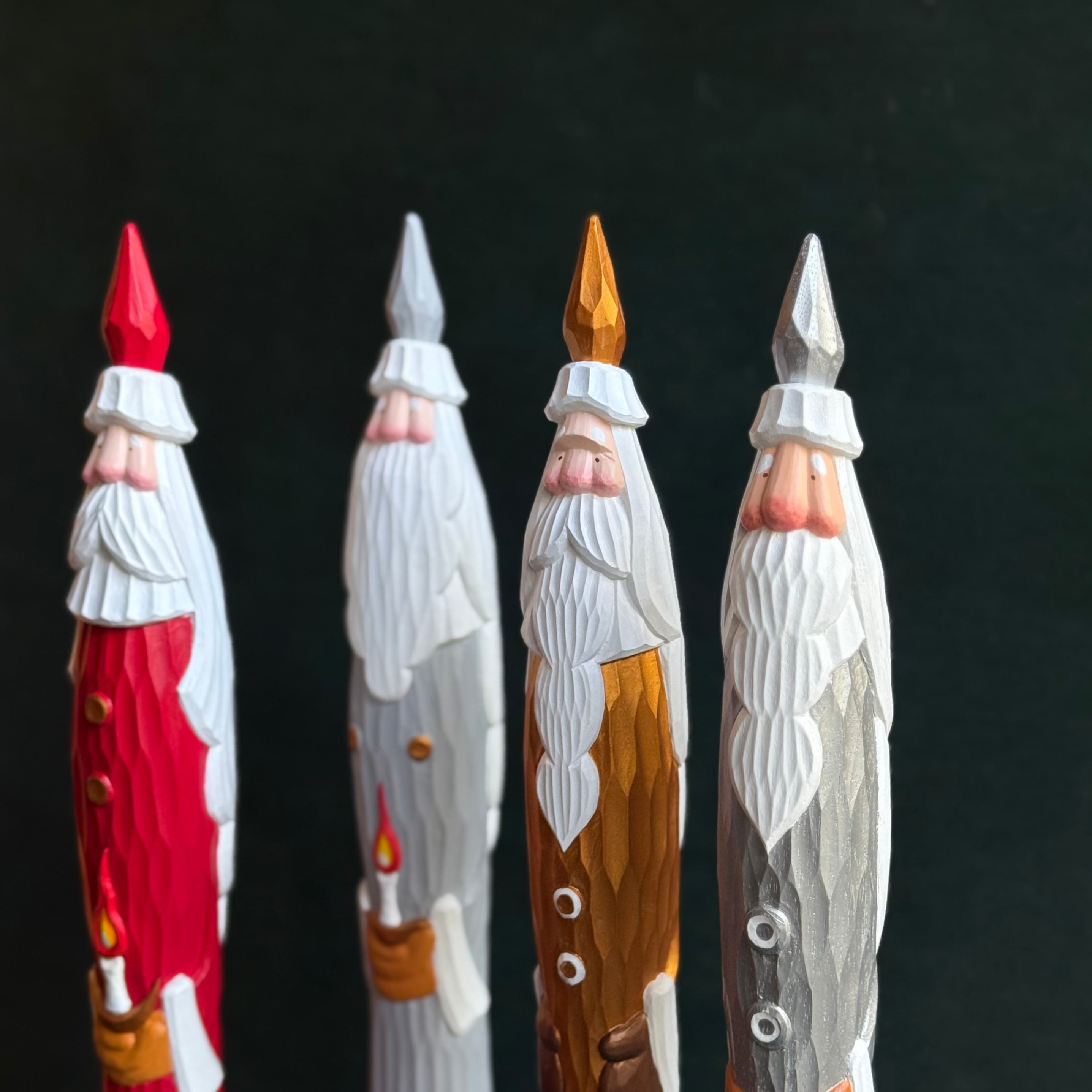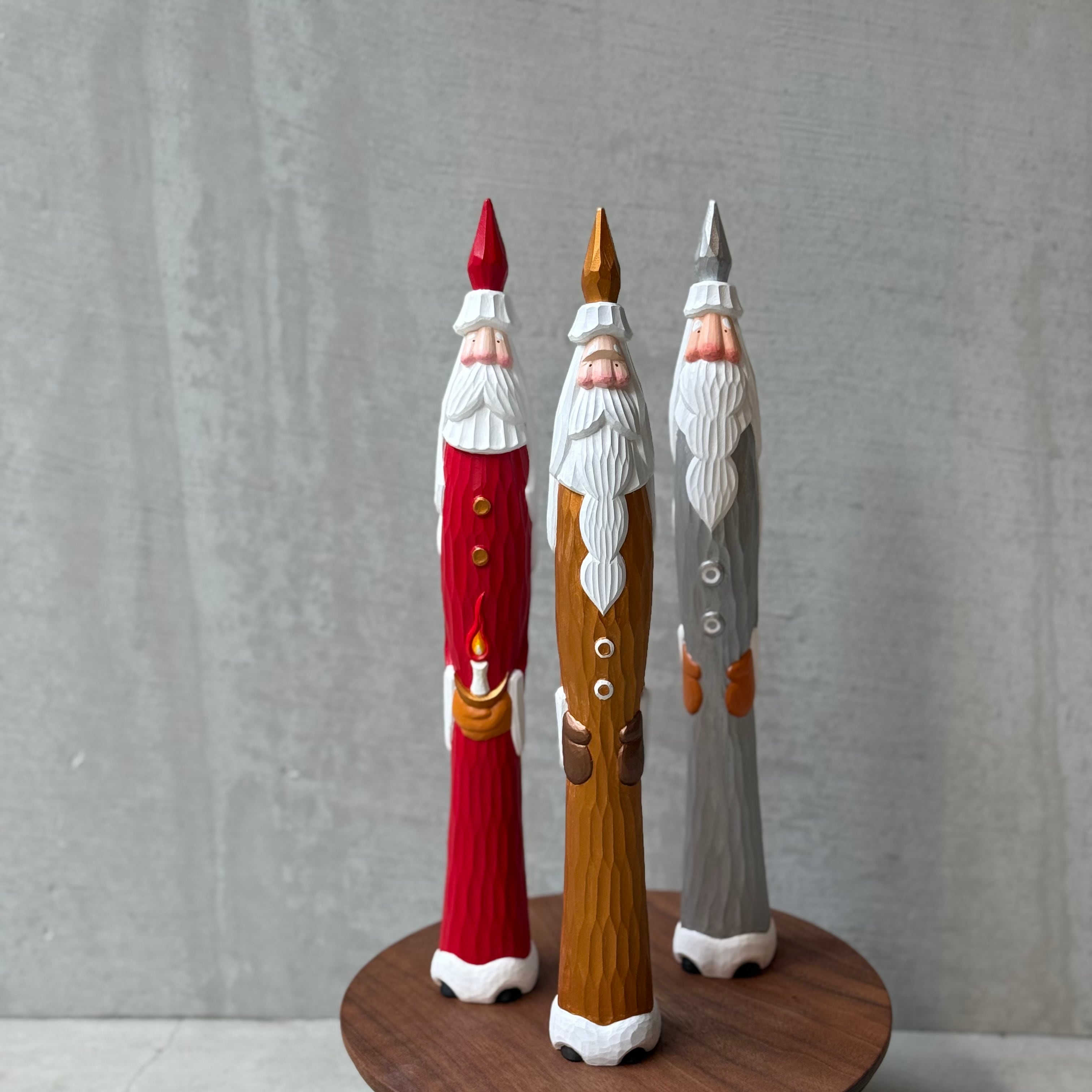 一つひとつ手作業で彫られているためちょっとした表情の違いや個性が選ぶ楽しみのひとつでもあります。気持ちが高揚する冬支度のひとつ、愛らしいとんがりサンタと共に温かなクリスマスの準備をしましょう。