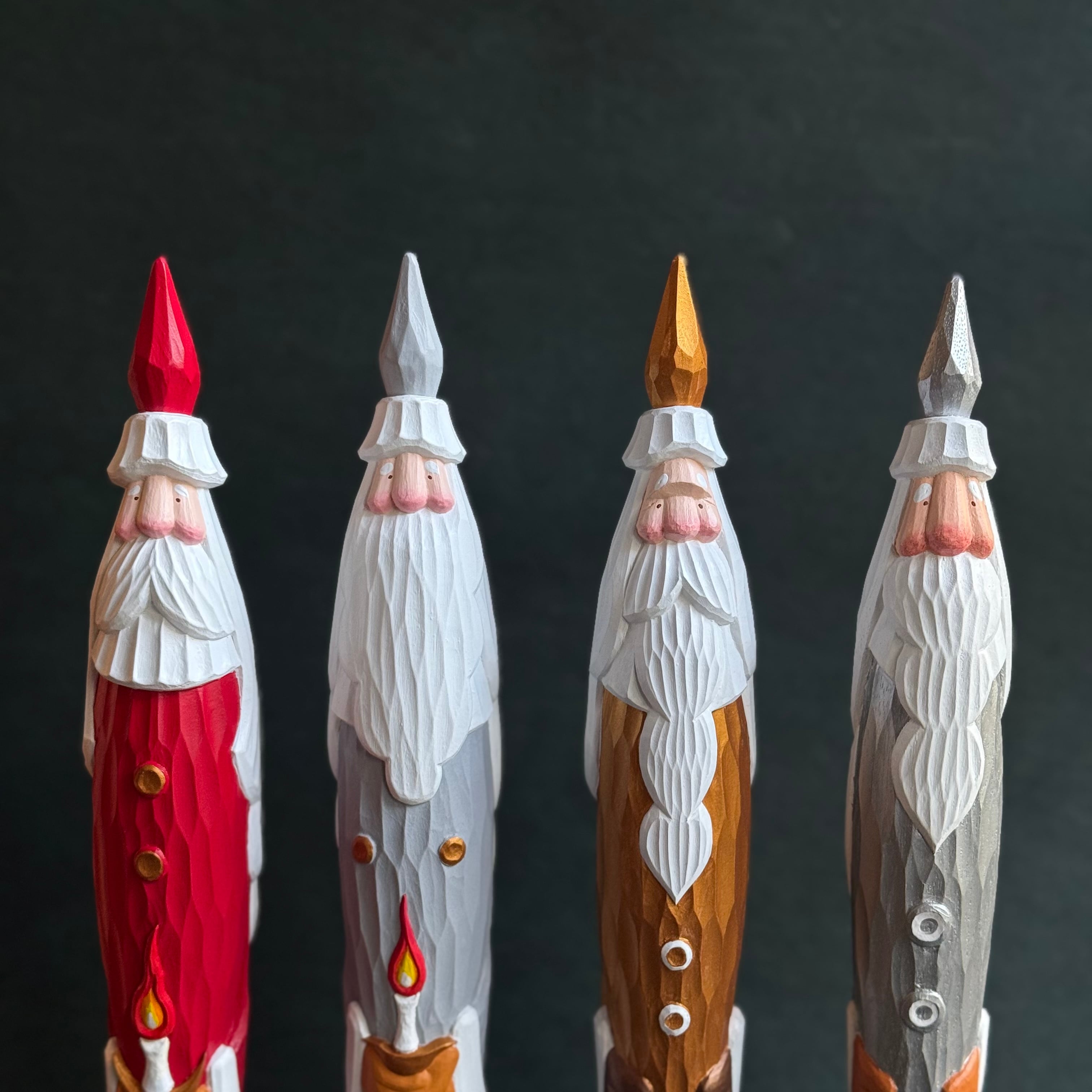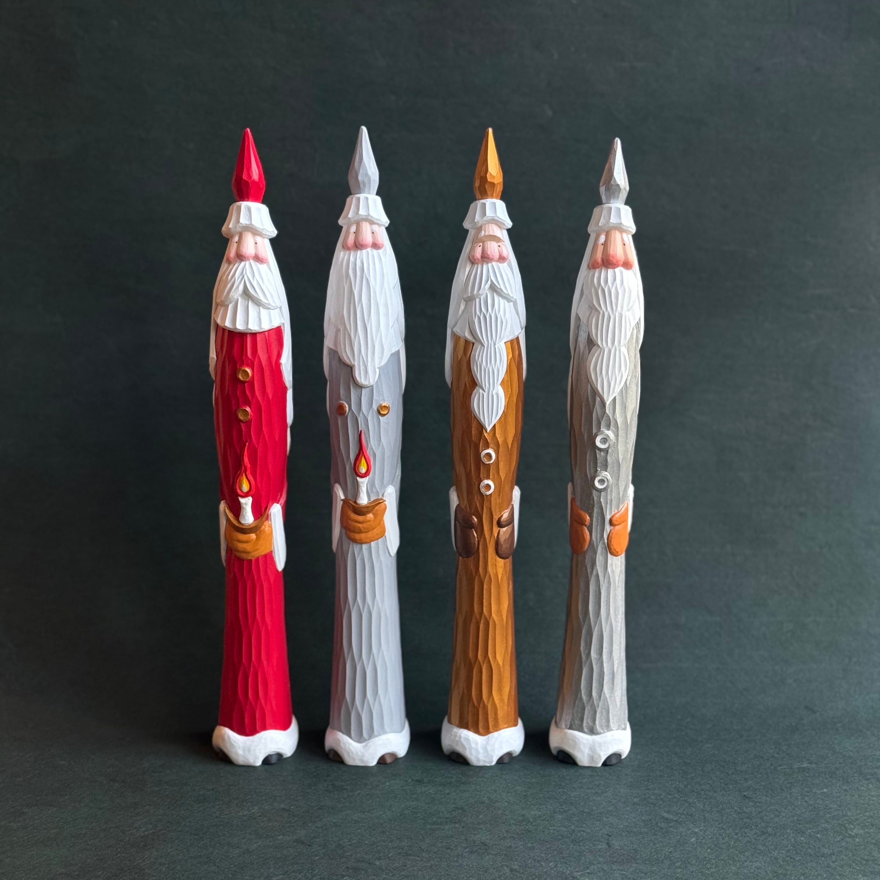 一つひとつ手作業で彫られているためちょっとした表情の違いや個性が選ぶ楽しみのひとつでもあります。気持ちが高揚する冬支度のひとつ、愛らしいとんがりサンタと共に温かなクリスマスの準備をしましょう。