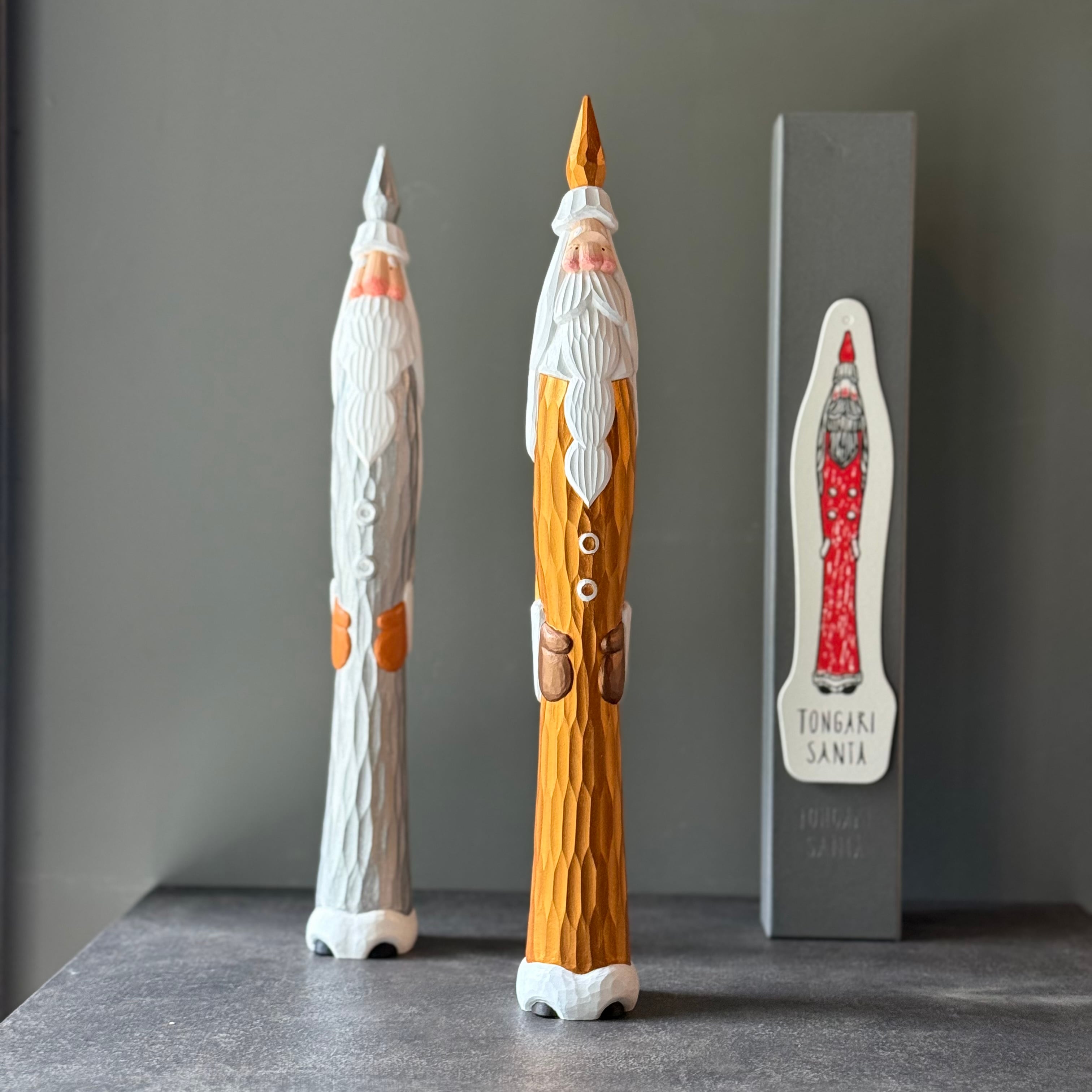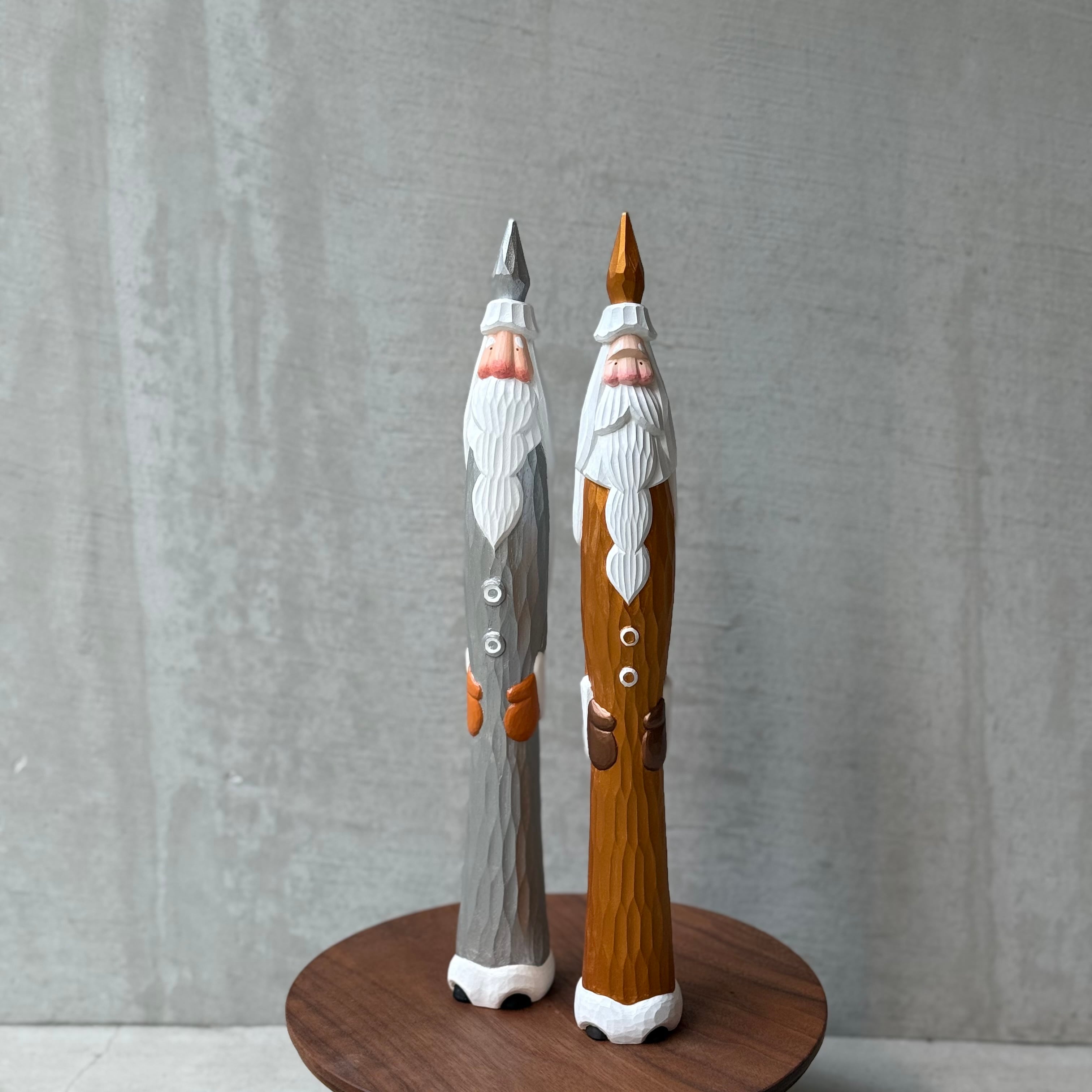 一つひとつ手作業で彫られているためちょっとした表情の違いや個性が選ぶ楽しみのひとつでもあります。気持ちが高揚する冬支度のひとつ、愛らしいとんがりサンタと共に温かなクリスマスの準備をしましょう。