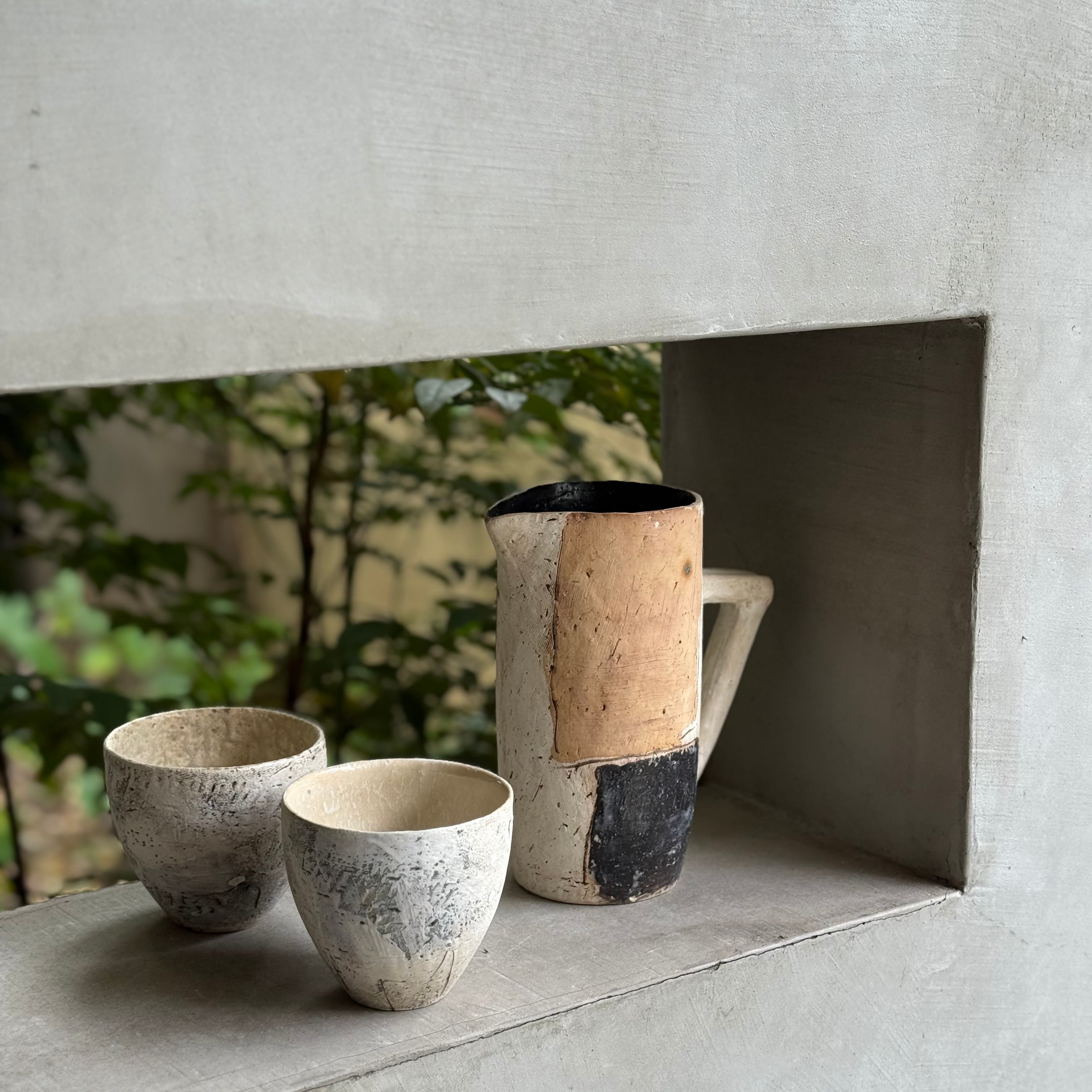 Yoko Takao creates works that resemble abstract paintings by using various types of decorative clay and applying glazes in a partial manner. Her pieces possess a texture that conveys the breath of the earth, a sense of color, and the power to transform the landscape of space. She has expanded his range of activities to include vessels, objects, and beeswax paintings.