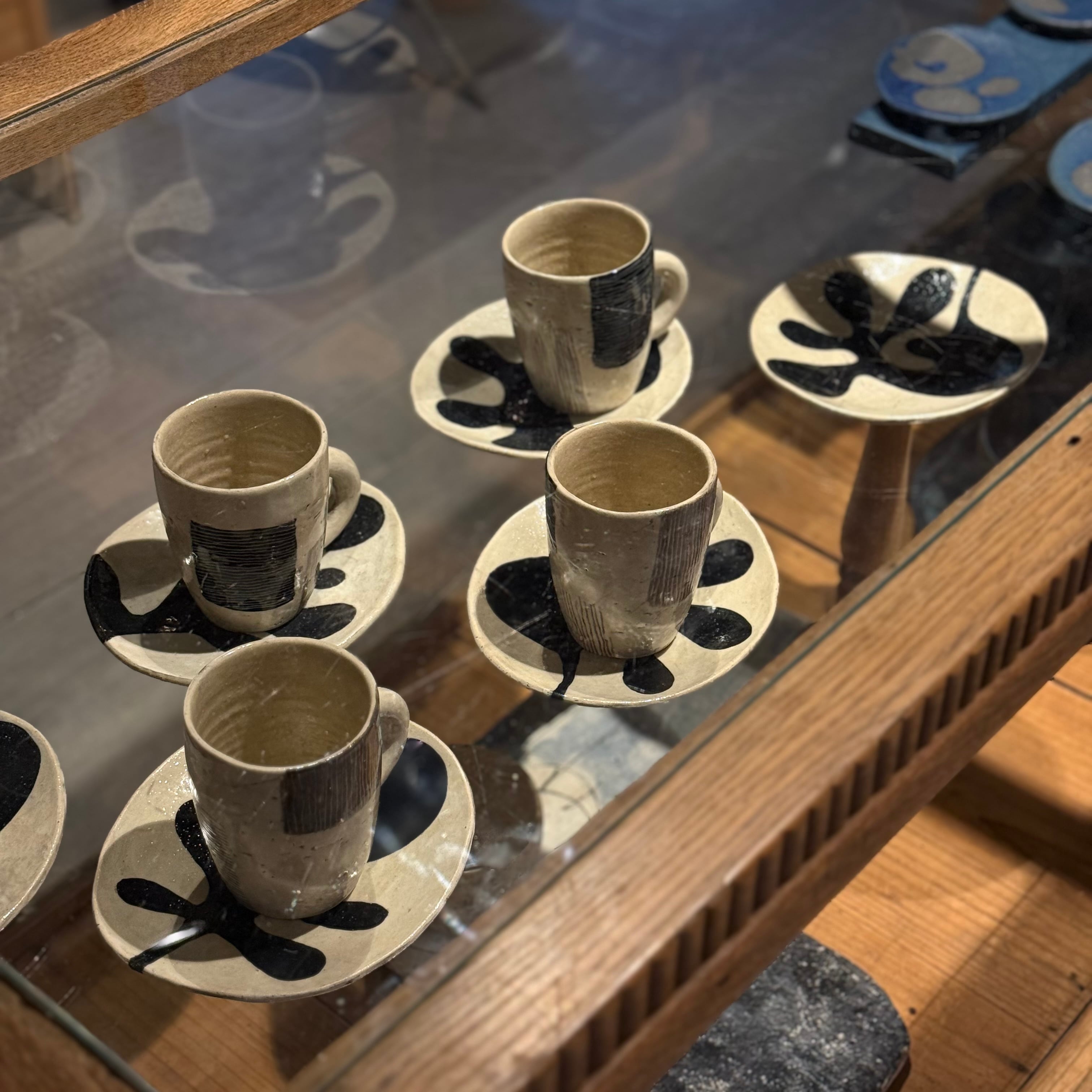 様々な化粧土を用い釉薬を部分的に塗るなどして、まるで抽象画の様な作品を生み出す鷹尾さん。土の息吹を感じる質感、色彩のセンス、空間の景色をも変える力があります。