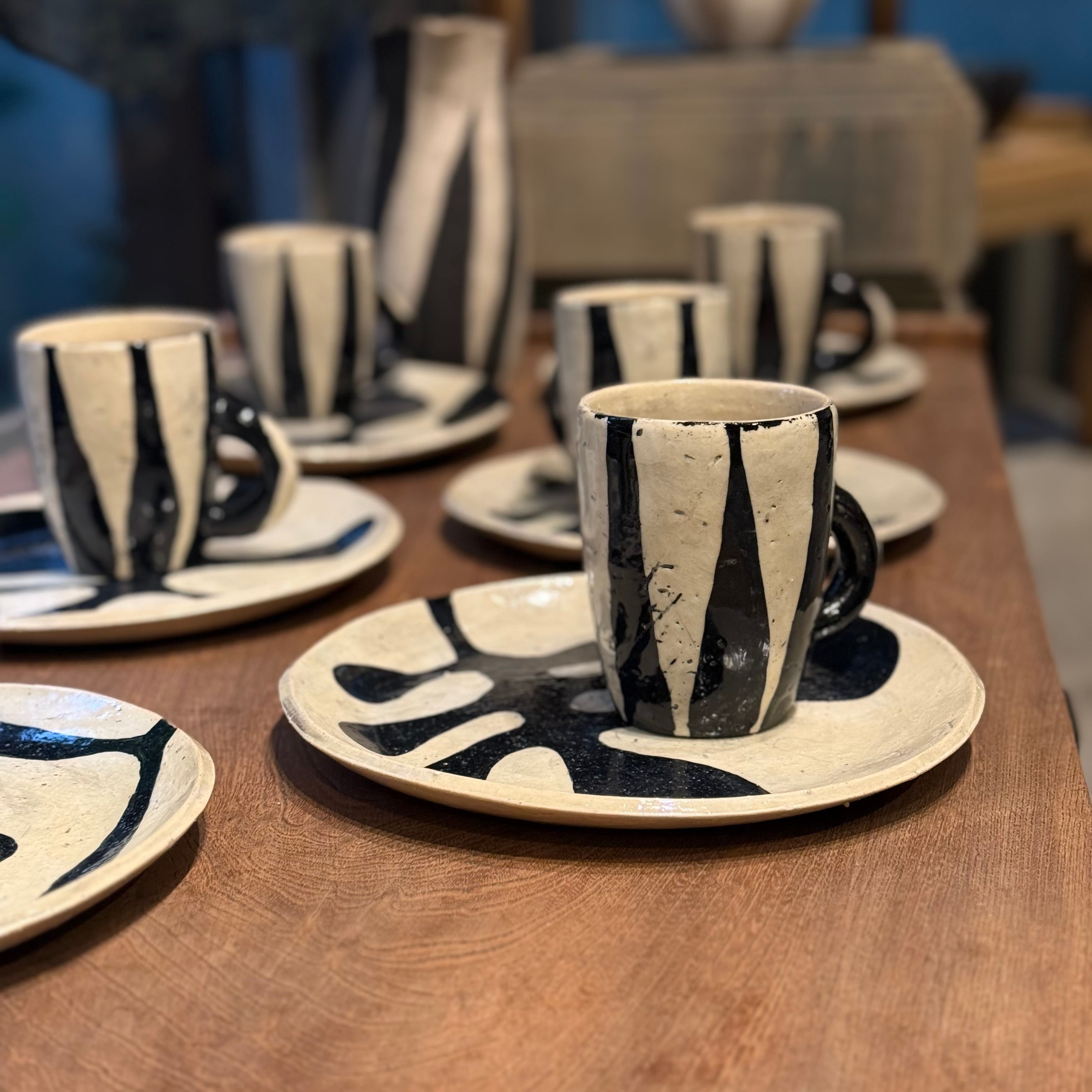 様々な化粧土を用い釉薬を部分的に塗るなどして、まるで抽象画の様な作品を生み出す鷹尾さん。土の息吹を感じる質感、色彩のセンス、空間の景色をも変える力があります。