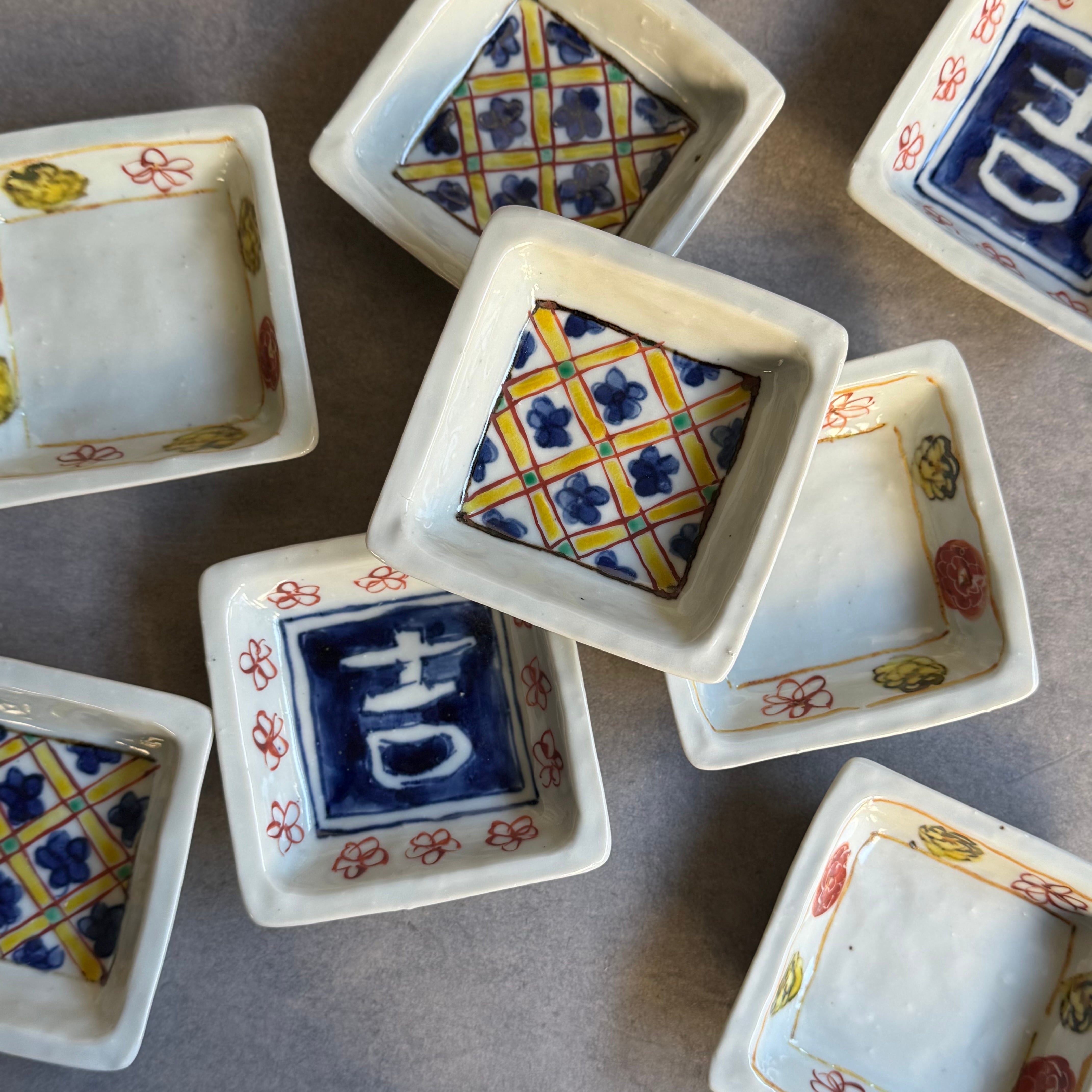 縁起の良い言葉や吉祥文様、時にチャーミングなメッセージが描かれた作品からは、アイディアに溢れ日々楽しく制作なさっている様子が伺えます。