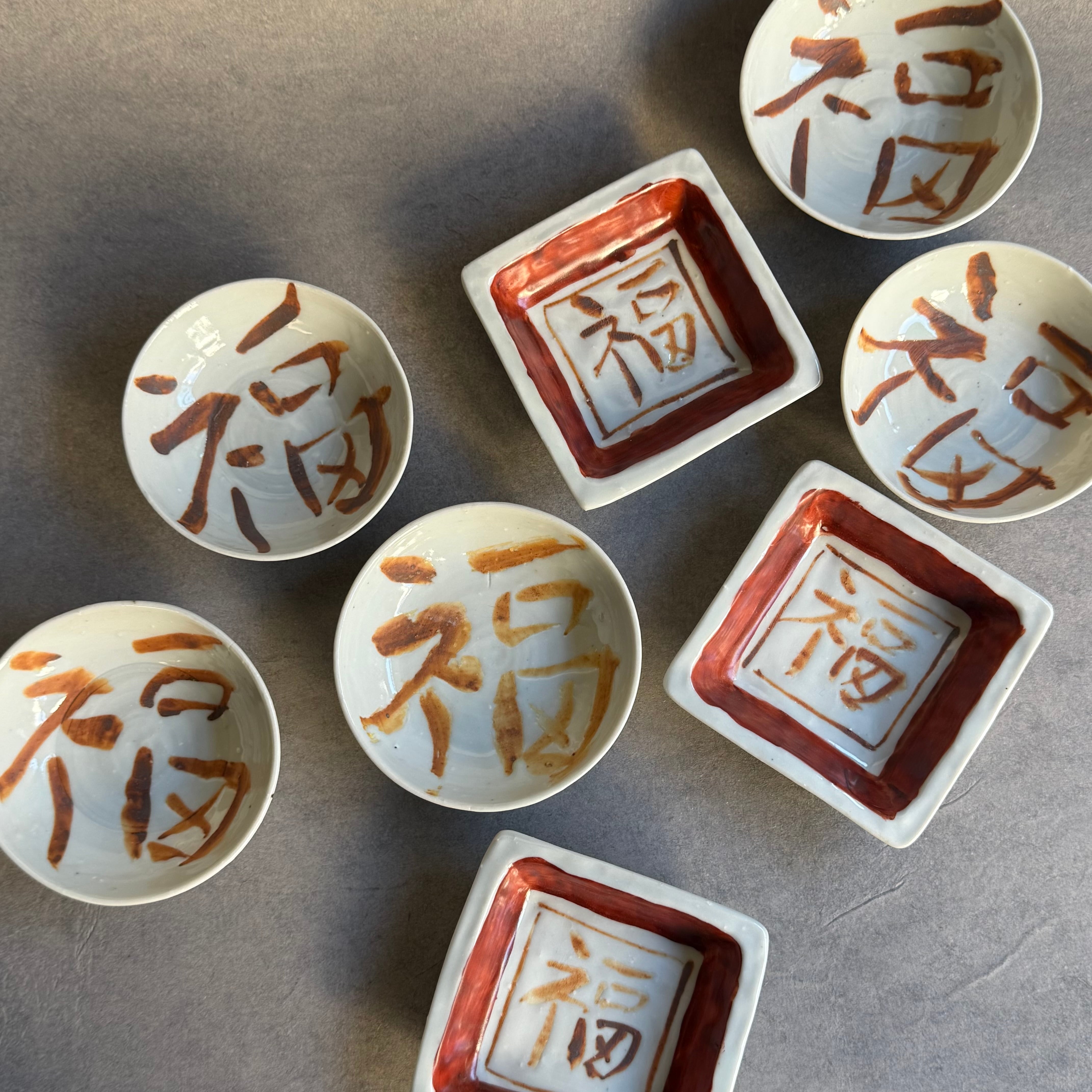 縁起の良い言葉や吉祥文様、時にチャーミングなメッセージが描かれた作品からは、アイディアに溢れ日々楽しく制作なさっている様子が伺えます。