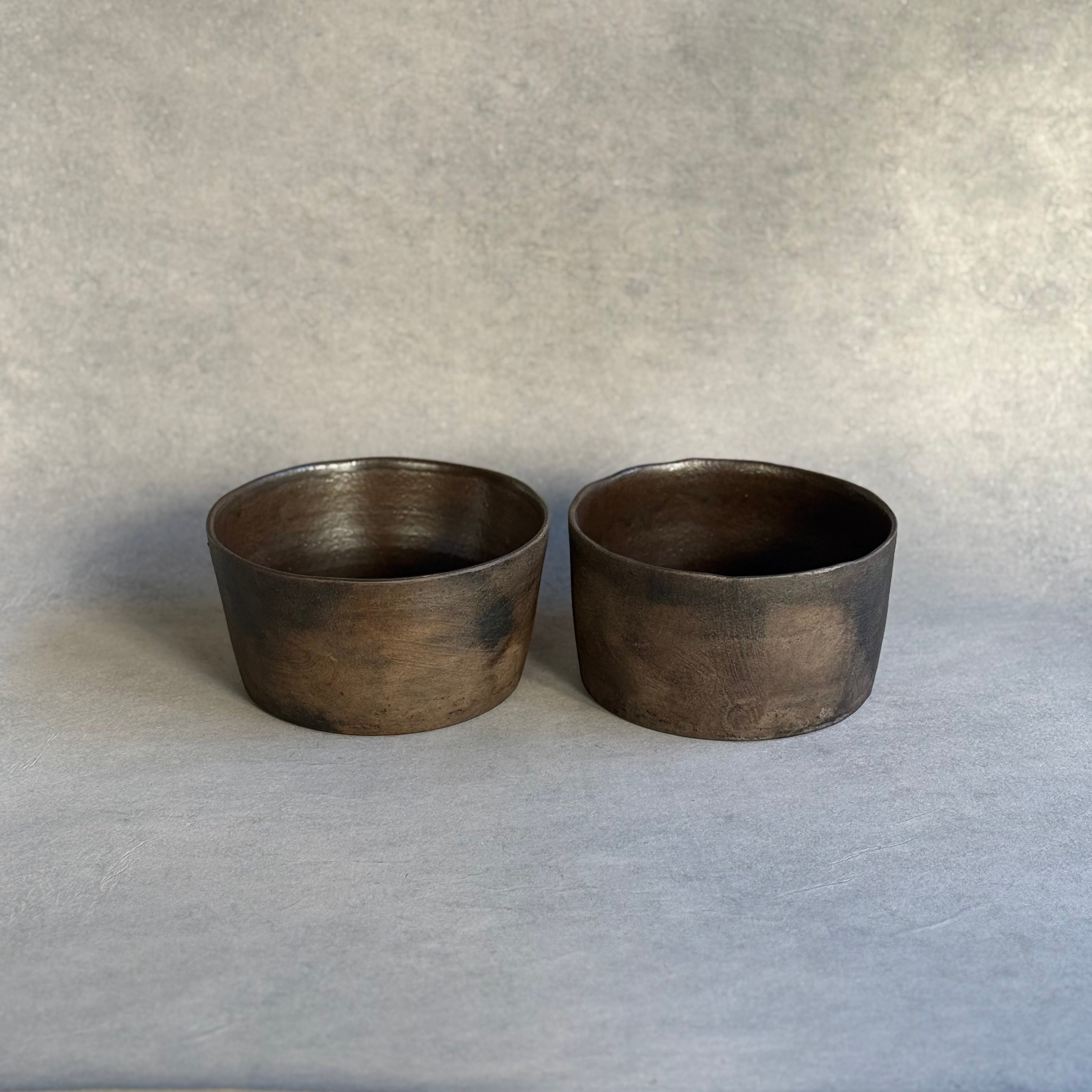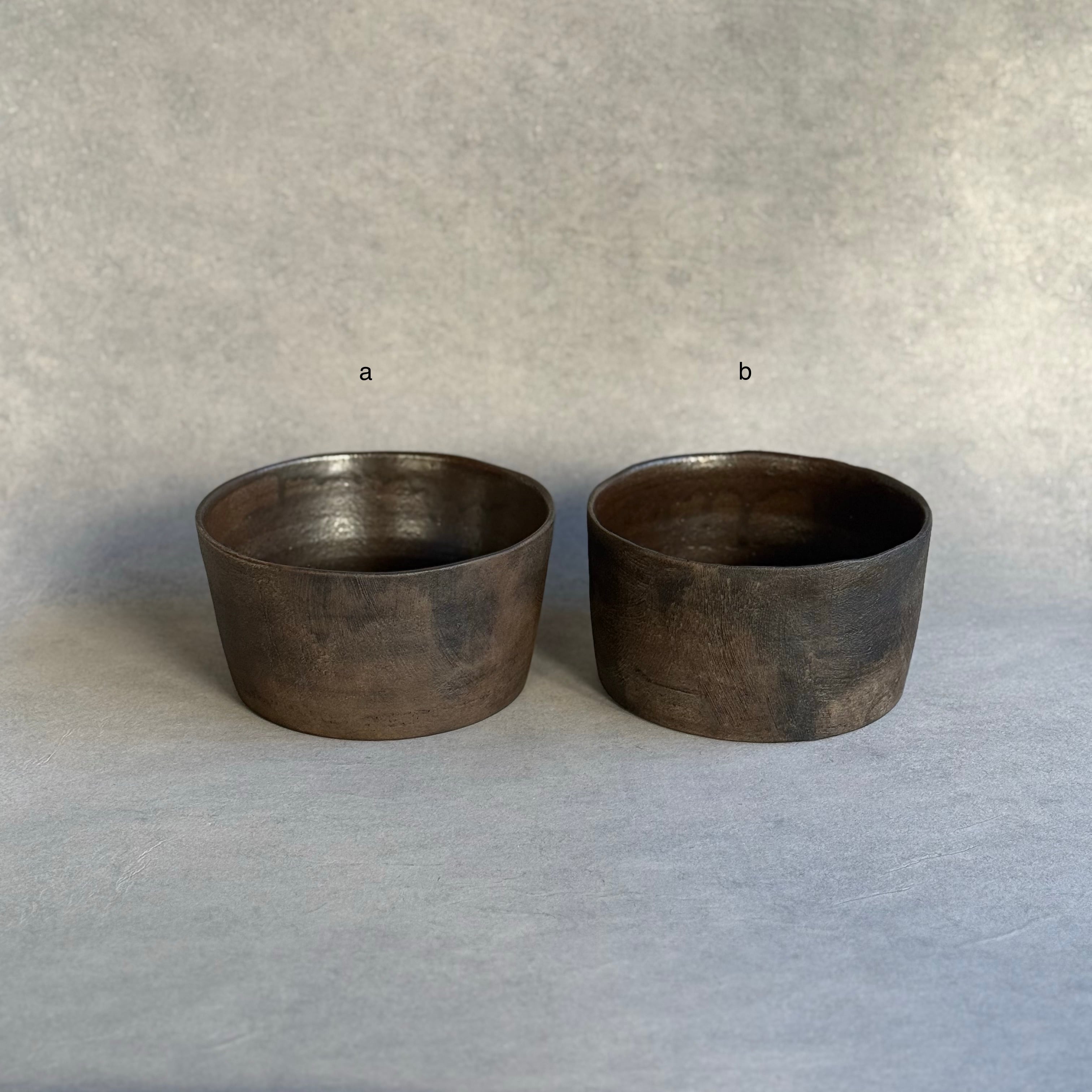 黒銀彩のしっとりと風情のある表情は、黒色の釉薬を塗って本焼き後、外側に刷毛で化粧を施し銀を塗って焼き付けた後、仕上げに漆を塗り焼き付けています。