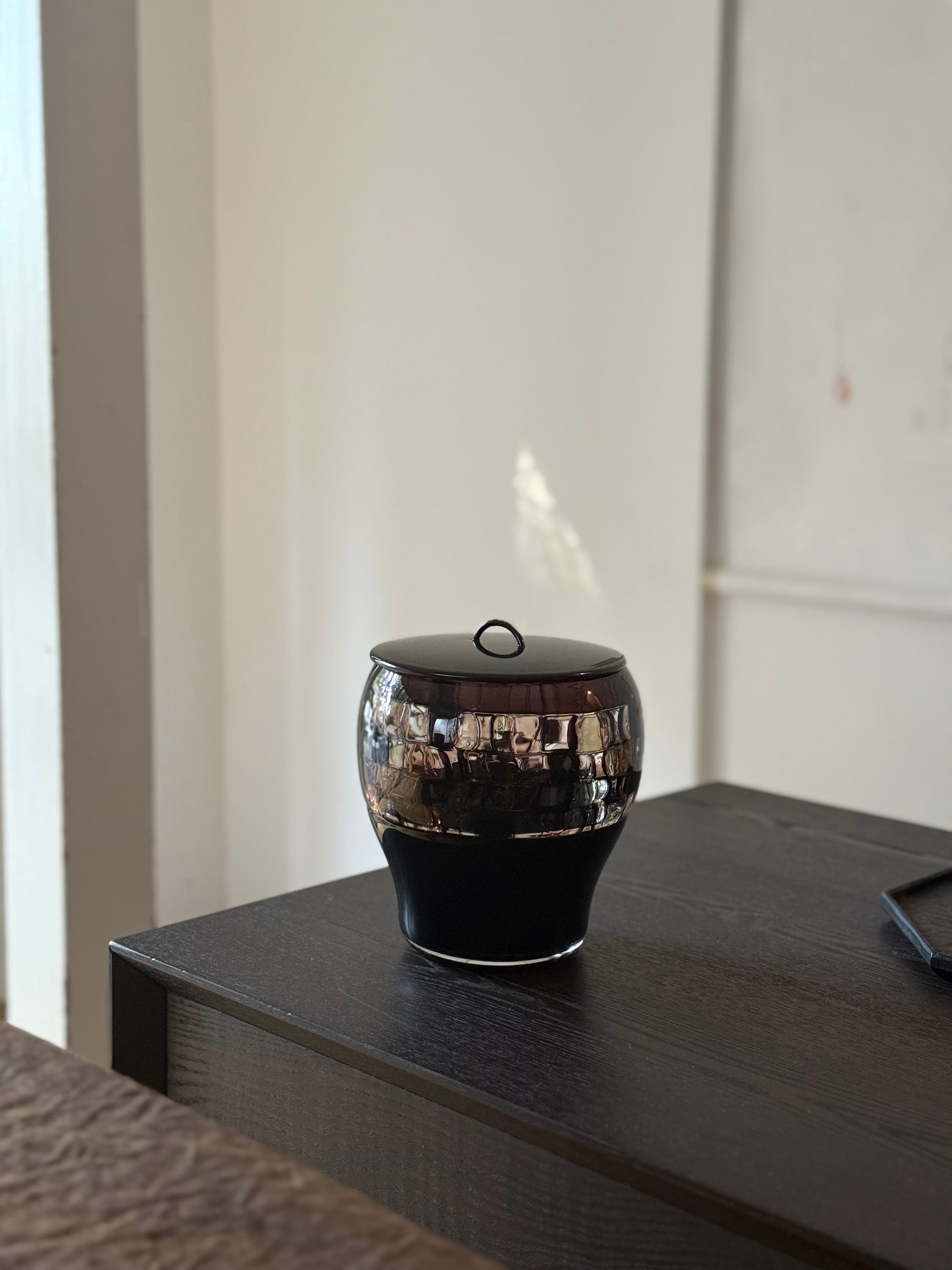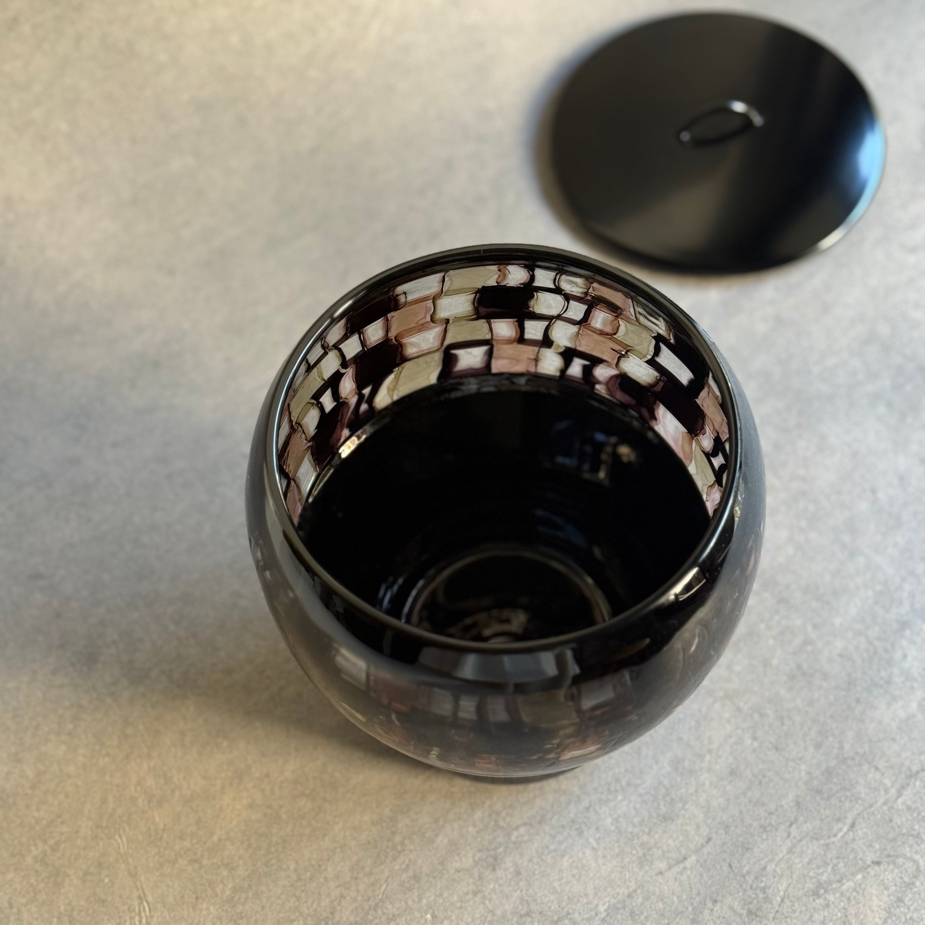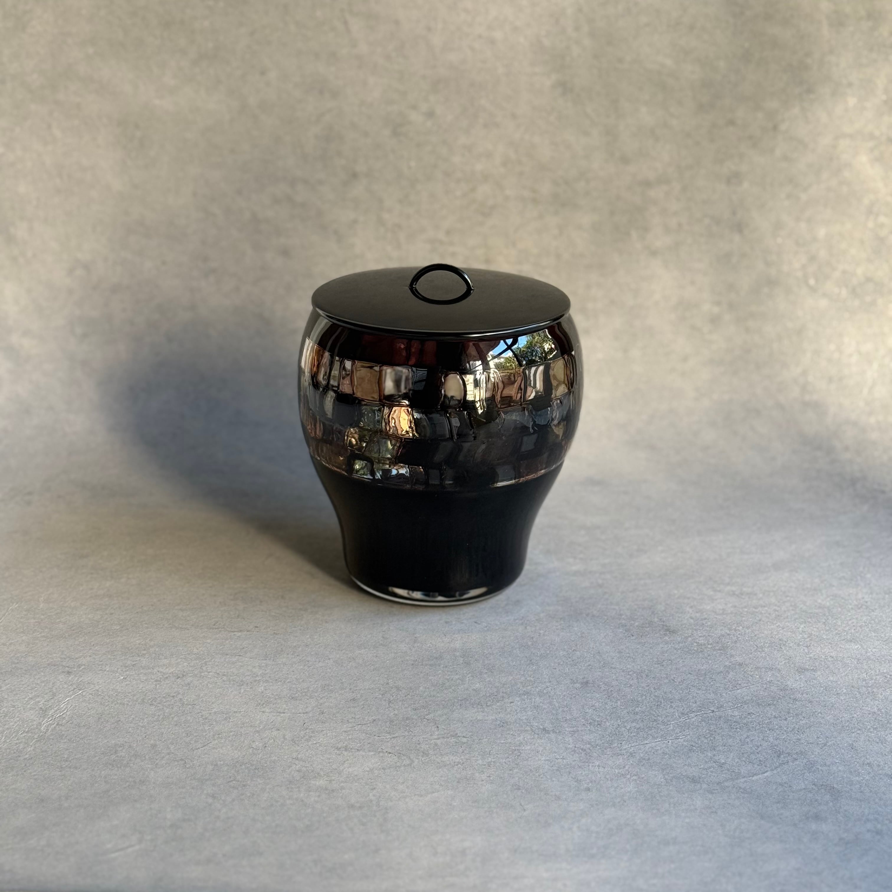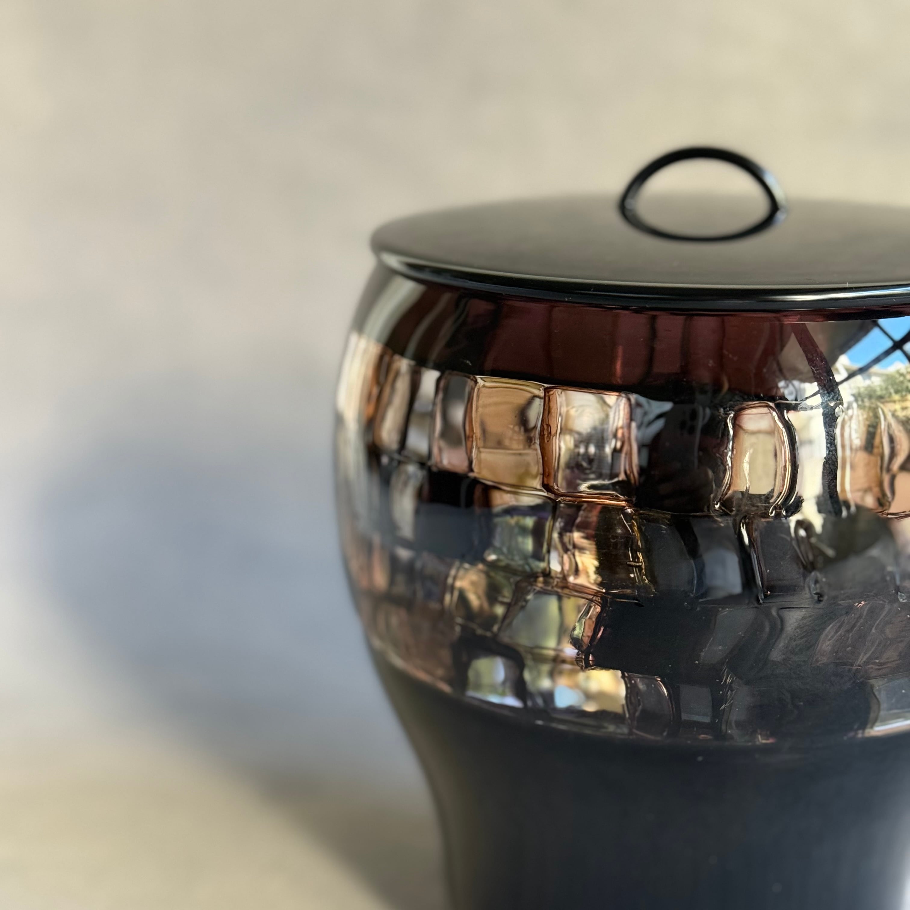 一つ一つの小さなパーツを組み合わせて作られる芸術的で絵画のようなモザイクガラスの煌めき、宙吹きならではの揺らぎや柔らかなフォルム、みずのみささんの作品からは細やかな感性が溢れています。光と影や色の重なりが連続模様を際立たせ奥行きを感じる懐の深い器です。