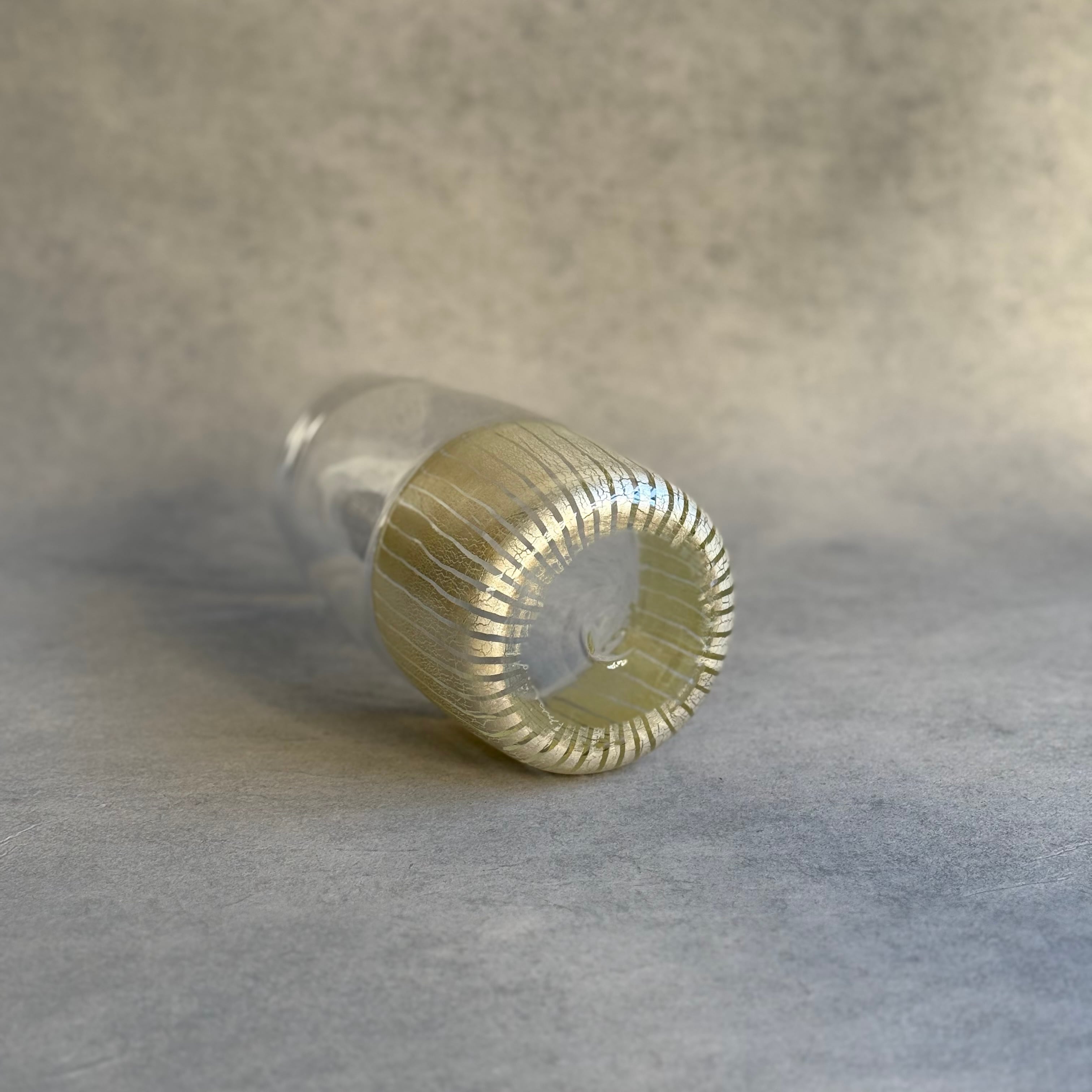 一つ一つの小さなパーツを組み合わせて作られる芸術的で絵画のようなモザイクガラスの煌めき、宙吹きならではの揺らぎや柔らかなフォルム、みずのみささんの作品からは細やかな感性が溢れています。光と影や色の重なりが連続模様を際立たせ奥行きを感じる懐の深い器です。