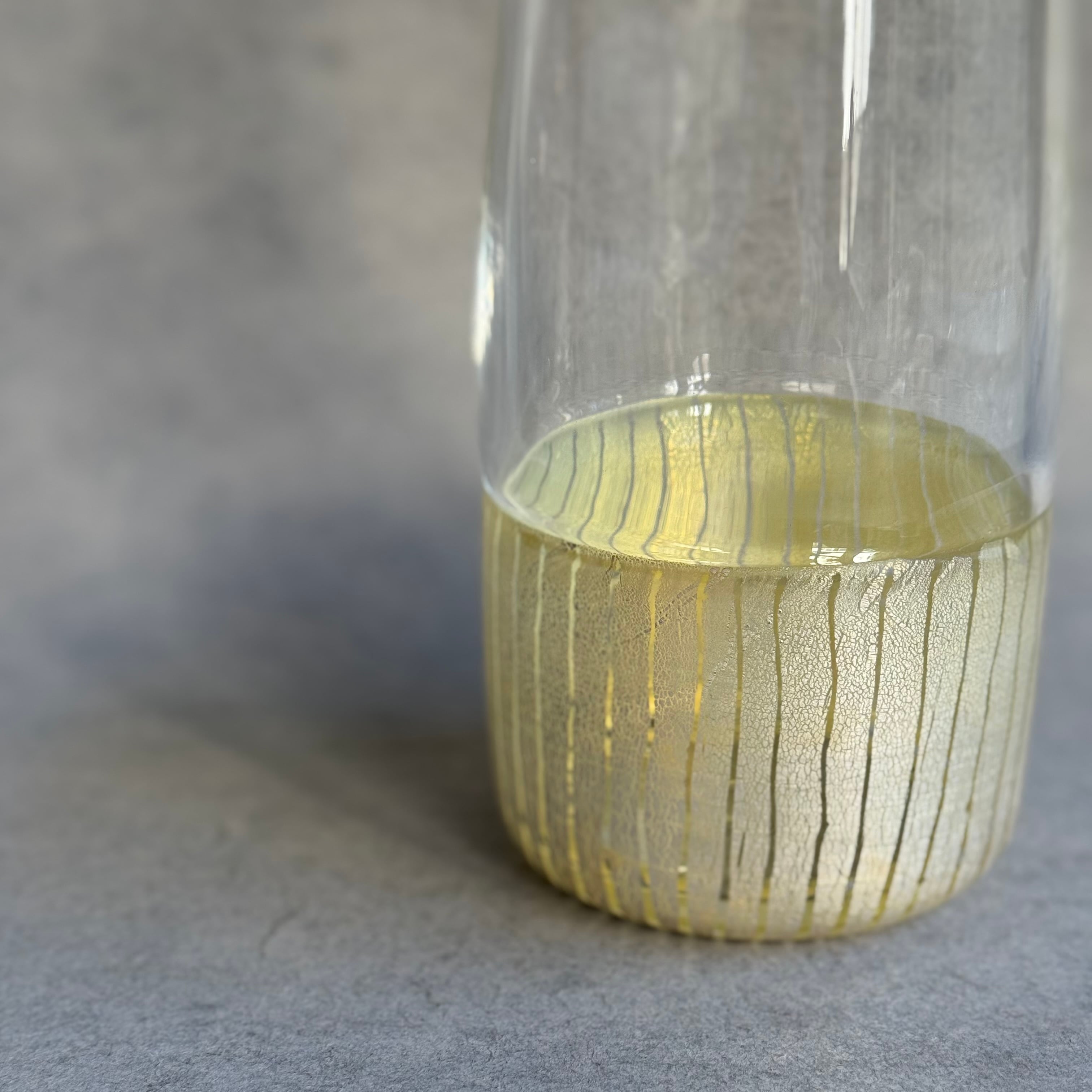 the shimmering and soft form of air-blown glass, and the detailed sensitivity of Mizunomisa's work overflows. The overlapping of light, shadow, and color accentuate the continuous pattern, creating a deep sense of depth.