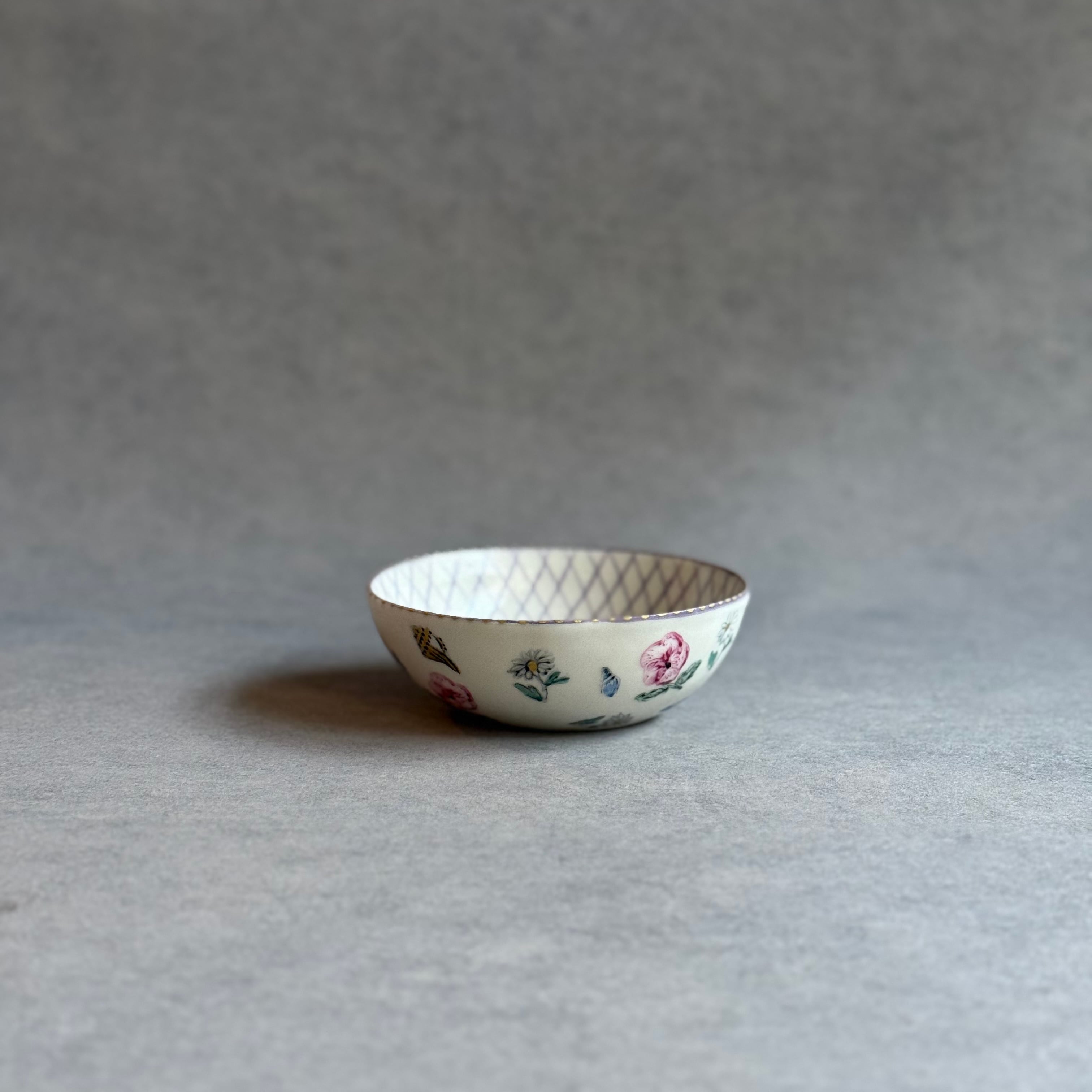 色彩豊かな印判や手描きの絵付けを施した、温もりあふれる器を制作されるつちやまりさん。