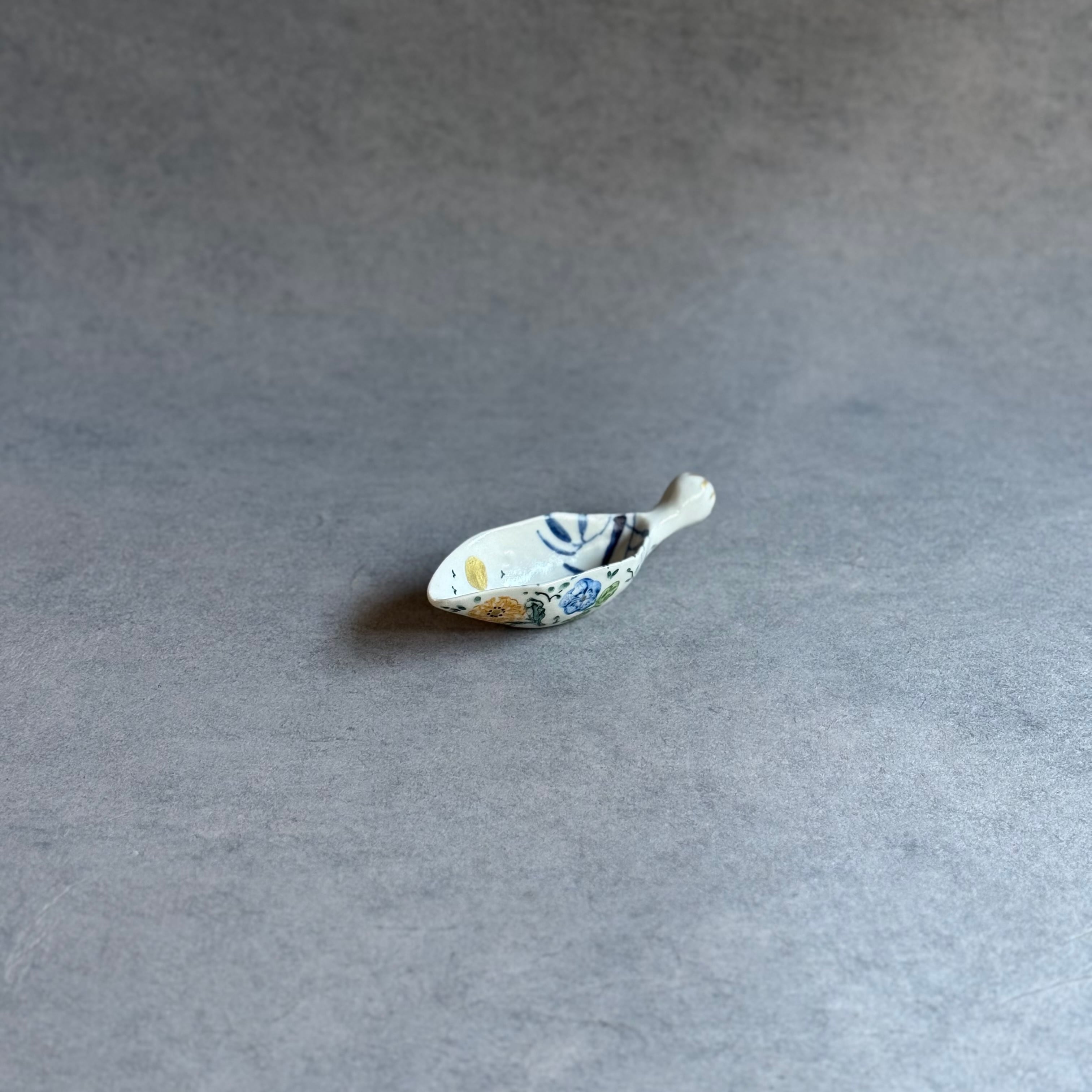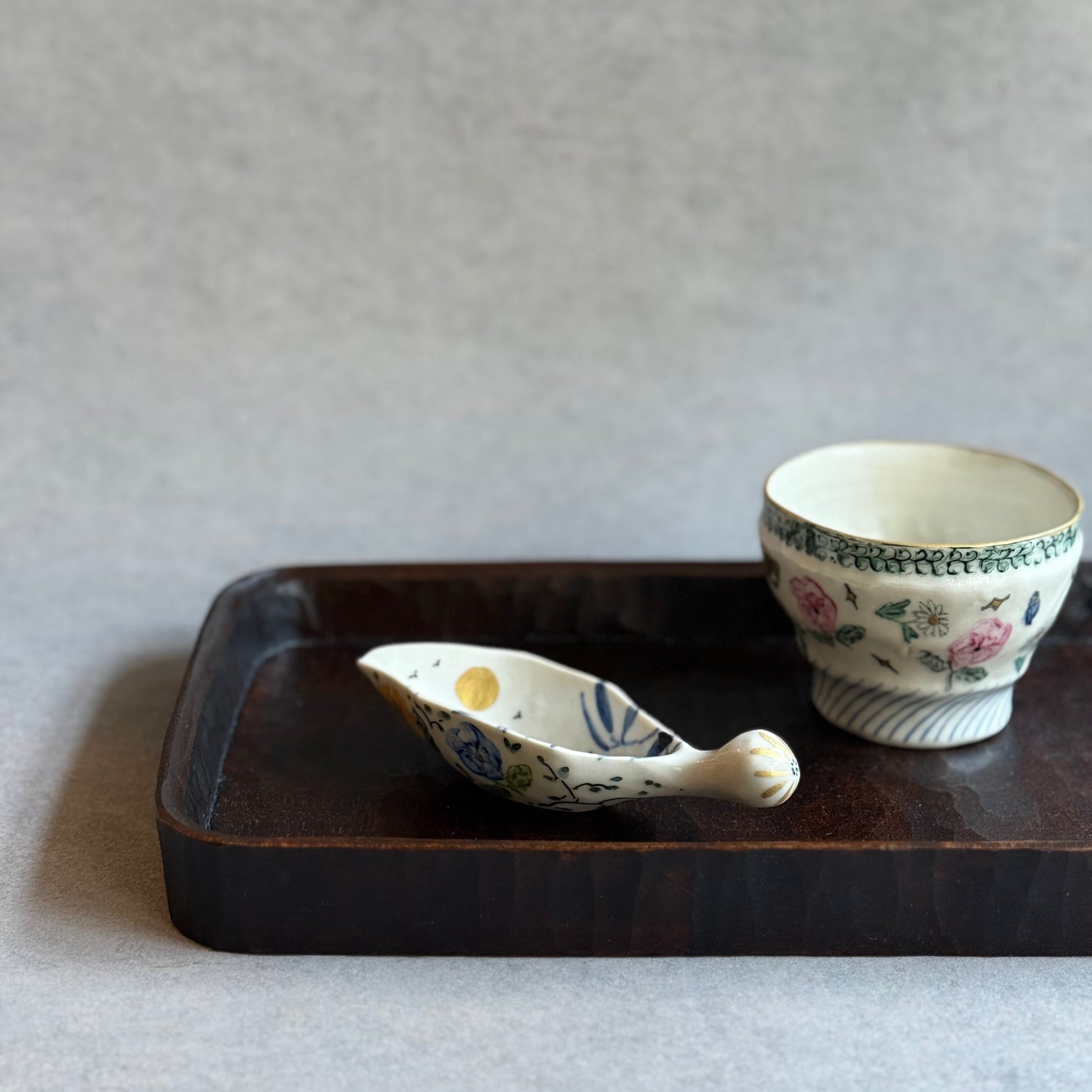 色彩豊かな印判や手描きの絵付けを施した、温もりあふれる器を制作されるつちやまりさん。