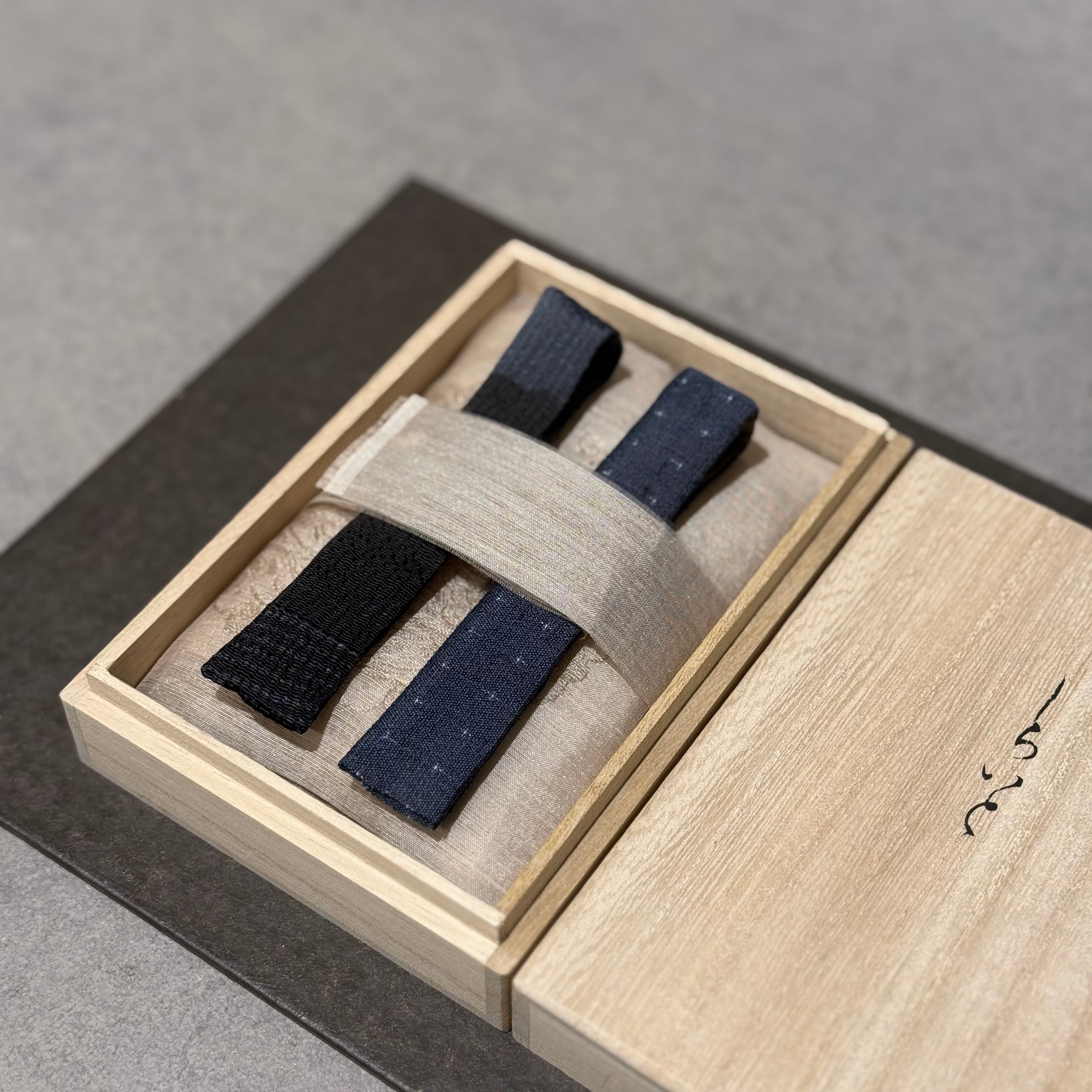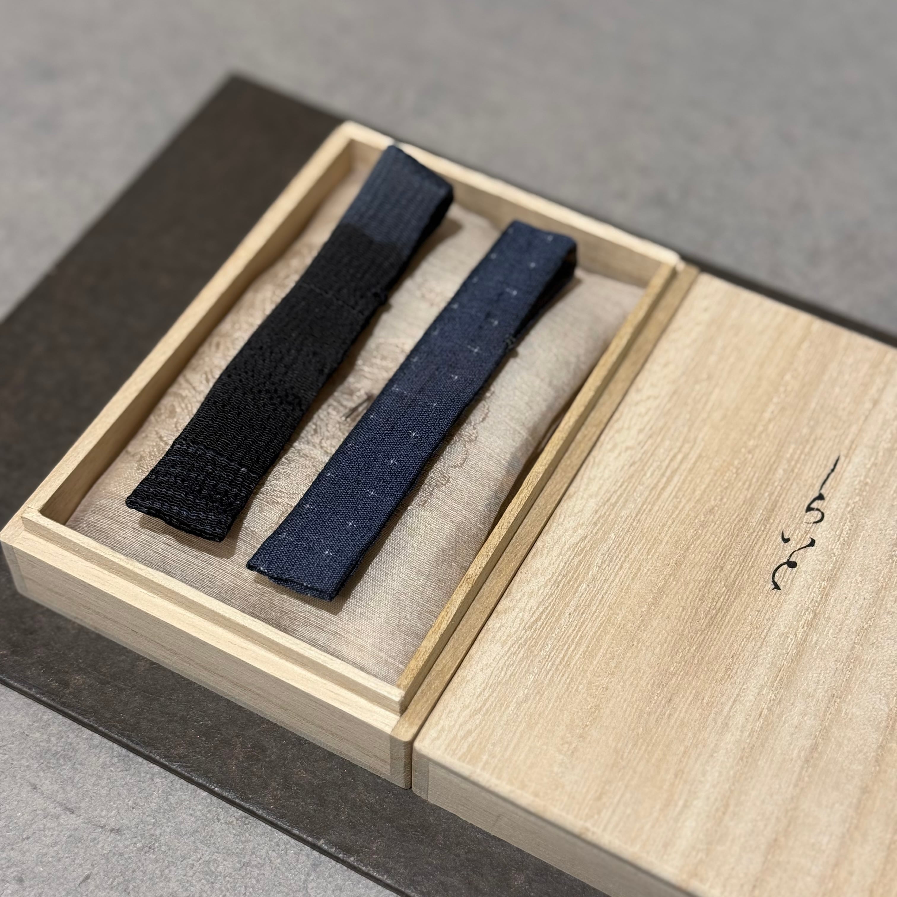 端正な姿のお仕覆は茶道具を包むだけでなく、美しい所作に宿るお茶の心を思い出させてくれます。茶道具と布、組紐の合わせに吟味を重ねぴたりと収まる姿は、宮﨑千佐子さんならではの丁寧なお仕事ぶりが伺えます。