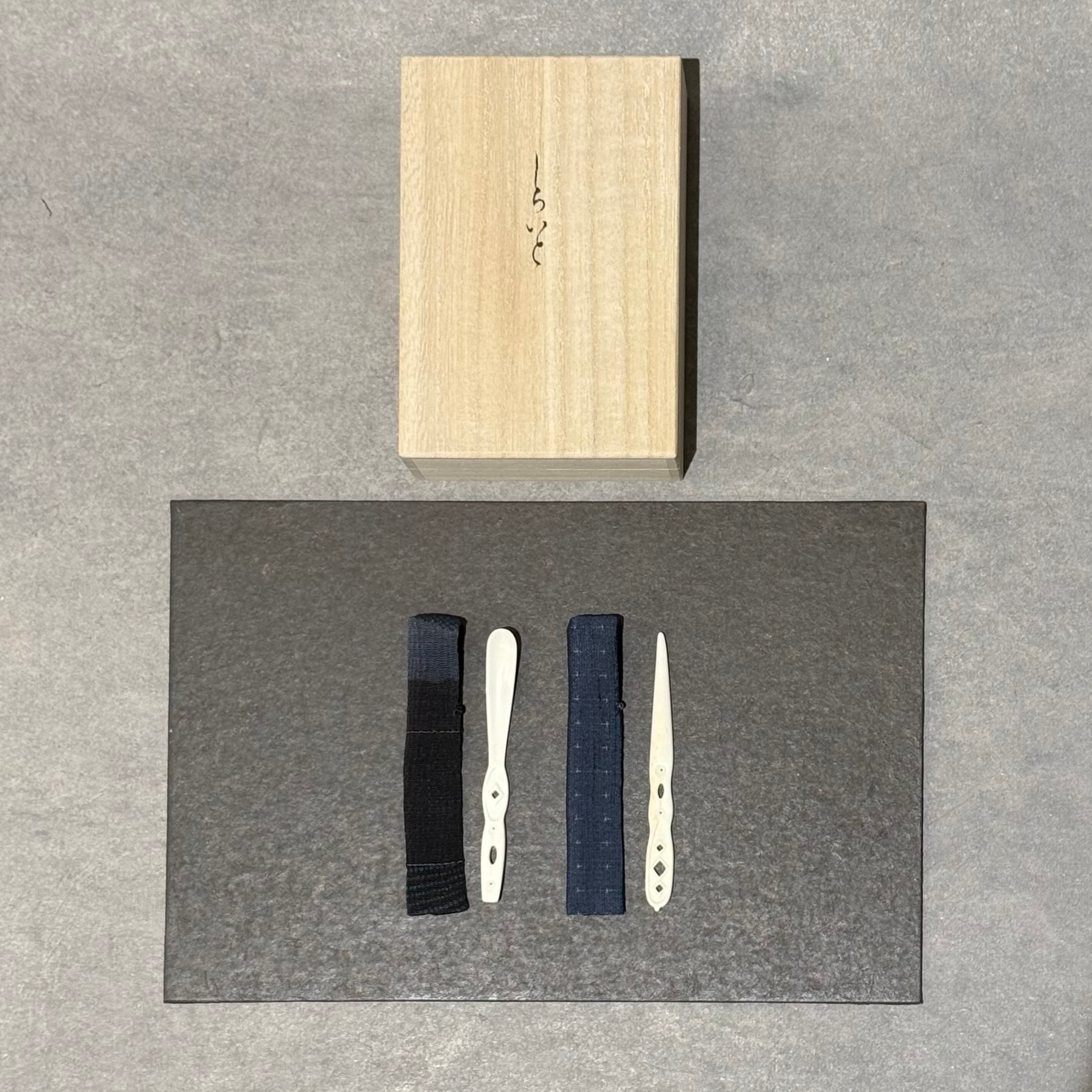 白糸刺繍をモチーフにした菓子切りとミニ茶杓のセット