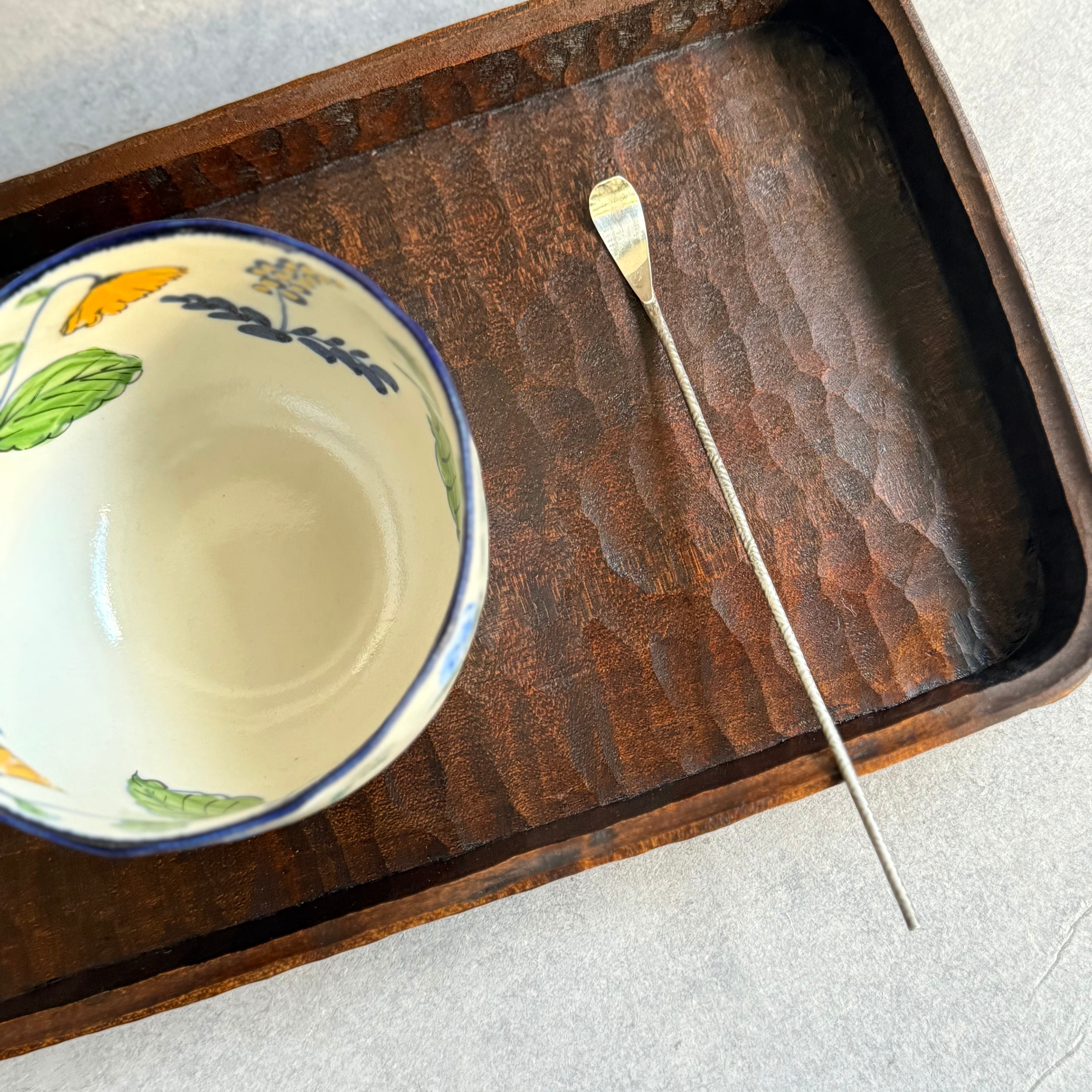 ひとつひとつ丁寧に打ち込まれた点や線、道具を使って丹念にたたくという緻密な作業と時間の重なりにより、異国情緒をも感じる佇まいに目を惹かれます。
