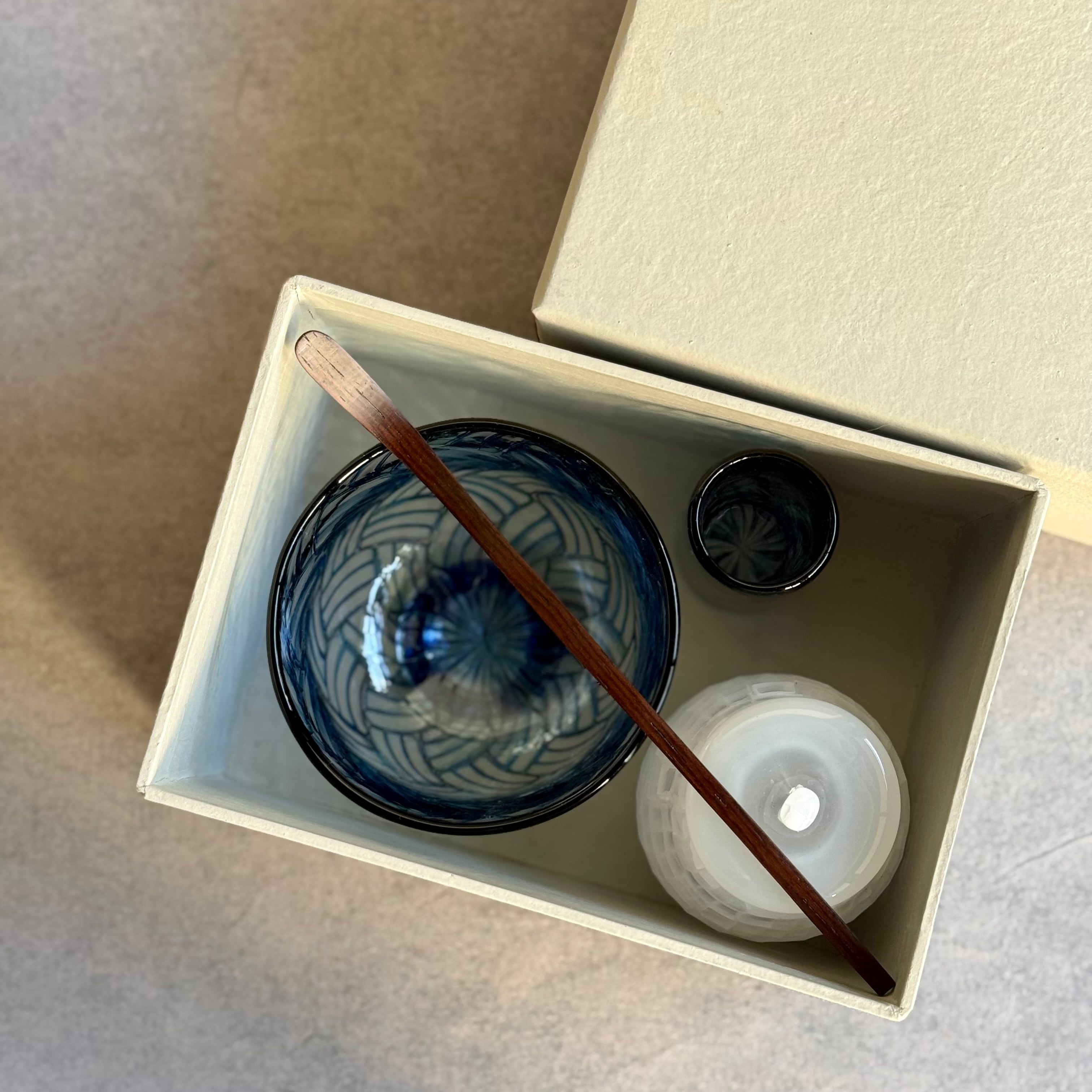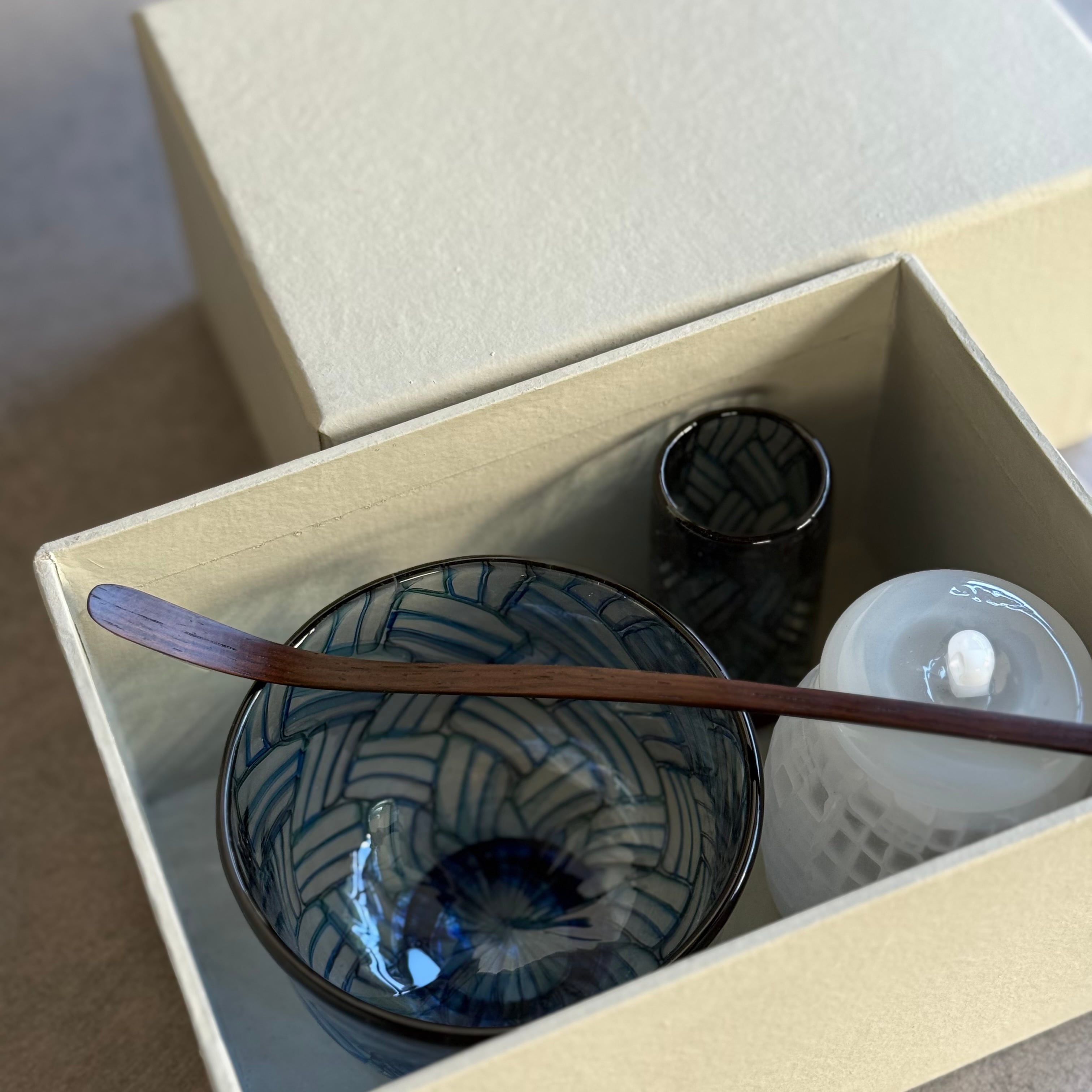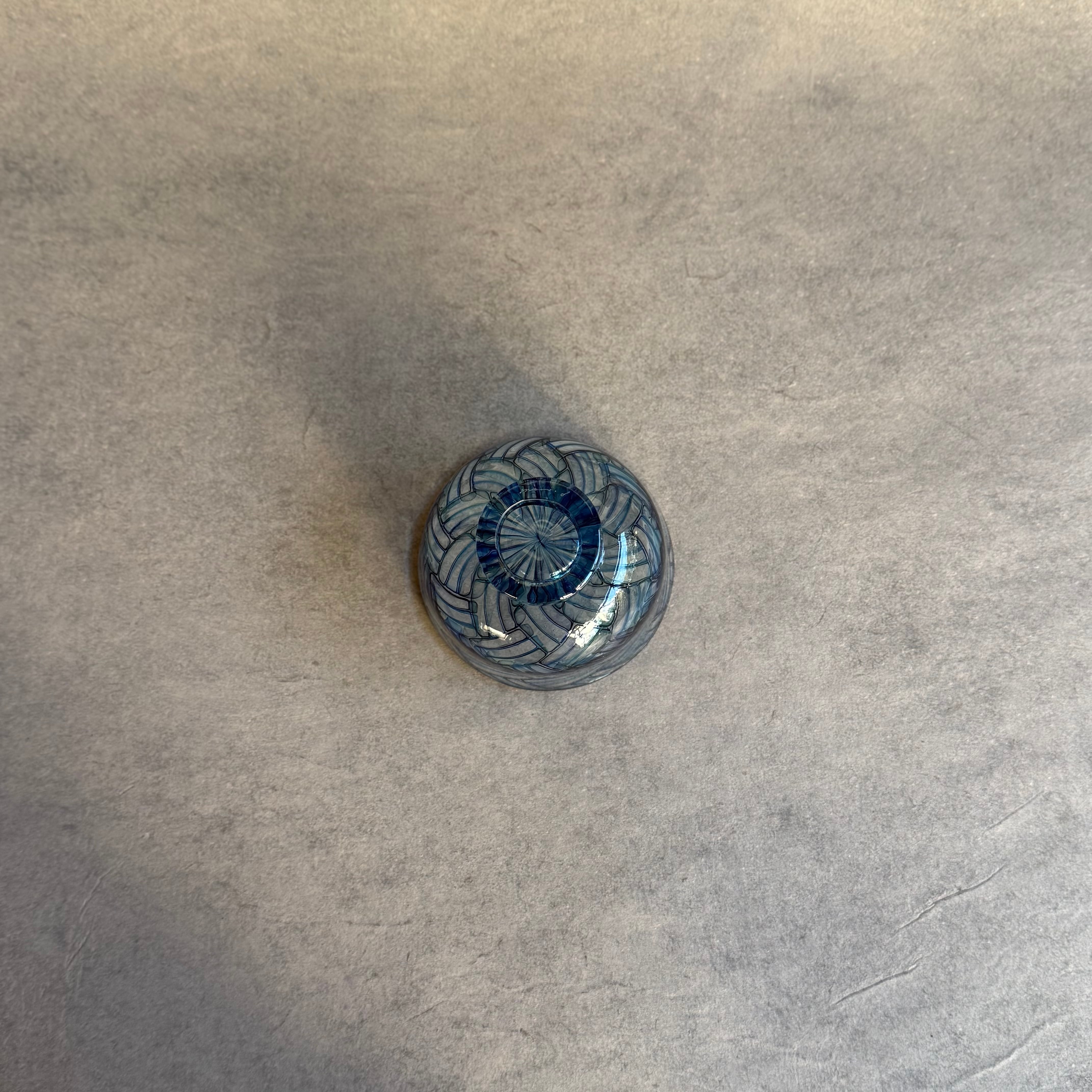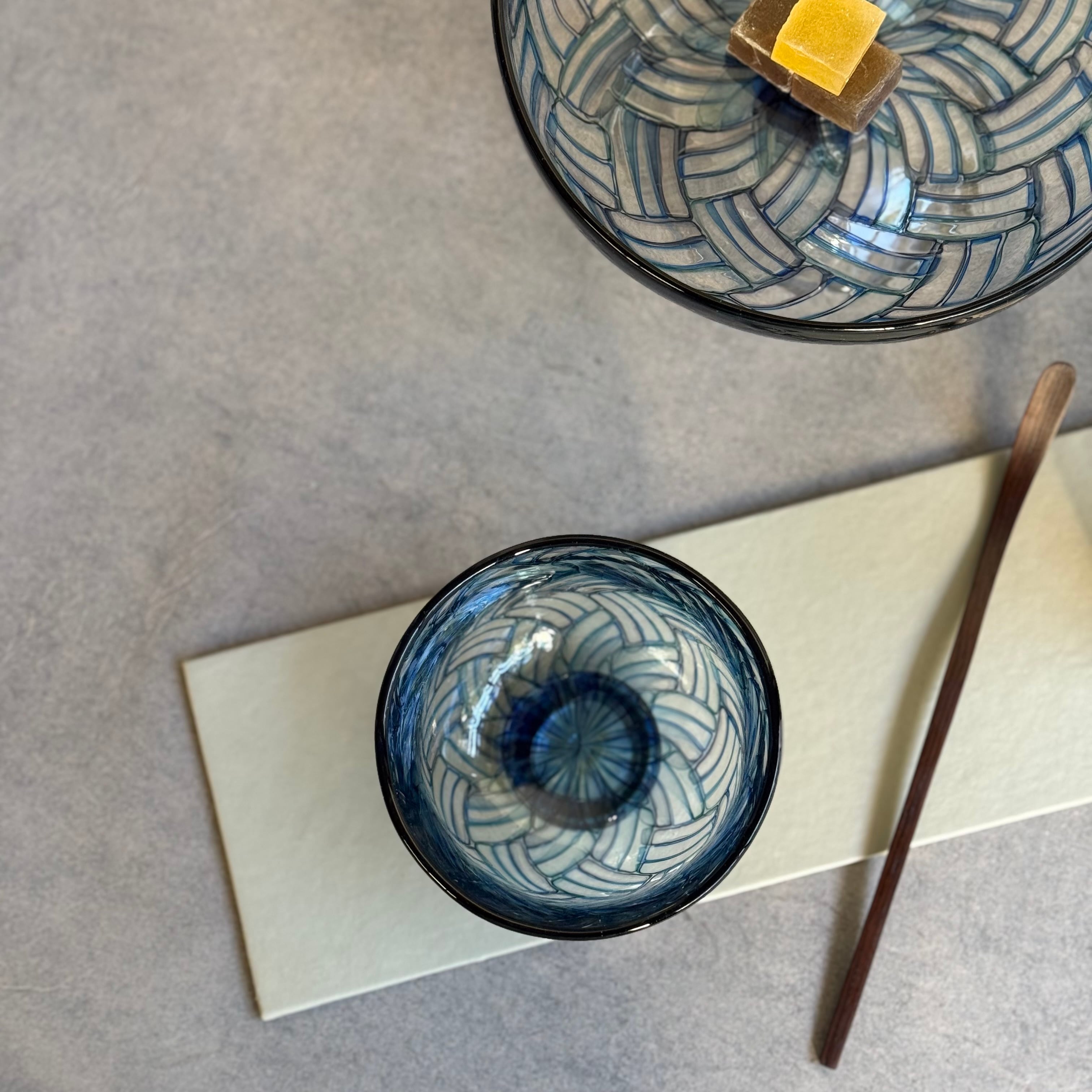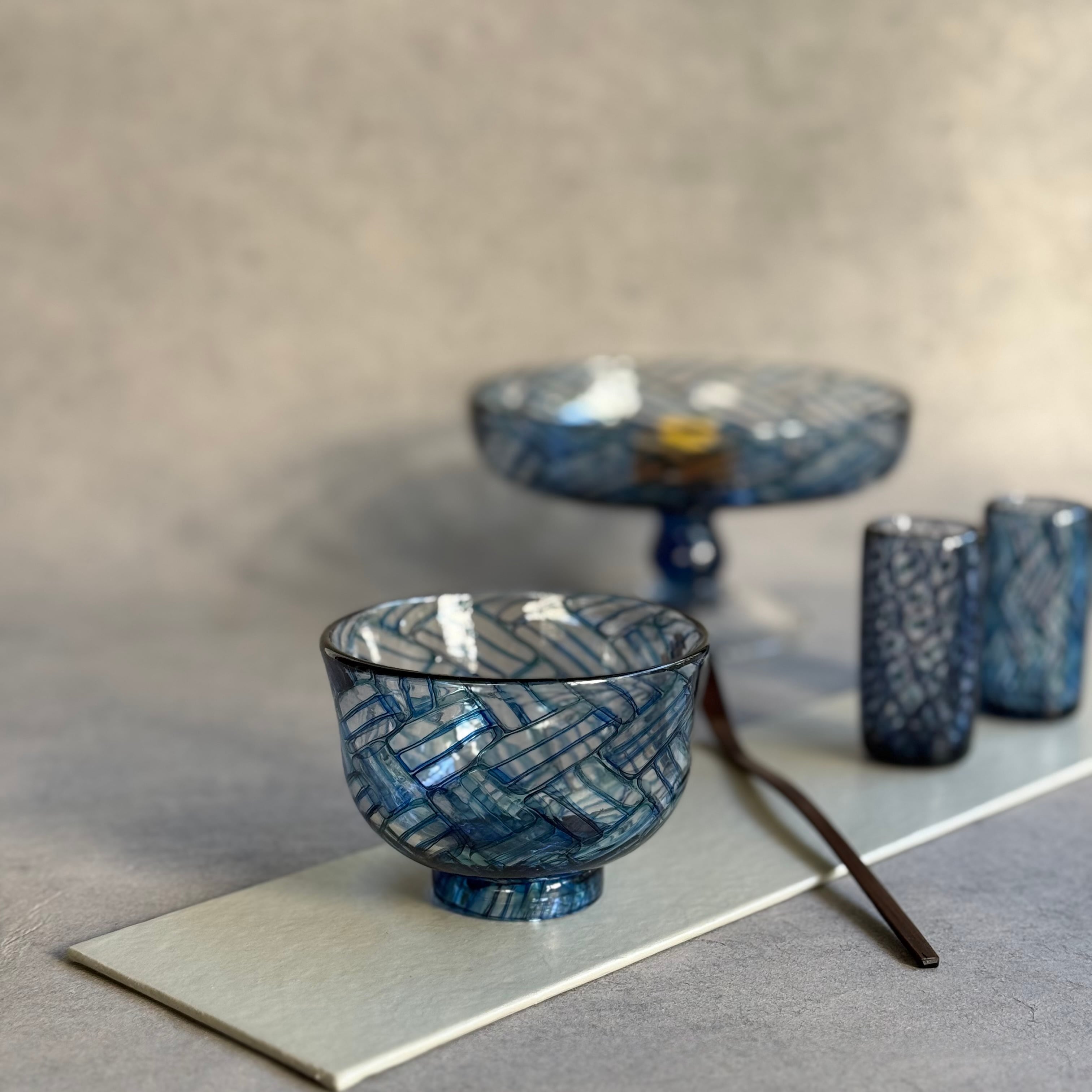 一つ一つの小さなパーツを組み合わせて作られる芸術的で絵画のようなモザイクガラスの煌めき、宙吹きならではの揺らぎや柔らかなフォルム、みずのみささんの作品からは細やかな感性が溢れています。光と影や色の重なりが連続模様を際立たせ奥行きを感じる懐の深い器です。