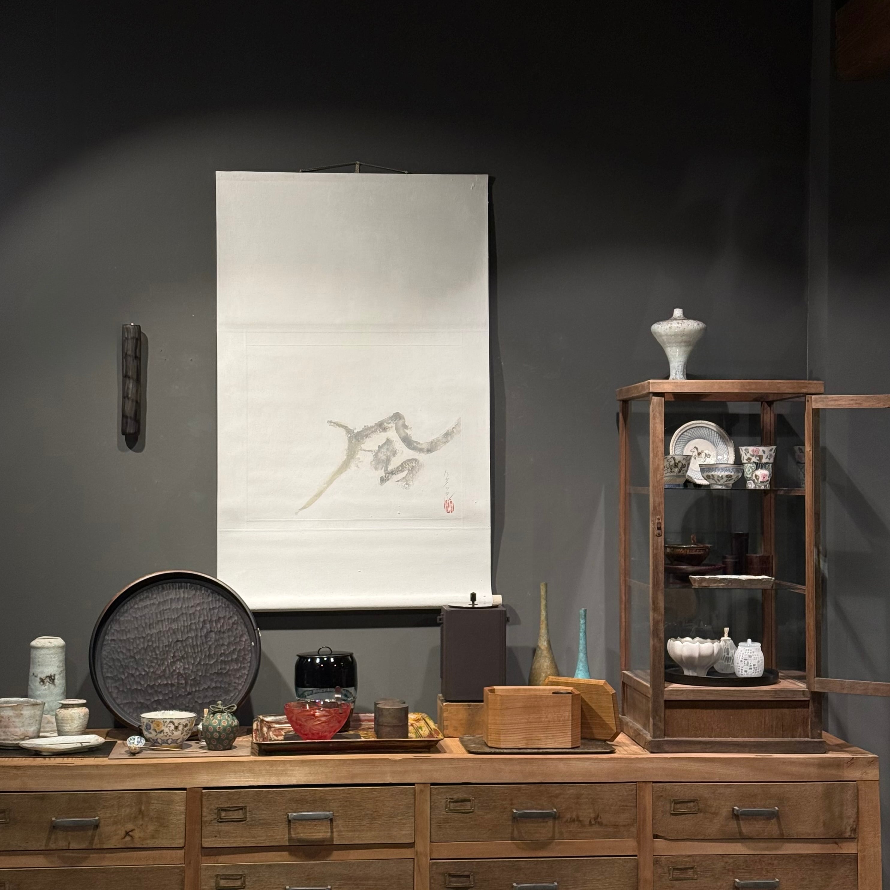 His repertoire ranges from everyday objects that you want to keep close at hand, such as boxes and paving boards, to paintings and calligraphy.