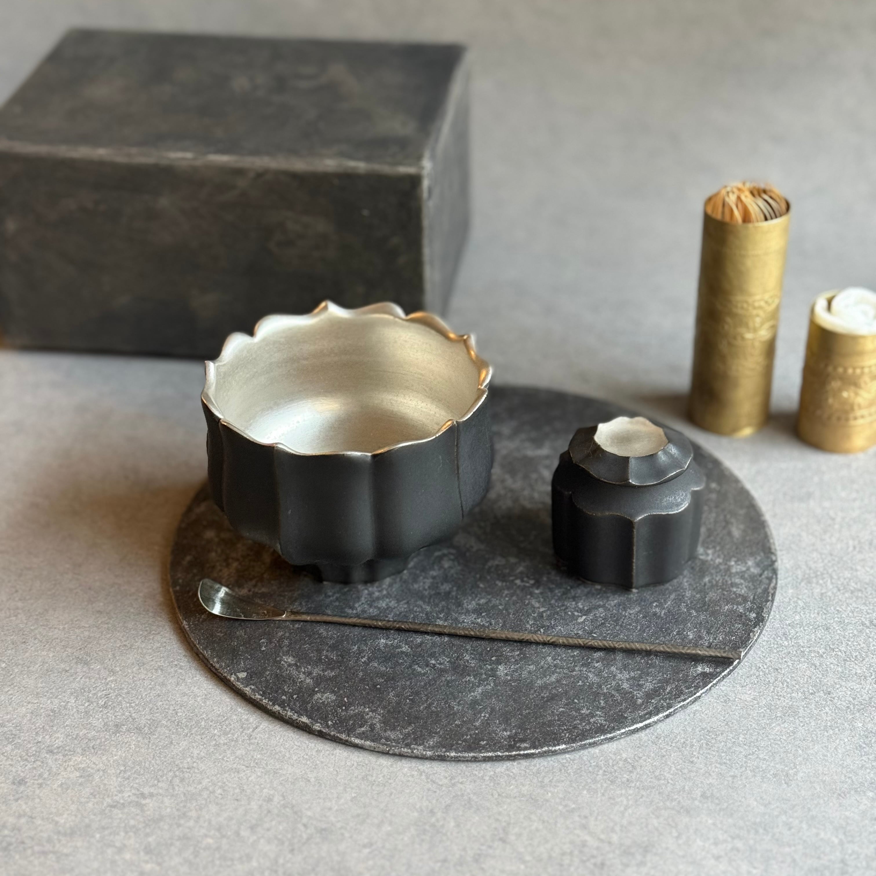 白と黒を基調としたマットな釉薬や華やかな銀彩が心躍るモダンな器は、設えに花を添え、おもてなしにも重宝します。彫刻のように深い陰陽が際立つ優雅なフォルム、可憐な植物を思わせる輪郭は美しさが際立ち、日常をよりエレガントに演出してくれる存在です。
