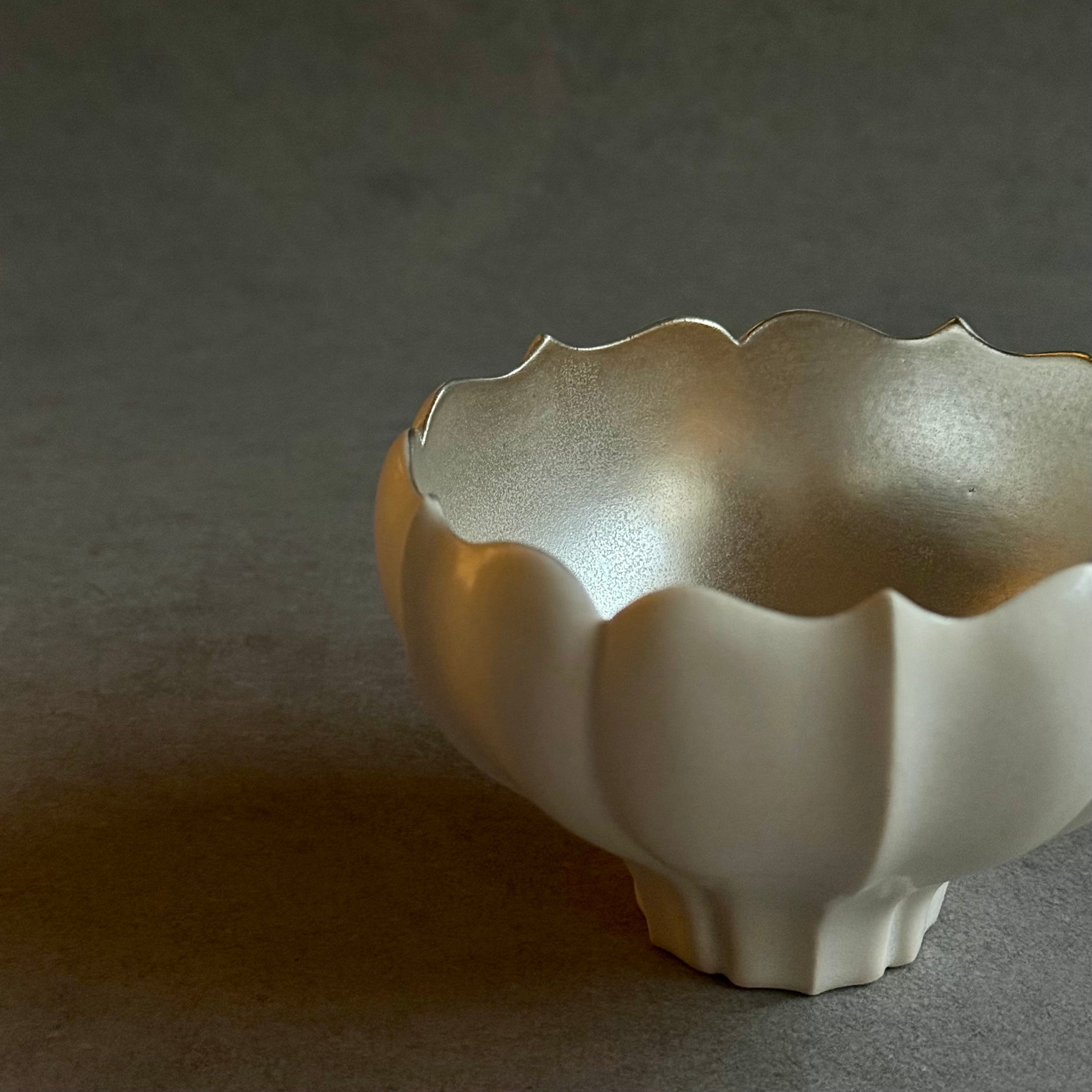 東一仁 白稜花銀彩茶碗 A