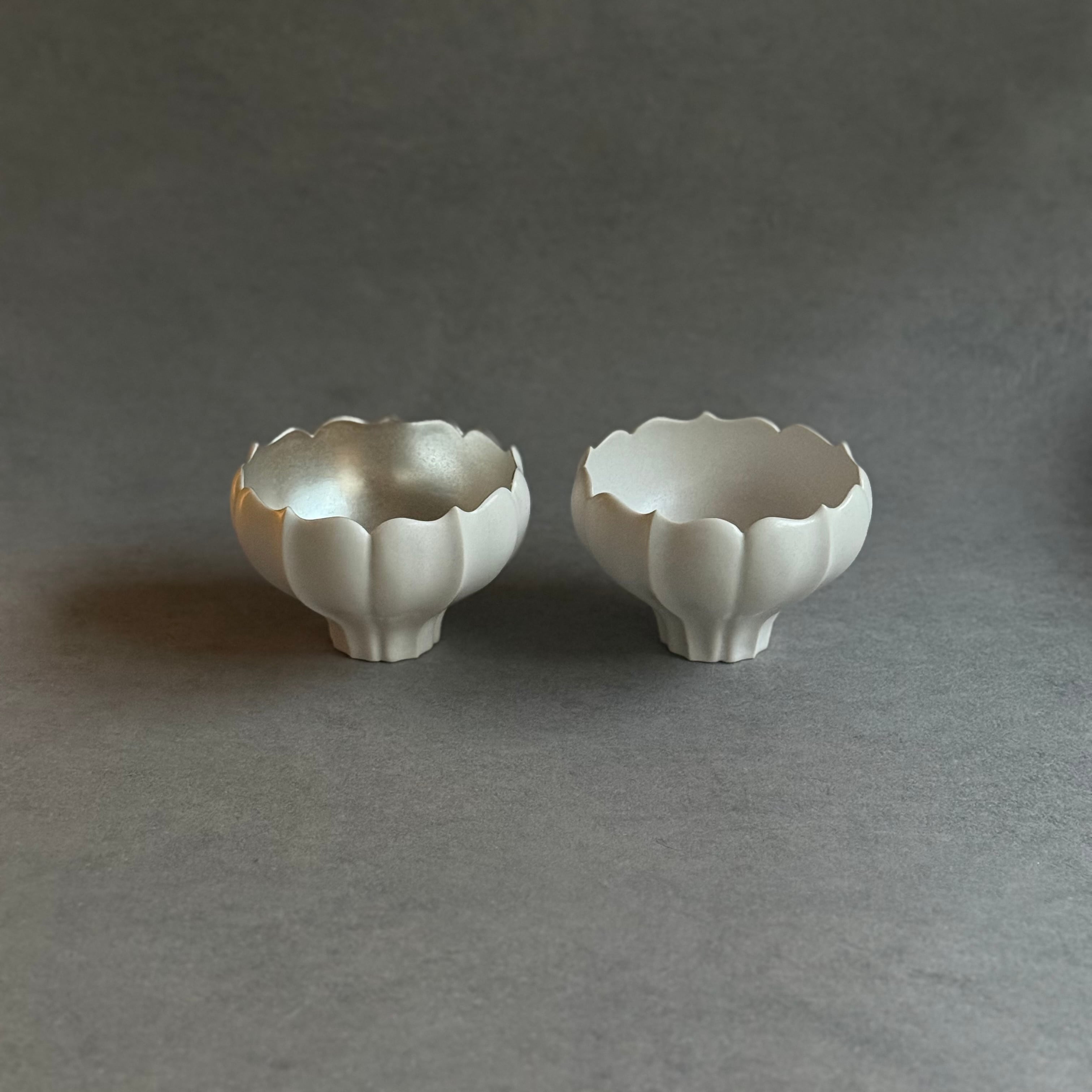 白と黒を基調としたマットな釉薬や華やかな銀彩が心躍るモダンな器は、設えに花を添え、おもてなしにも重宝します。彫刻のように深い陰陽が際立つ優雅なフォルム、可憐な植物を思わせる輪郭は美しさが際立ち、日常をよりエレガントに演出してくれる存在です。