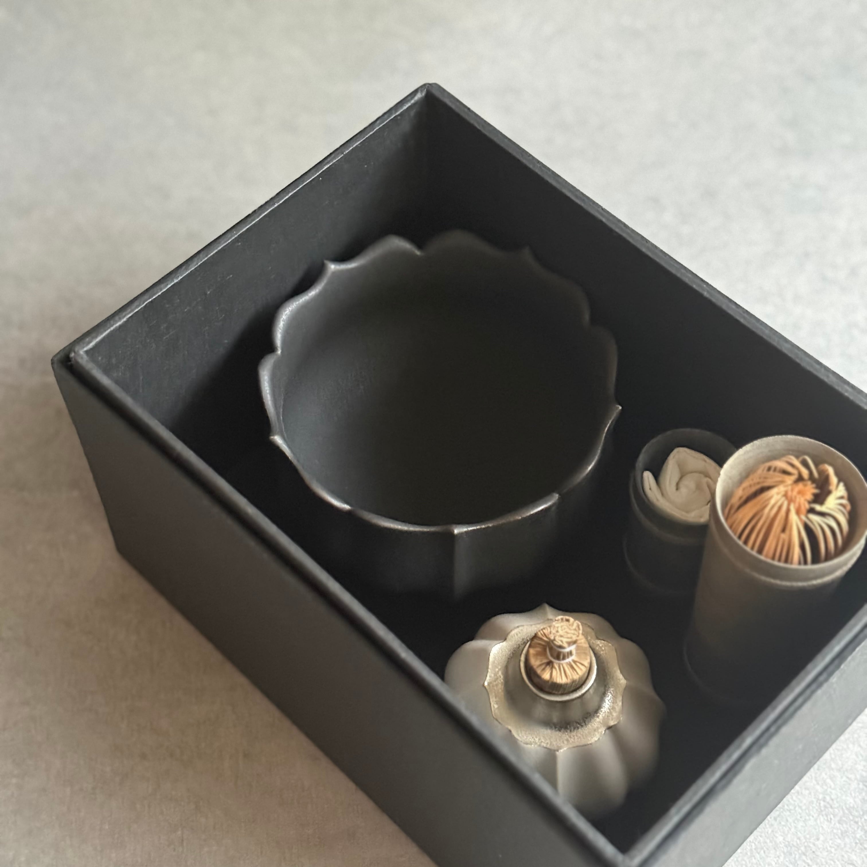 白と黒を基調としたマットな釉薬や華やかな銀彩が心躍るモダンな器は、設えに花を添え、おもてなしにも重宝します。彫刻のように深い陰陽が際立つ優雅なフォルム、可憐な植物を思わせる輪郭は美しさが際立ち、日常をよりエレガントに演出してくれる存在です。