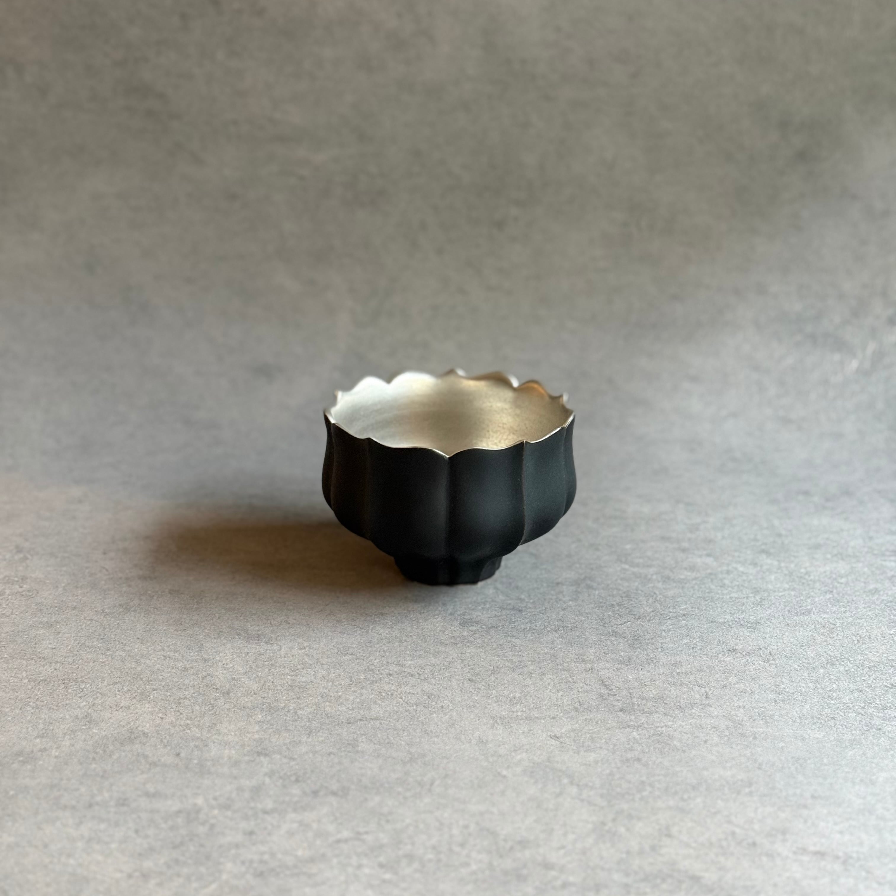 東一仁 黒稜花銀彩茶碗 B