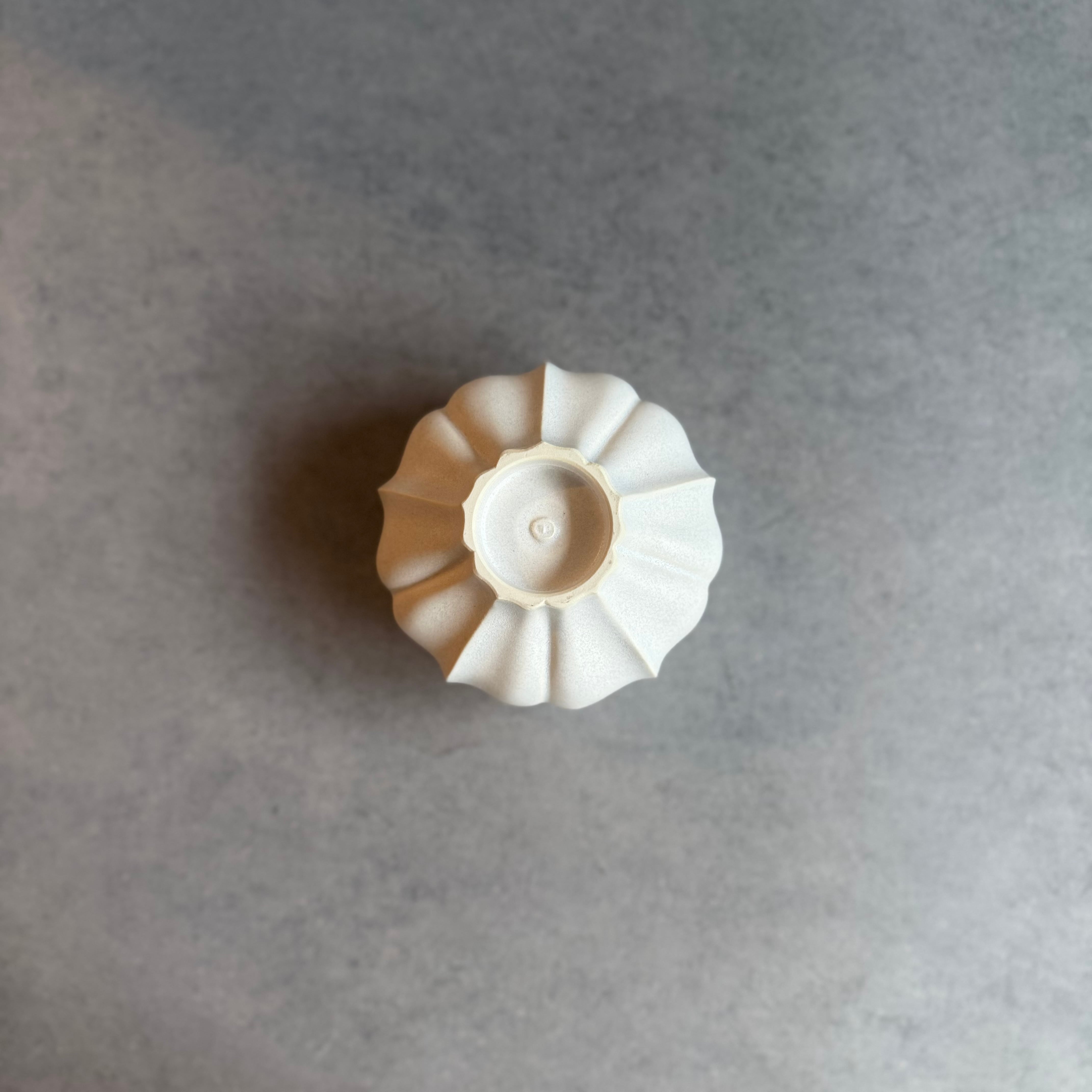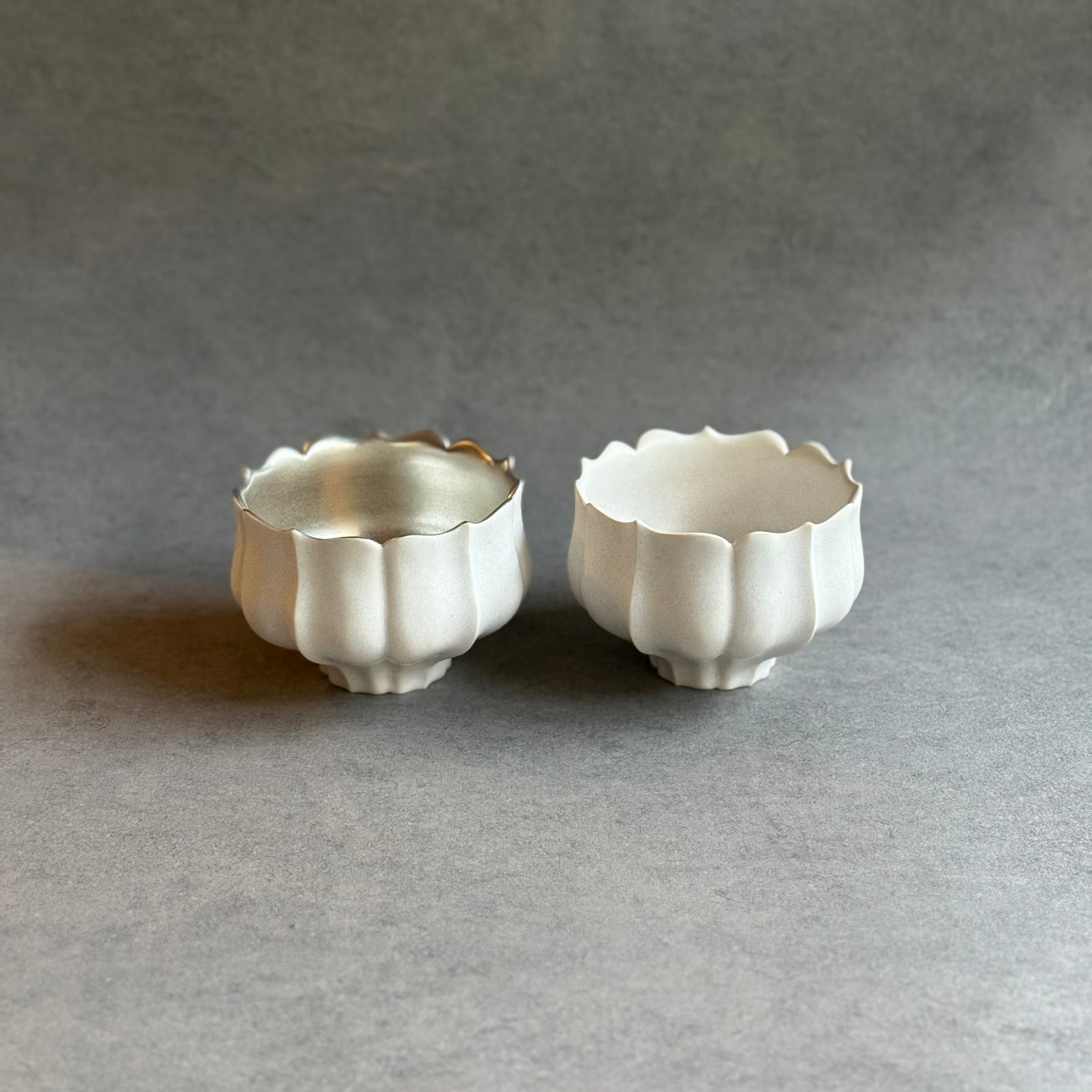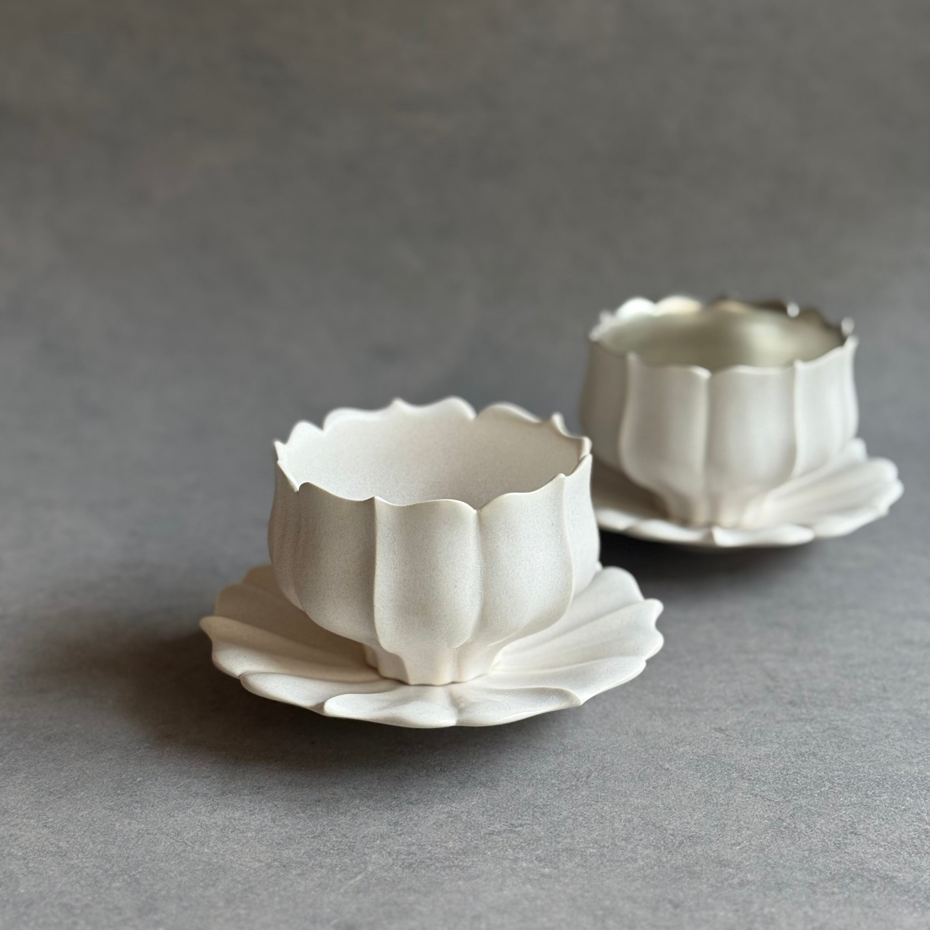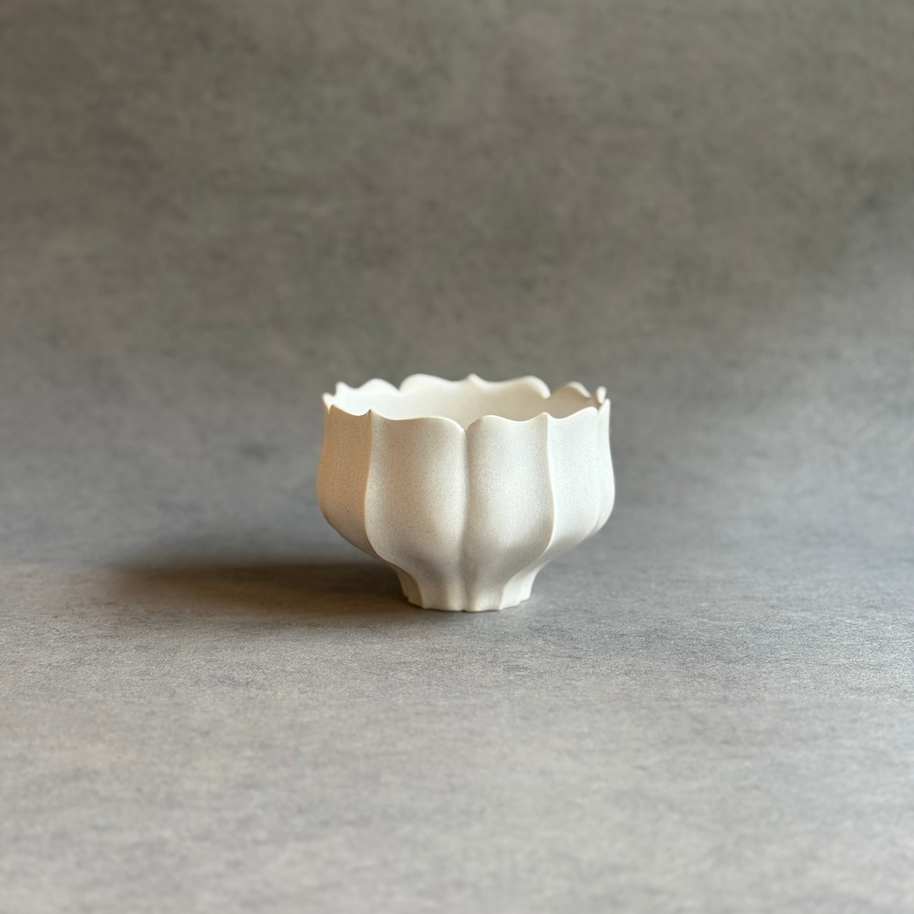白と黒を基調としたマットな釉薬や華やかな銀彩が心躍るモダンな器は、設えに花を添え、おもてなしにも重宝します。彫刻のように深い陰陽が際立つ優雅なフォルム、可憐な植物を思わせる輪郭は美しさが際立ち、日常をよりエレガントに演出してくれる存在です。