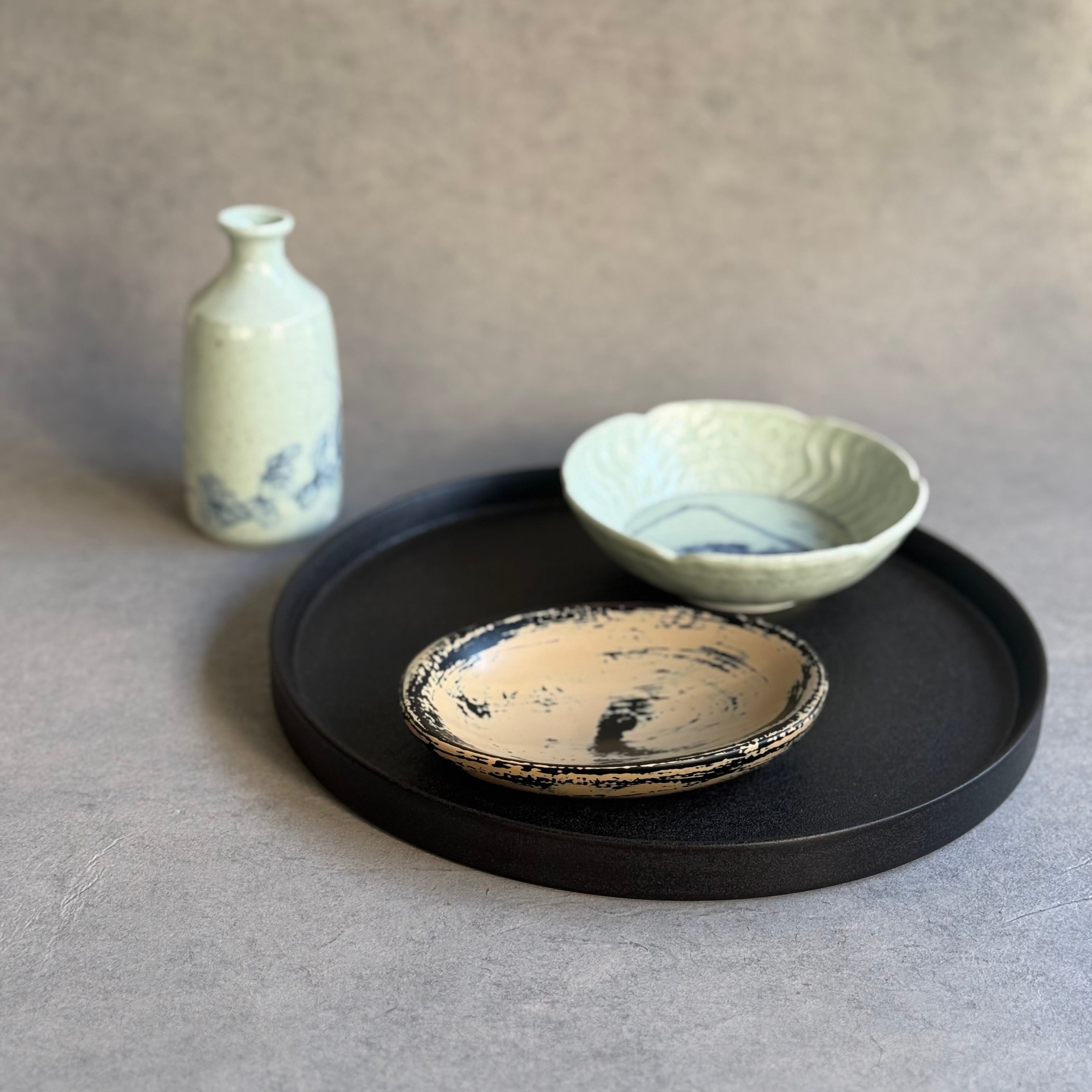 蒔地の技法による漆器は、塗膜が硬く耐久性があり日常使いが出来る頼もしさがあります。