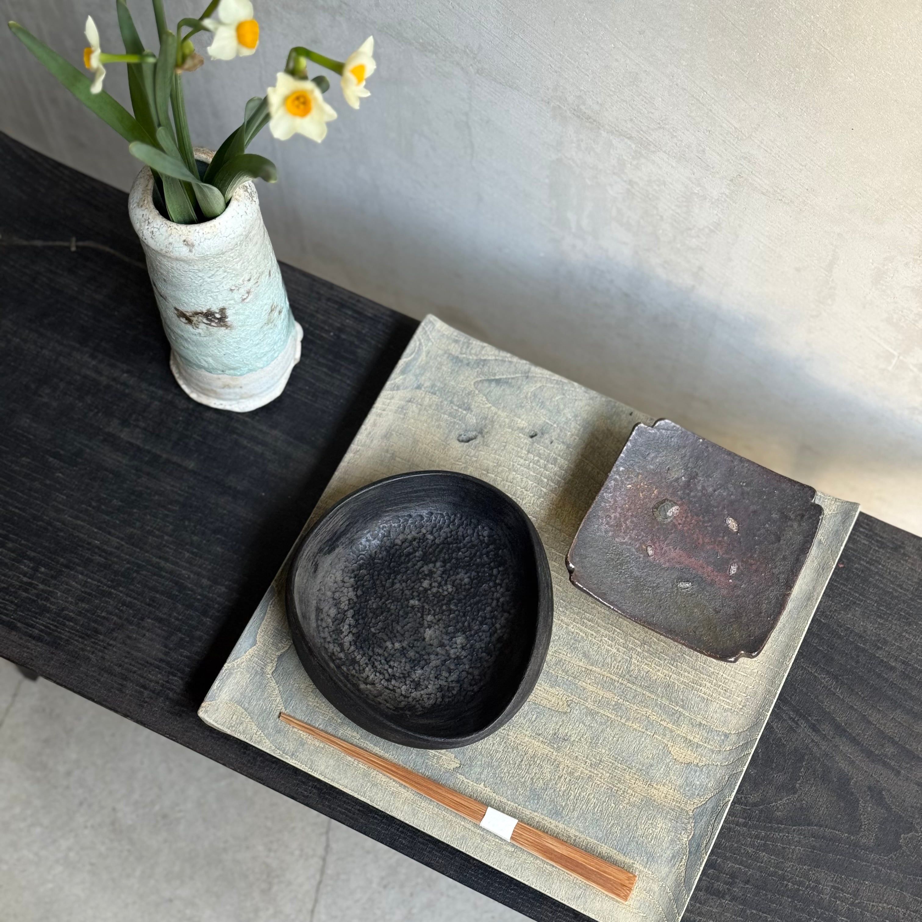 Please enjoy the expressive works created by the soft vessels unique to powder and the coincidence baked in a wood-burning oven.