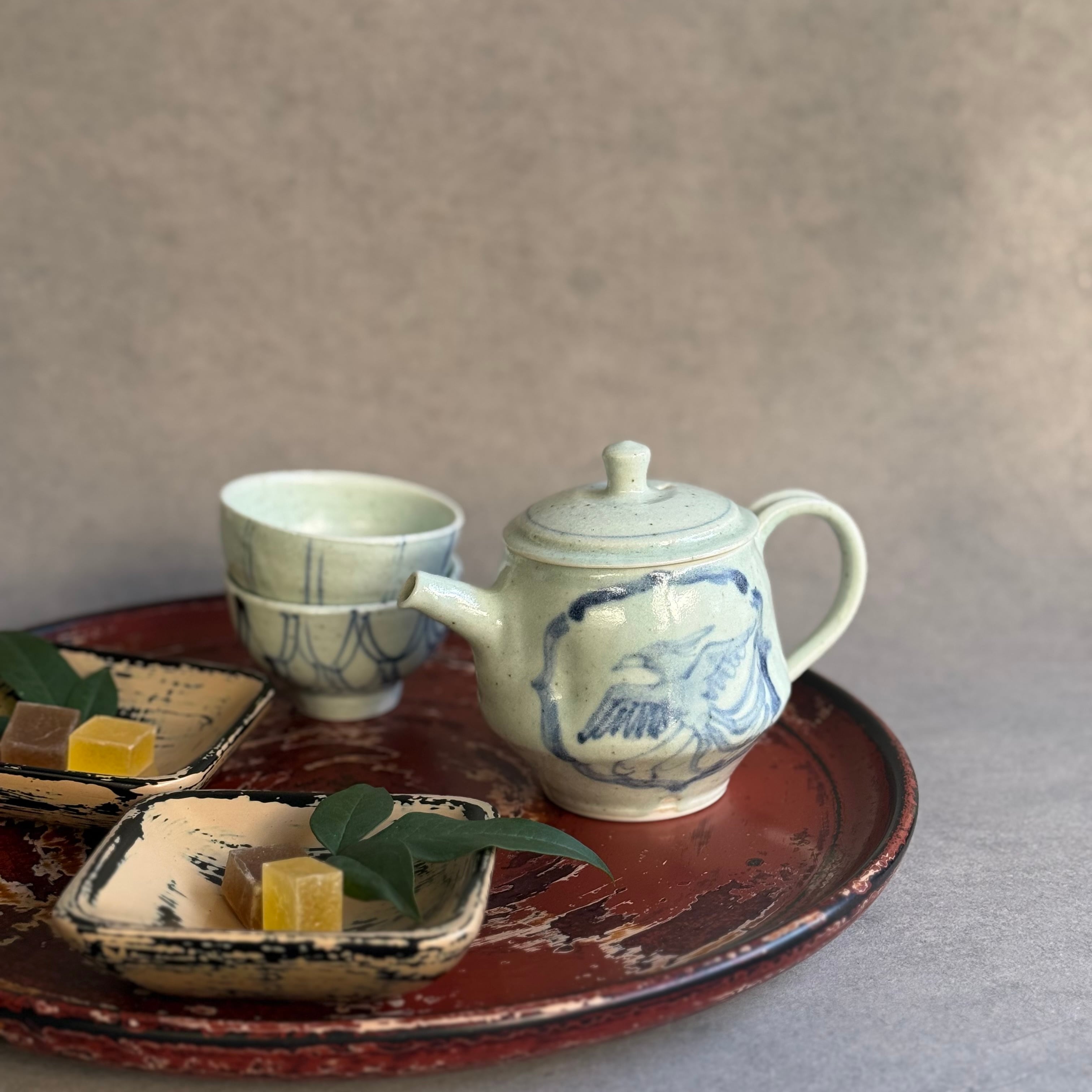 吉田崇昭 染付鳥文後ろ手急須
