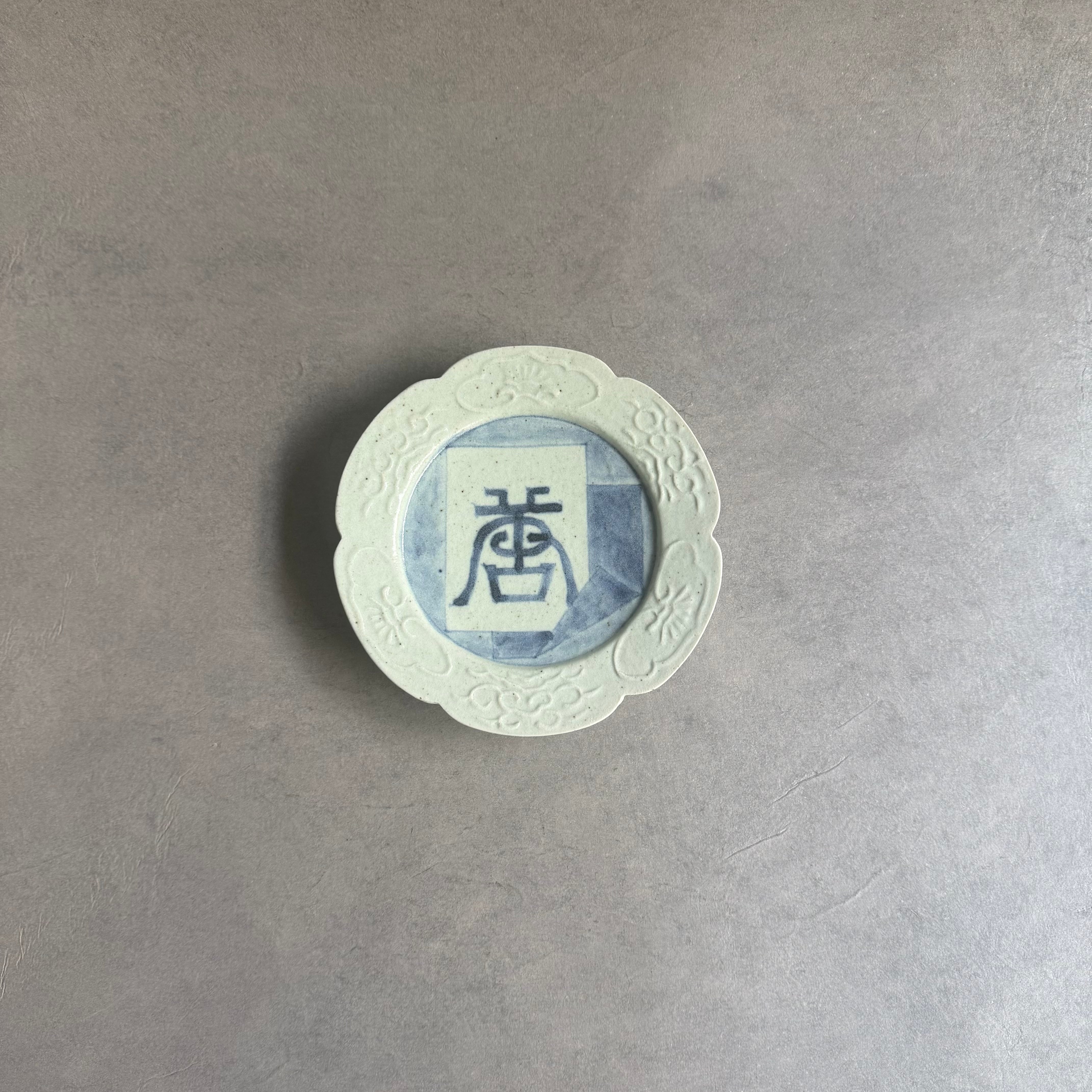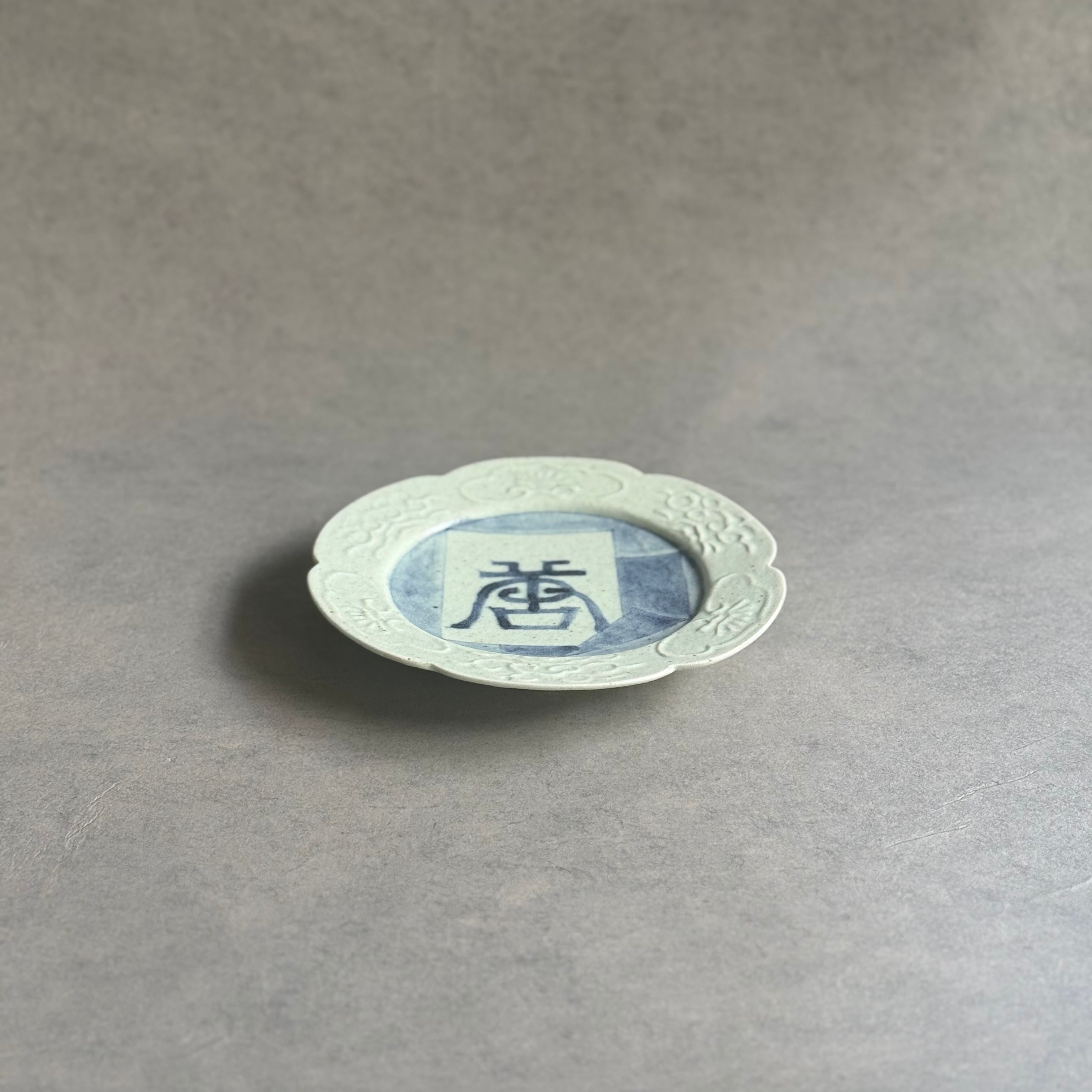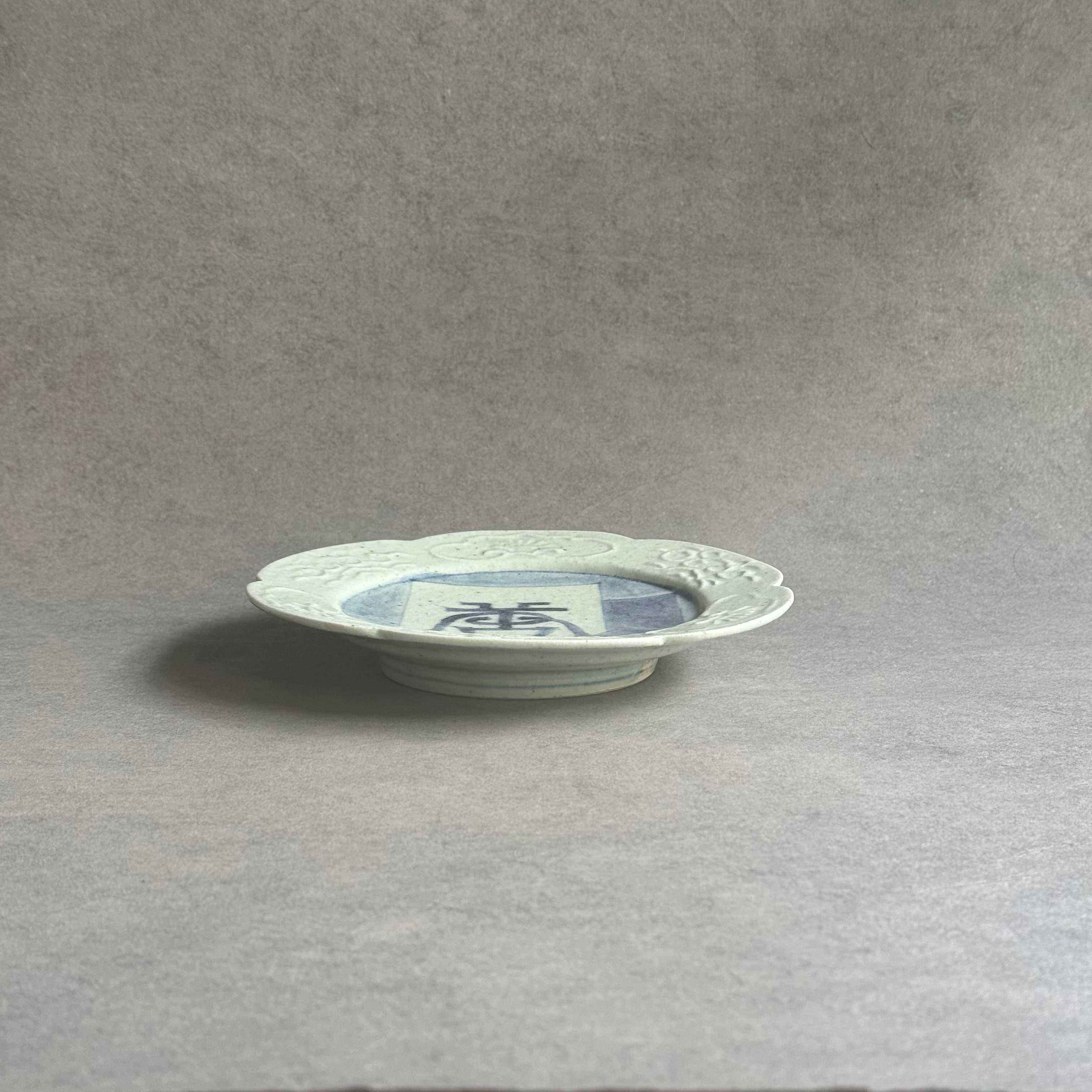 吉田崇昭和 染付花卉陽刻絵替り皿
