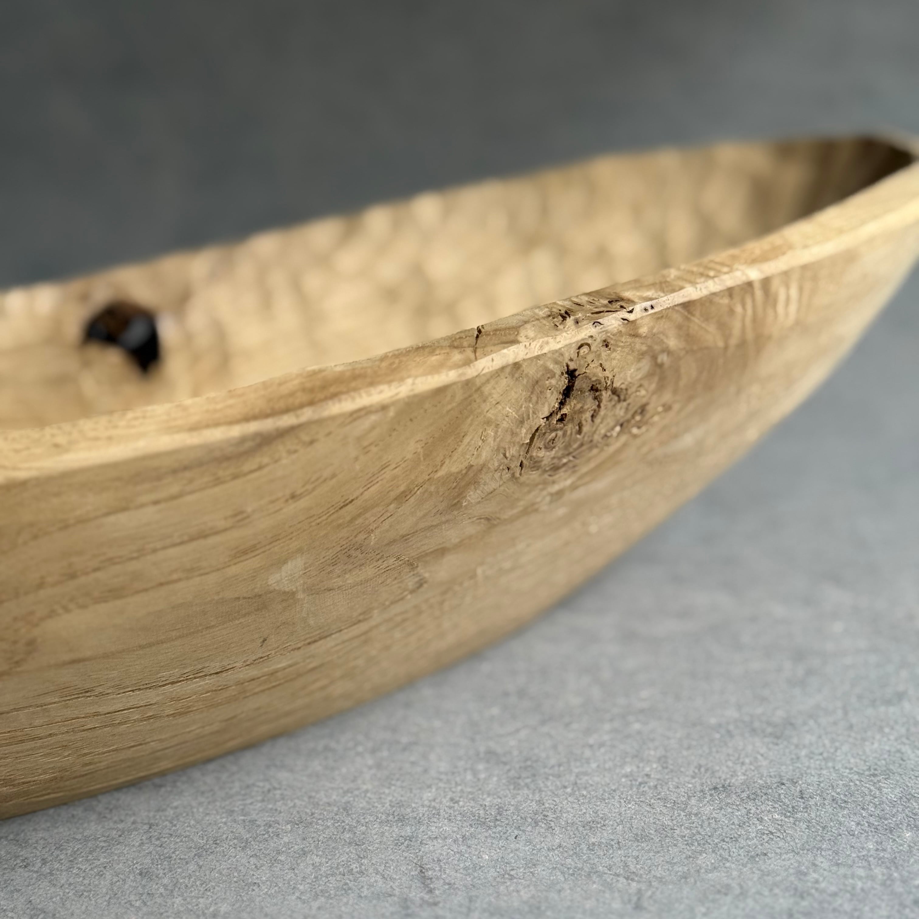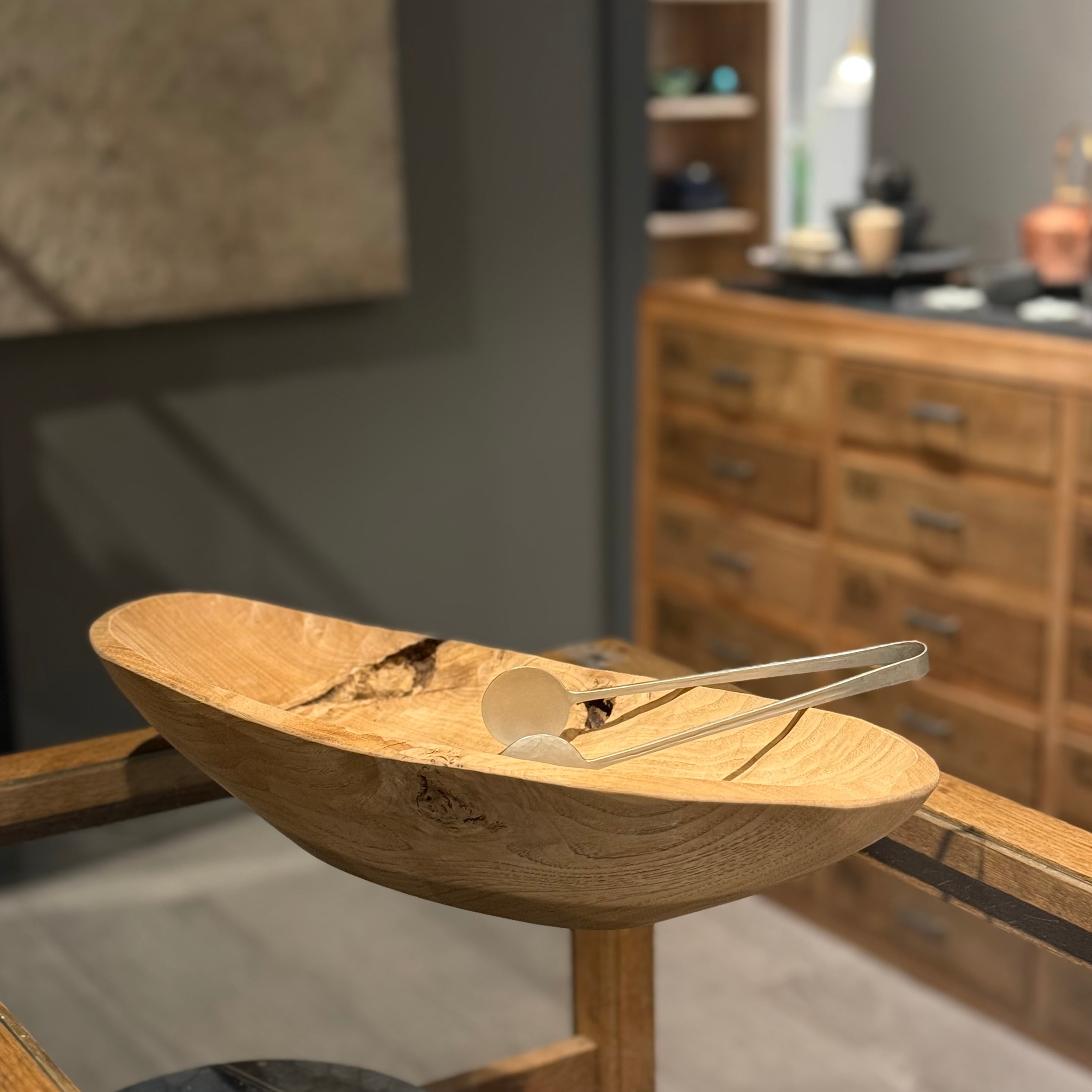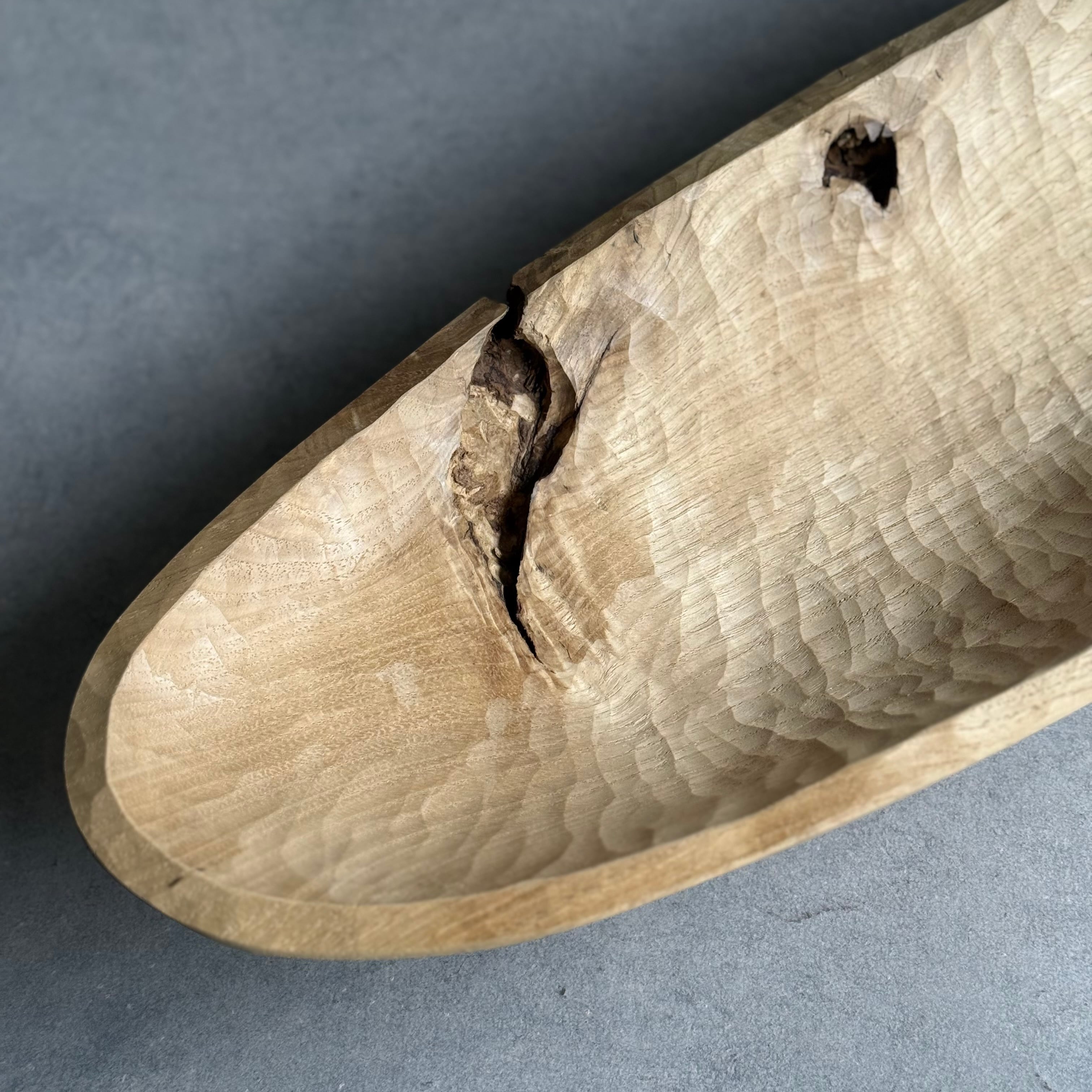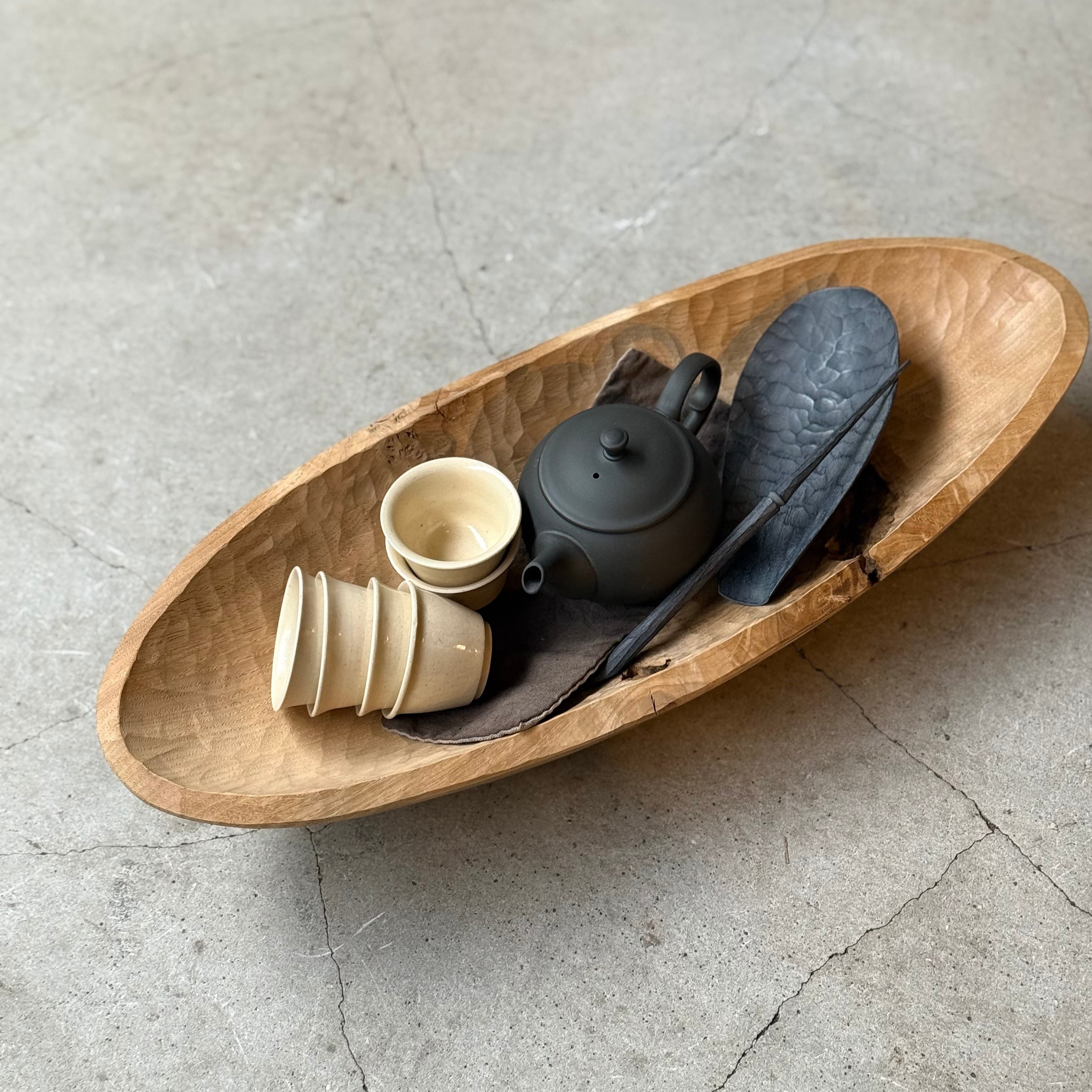 木と漆の質感を大切にしながら日常使いの器やお盆など、木の個性を生かした作品を制作される吉田欣司さん。程よい厚みの手彫りの仕上げは頼もしく、黒漆と白漆を何層にも塗り重ねて磨き上げる事で表れるブルーグレーの色合いはまるで霧を纏ったように柔らかく、使うほどに愛着が湧いてきます。