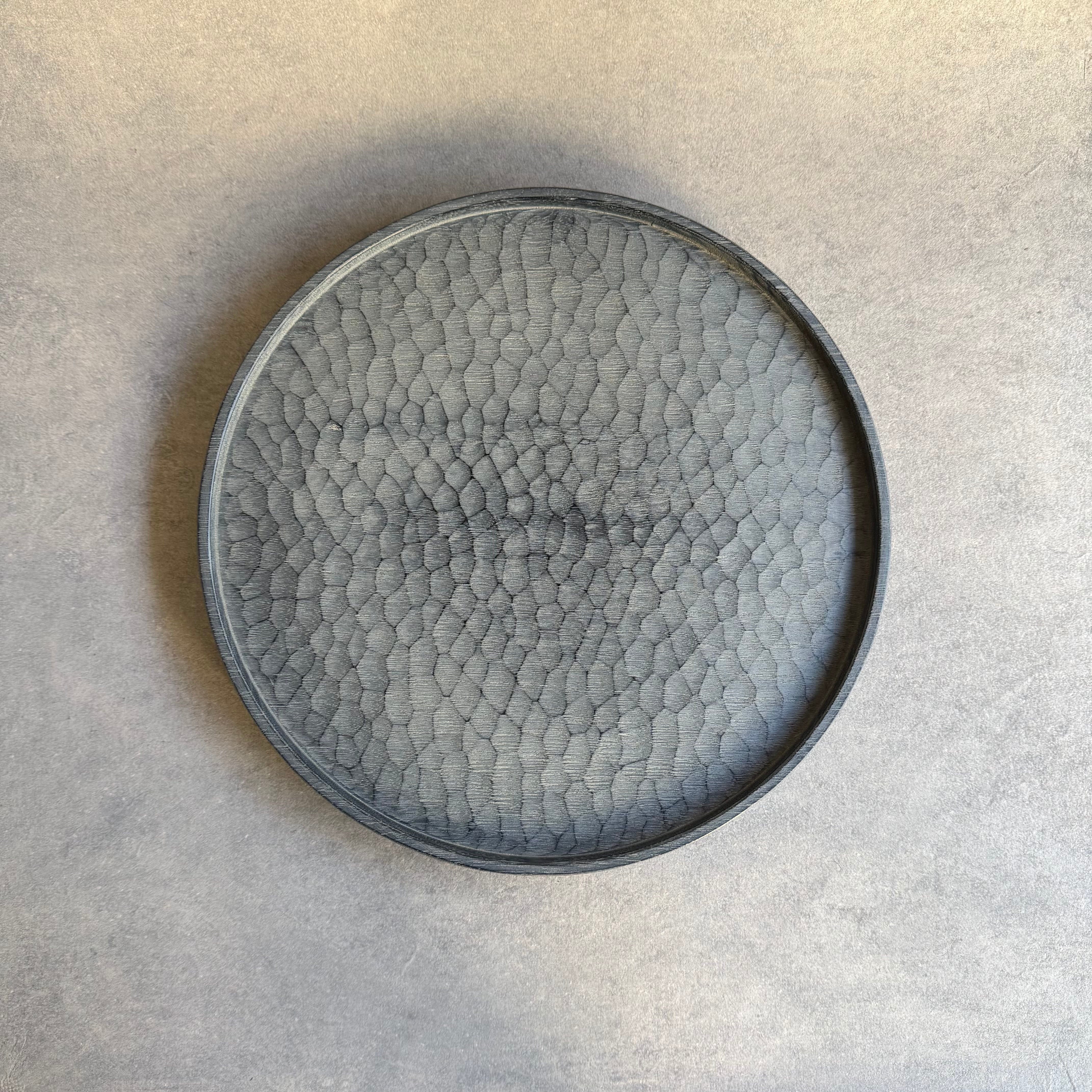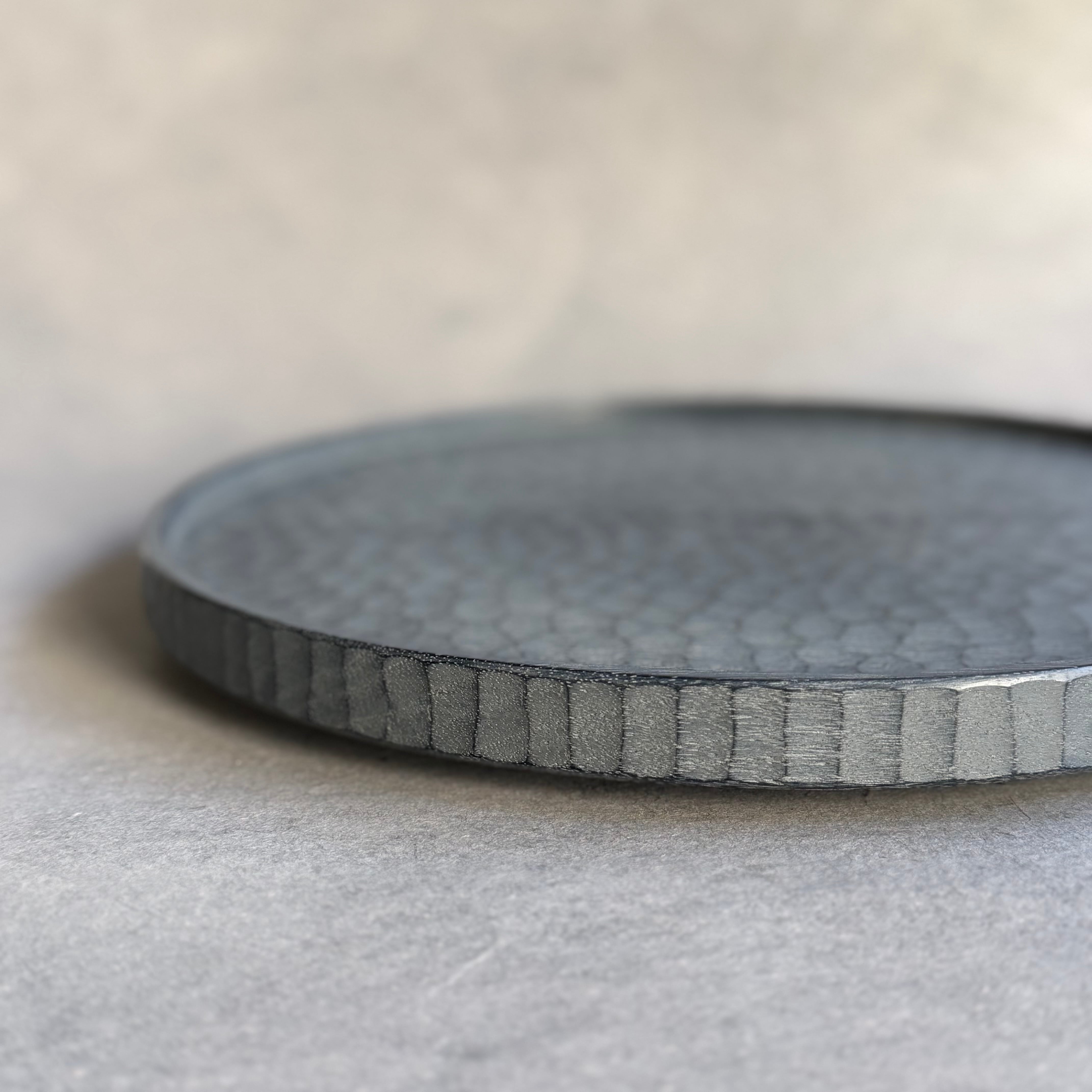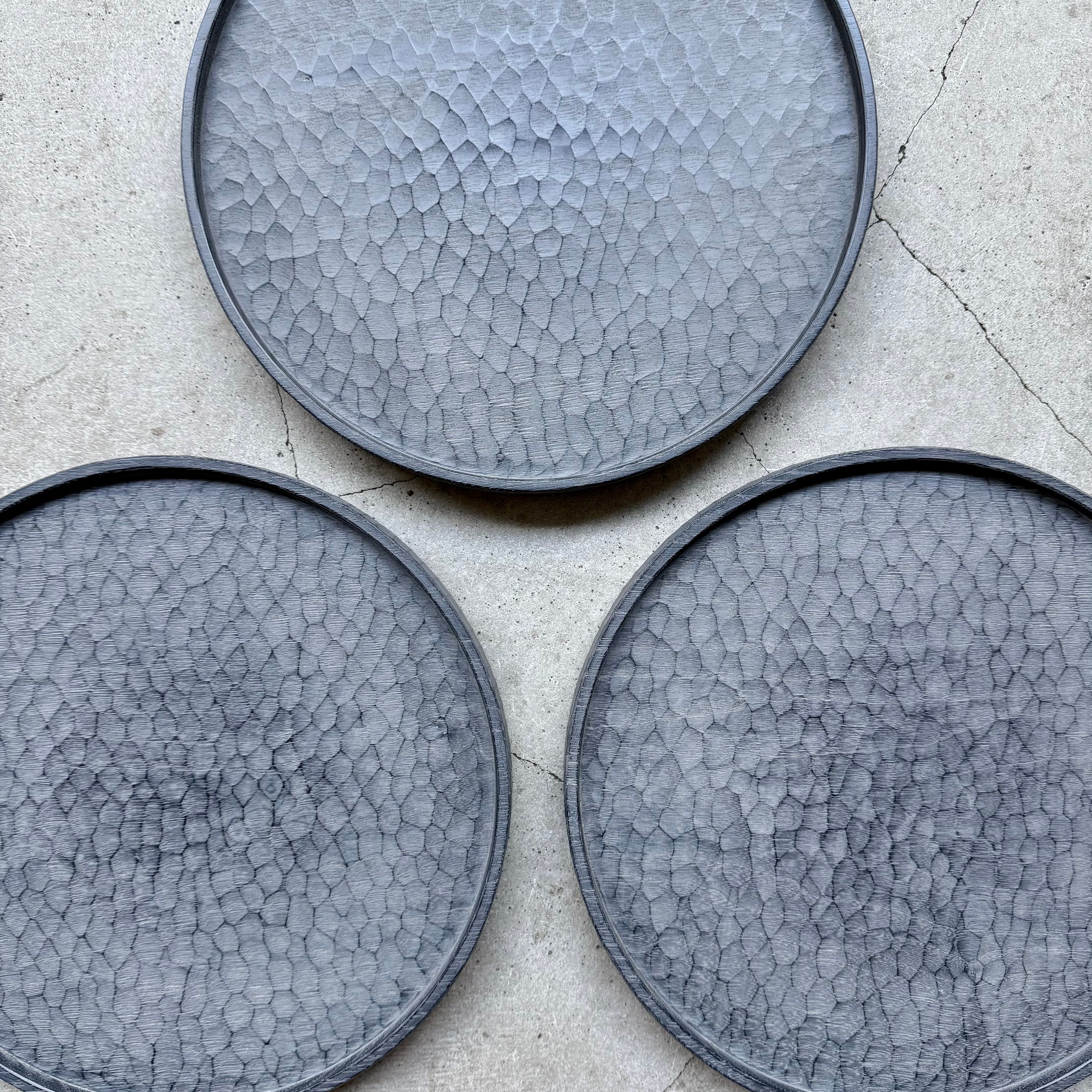 木と漆の質感を大切にしながら日常使いの器やお盆など、木の個性を生かした作品を制作される吉田欣司さん。程よい厚みの手彫りの仕上げは頼もしく、黒漆と白漆を何層にも塗り重ねて磨き上げる事で表れるブルーグレーの色合いはまるで霧を纏ったように柔らかく、使うほどに愛着が湧いてきます。