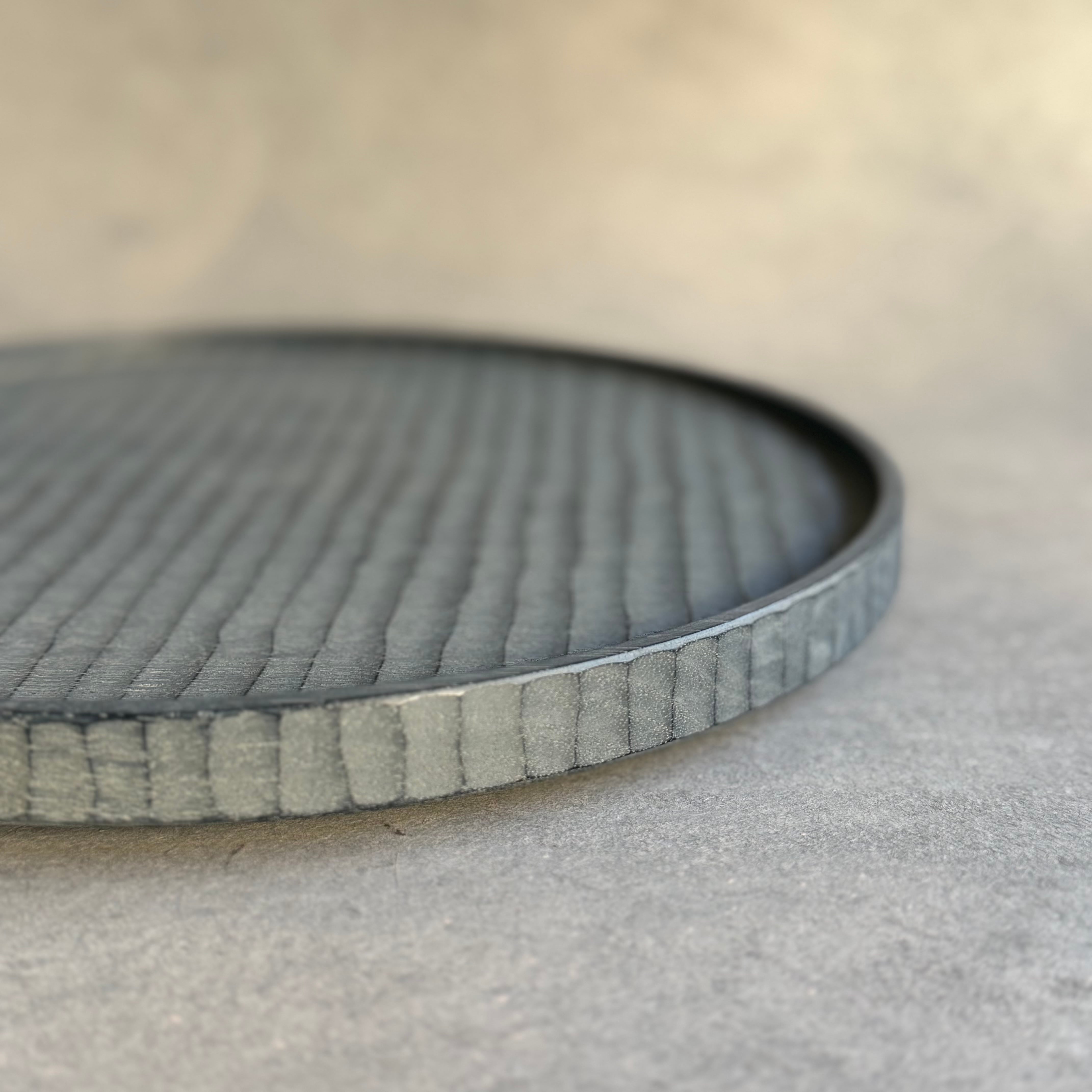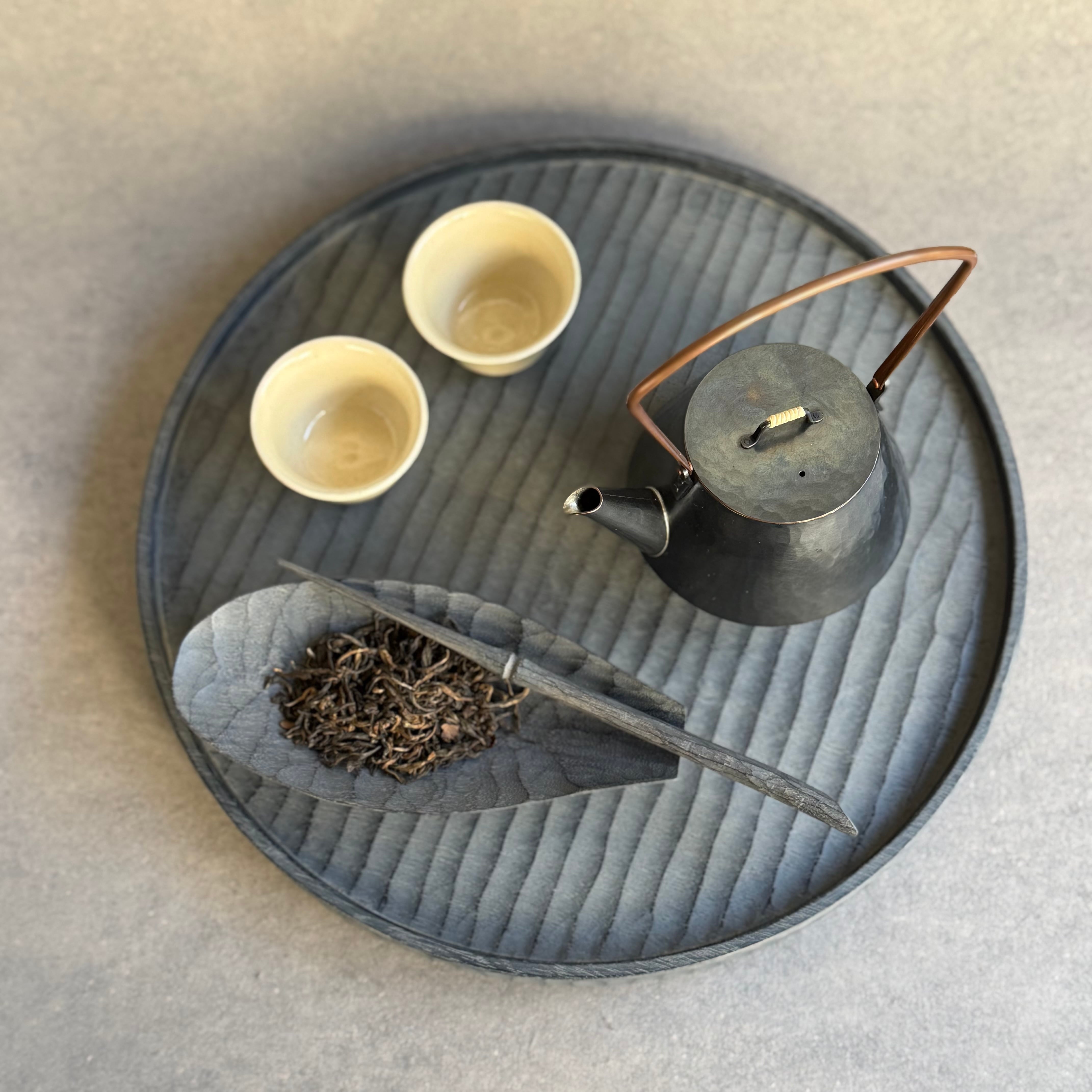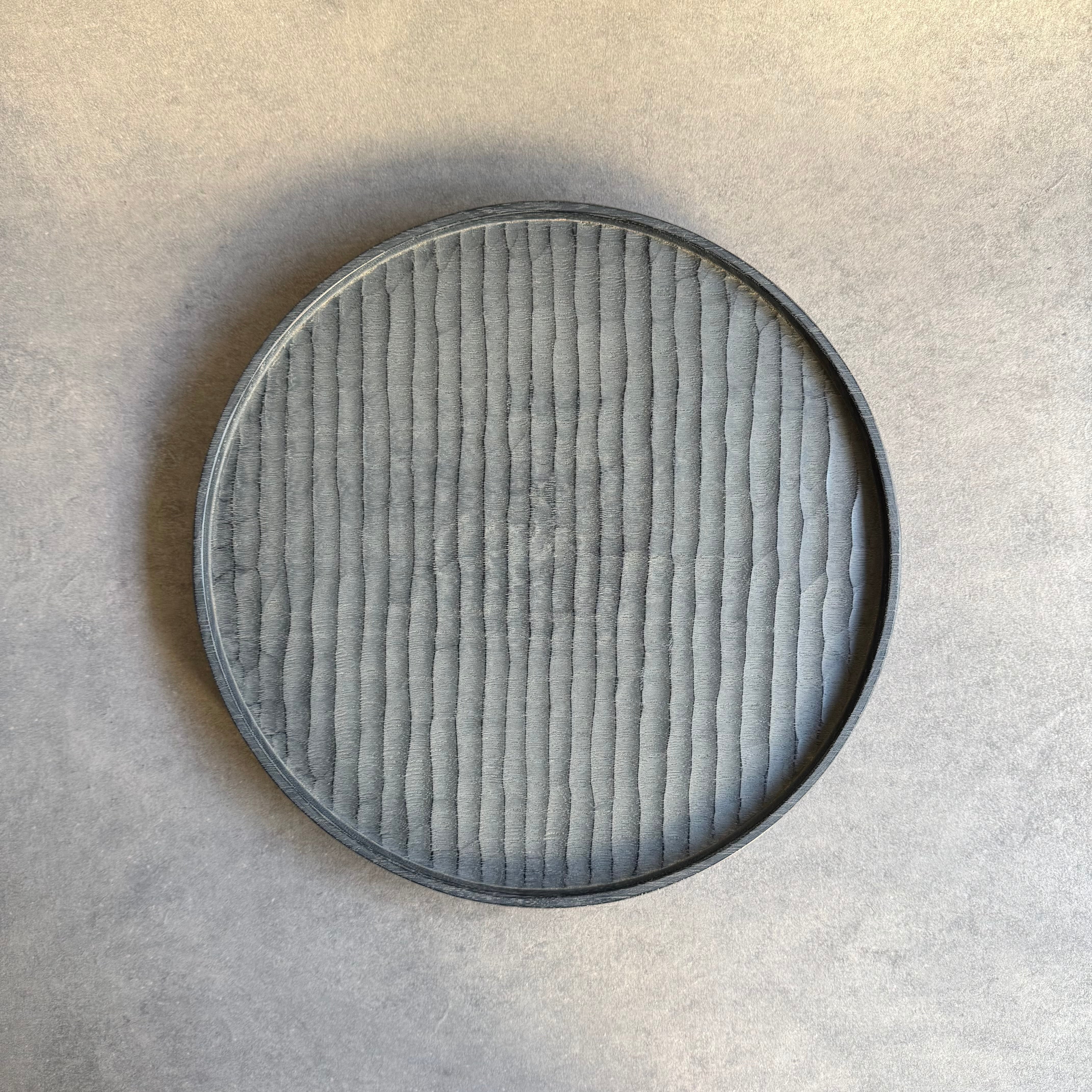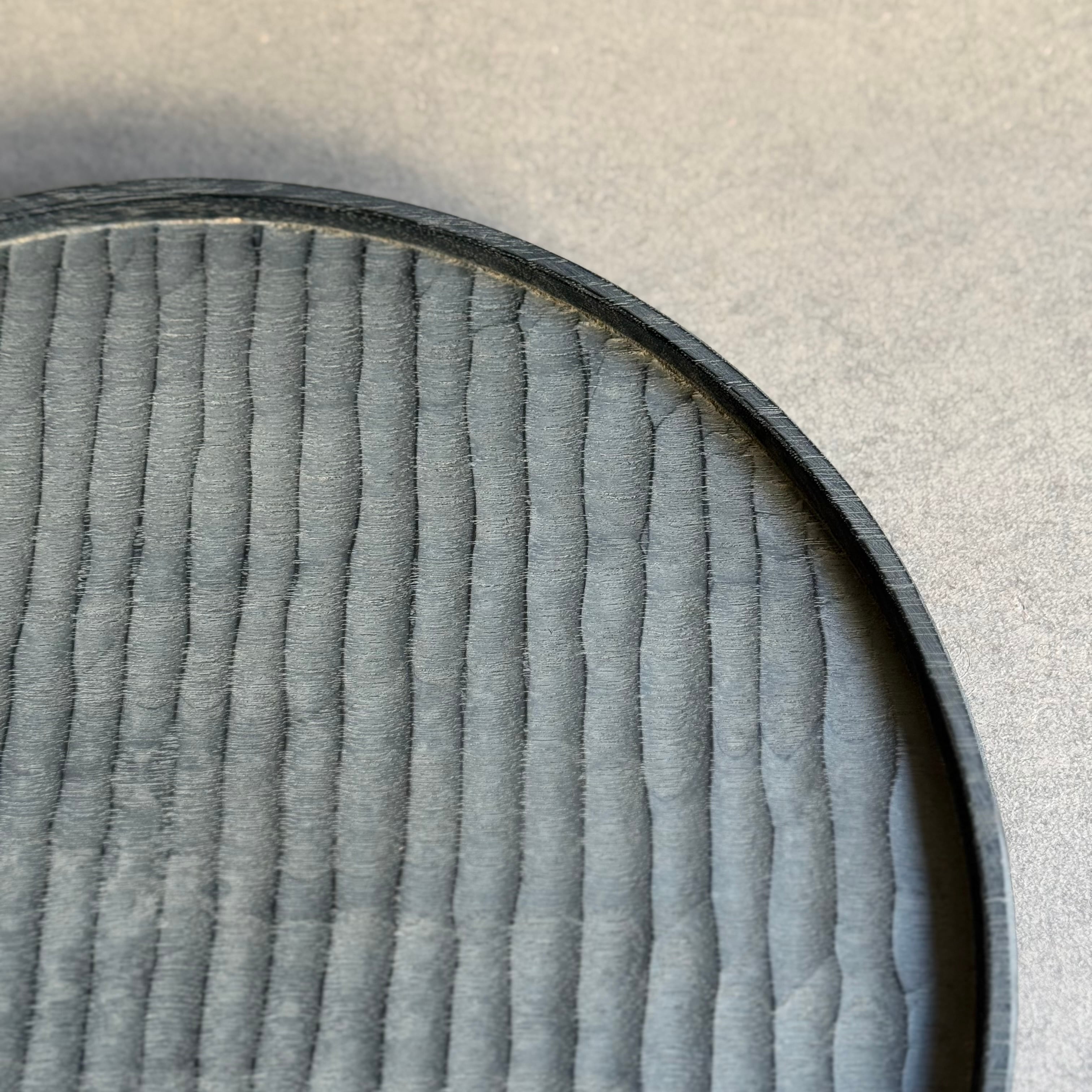 木と漆の質感を大切にしながら日常使いの器やお盆など、木の個性を生かした作品を制作される吉田欣司さん。程よい厚みの手彫りの仕上げは頼もしく、黒漆と白漆を何層にも塗り重ねて磨き上げる事で表れるブルーグレーの色合いはまるで霧を纏ったように柔らかく、使うほどに愛着が湧いてきます。