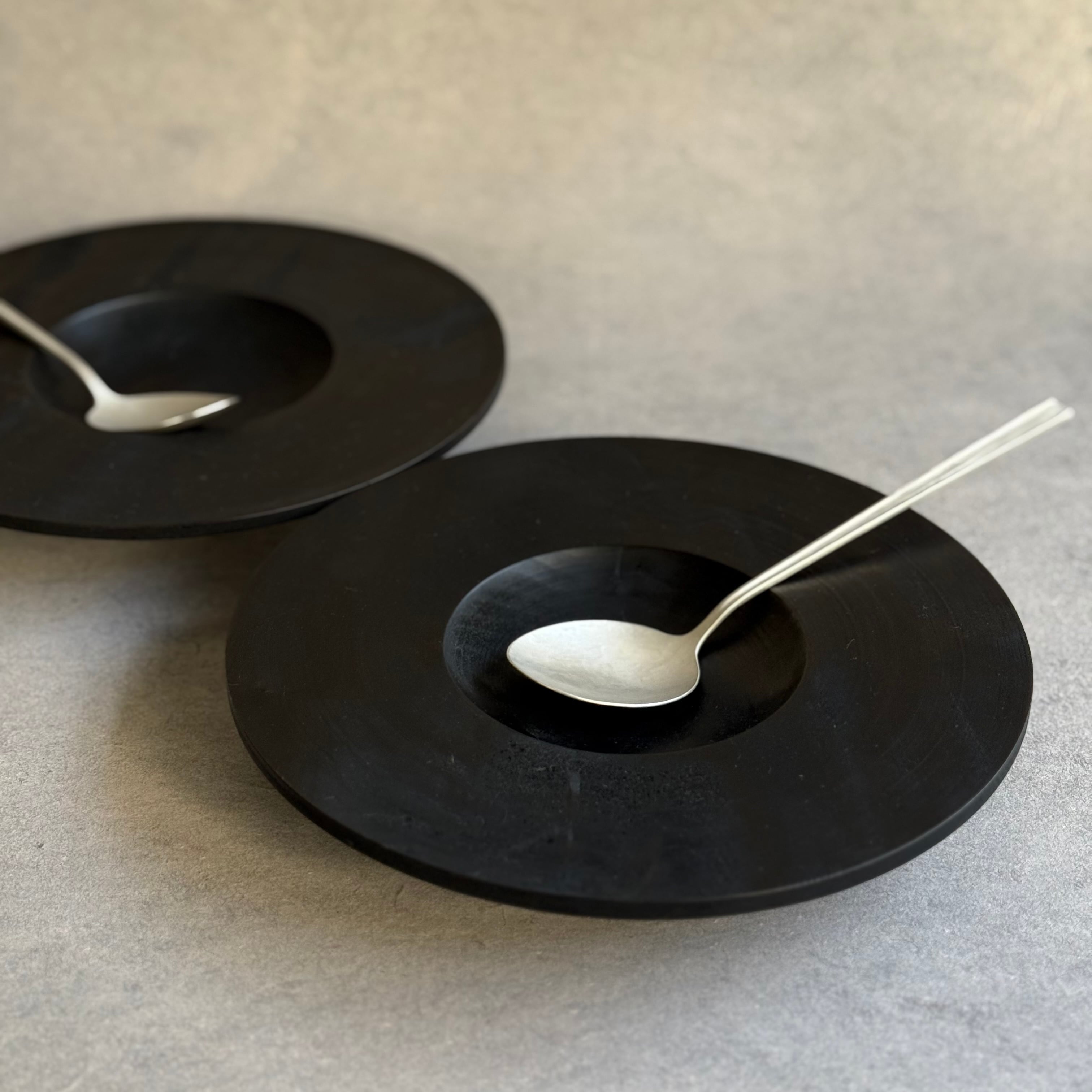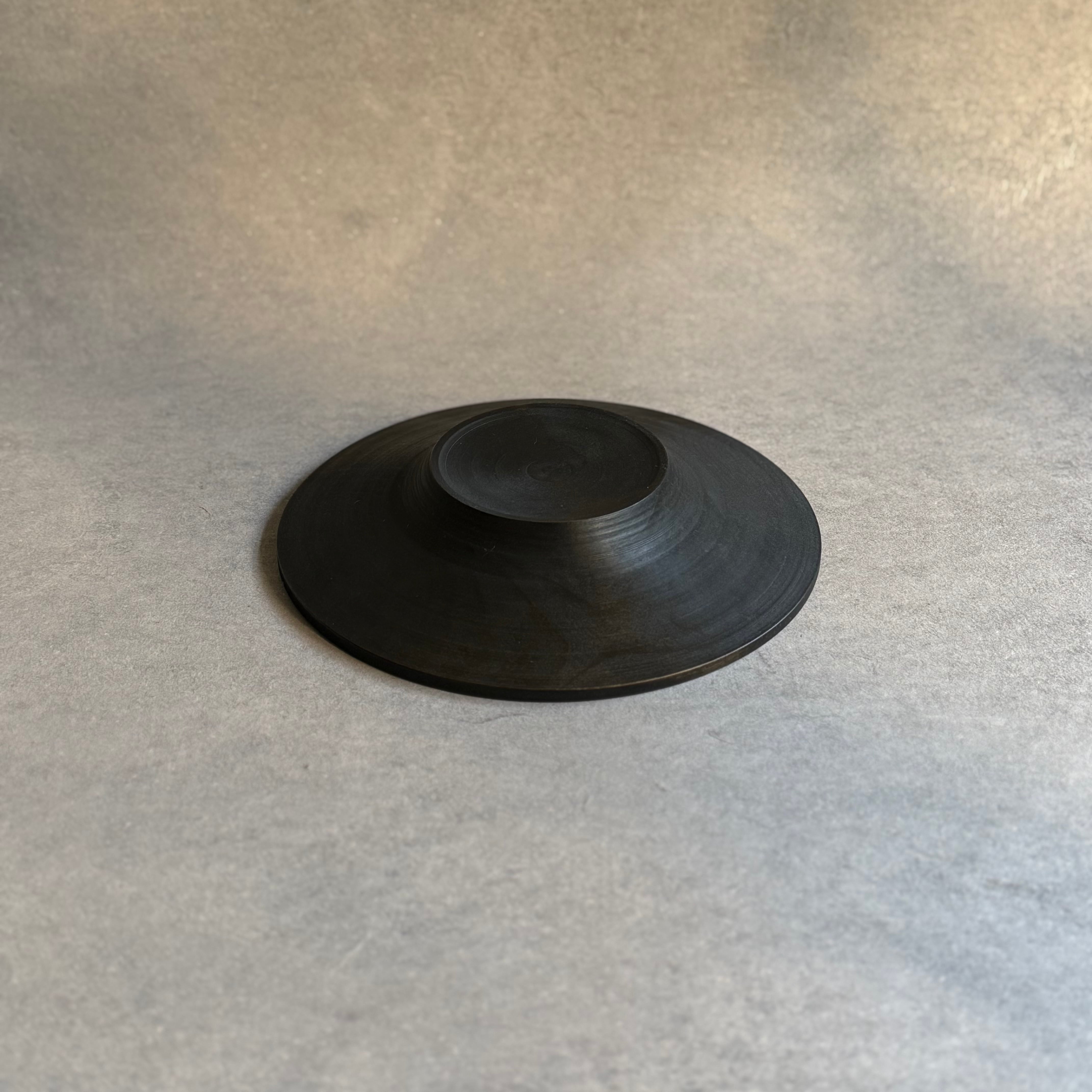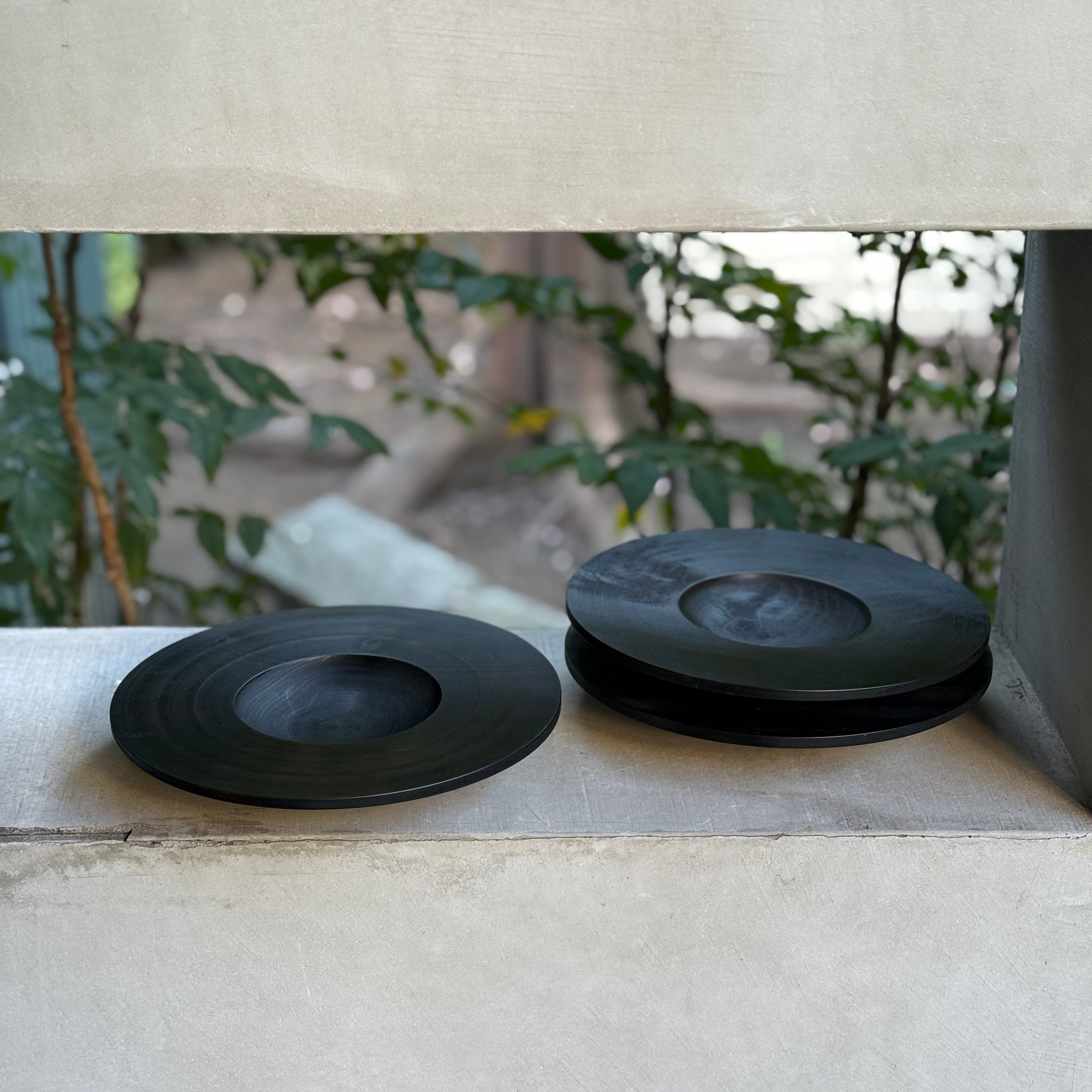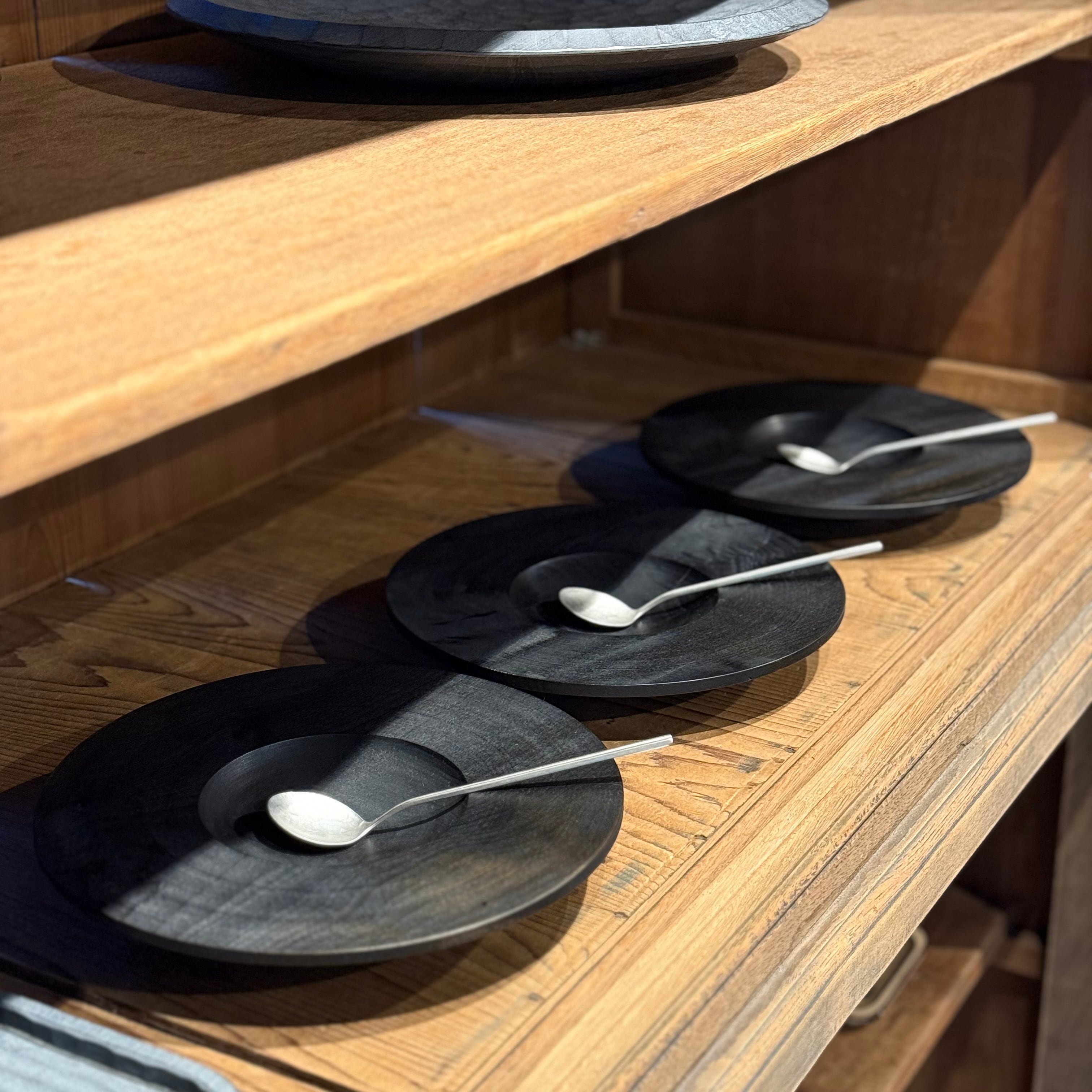 木と漆の質感を大切にしながら日常使いの器やお盆など、木の個性を生かした作品を制作される吉田欣司さん。程よい厚みの手彫りの仕上げは頼もしく、黒漆と白漆を何層にも塗り重ねて磨き上げる事で表れるブルーグレーの色合いはまるで霧を纏ったように柔らかく、使うほどに愛着が湧いてきます。